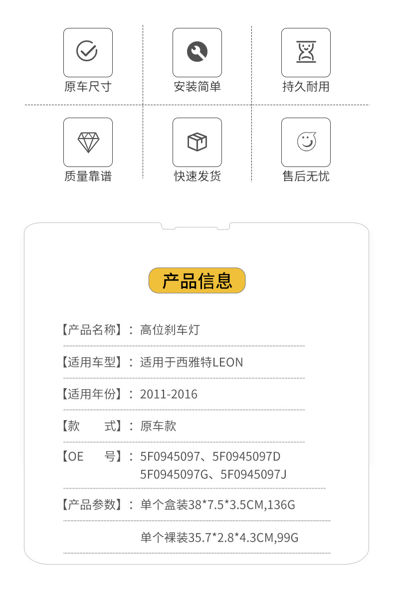 Подходит для 11-16 лет Seat LEON высокого стоп-сигнала третий сигнал стоп-сигнала 5F0945097