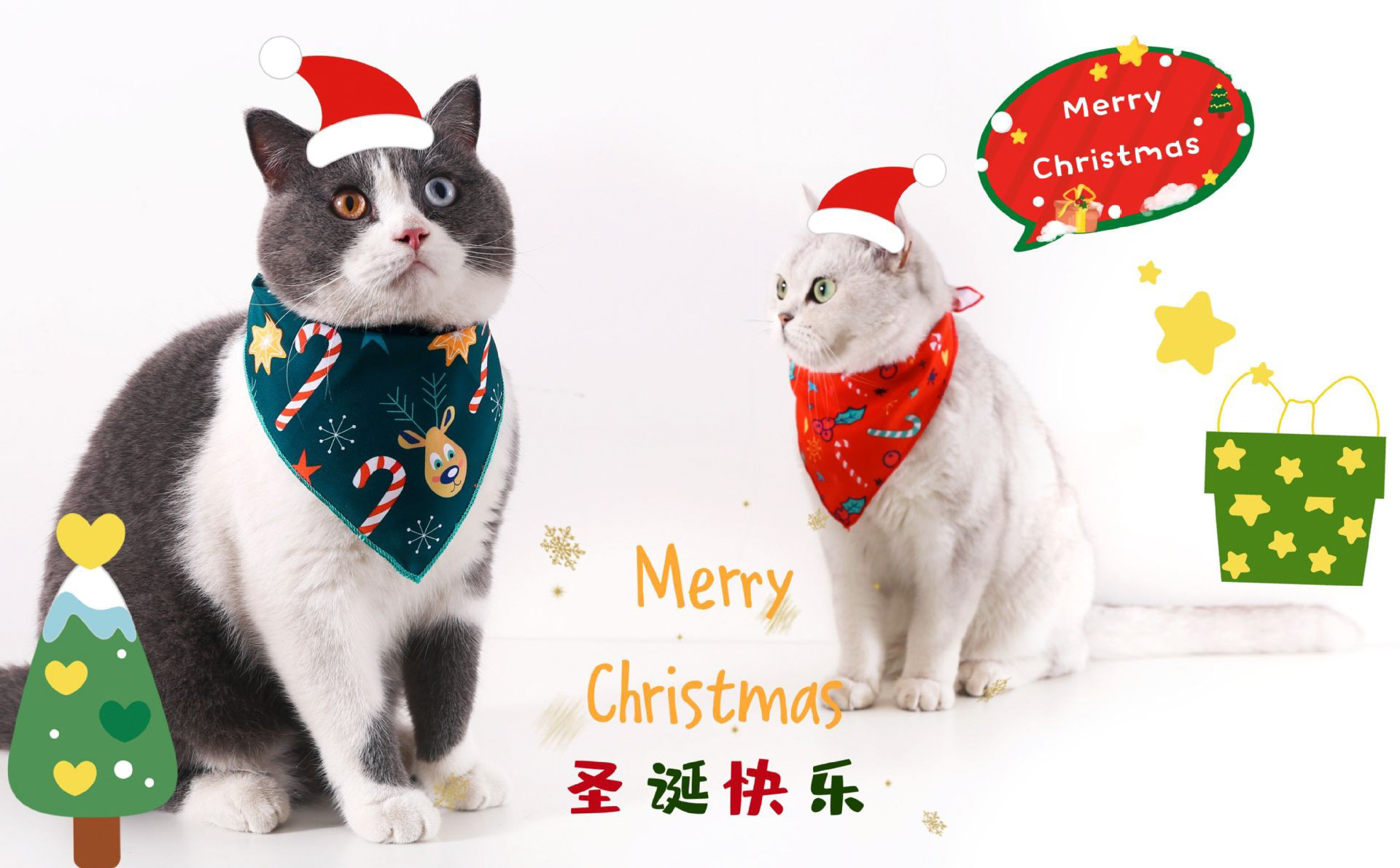 2024 Домашние животные Кошки Собаки Печать Треугольный полотенце Рождественский нагрудник Войлок Стерео пятиконечная звезда Шляпа Набор
