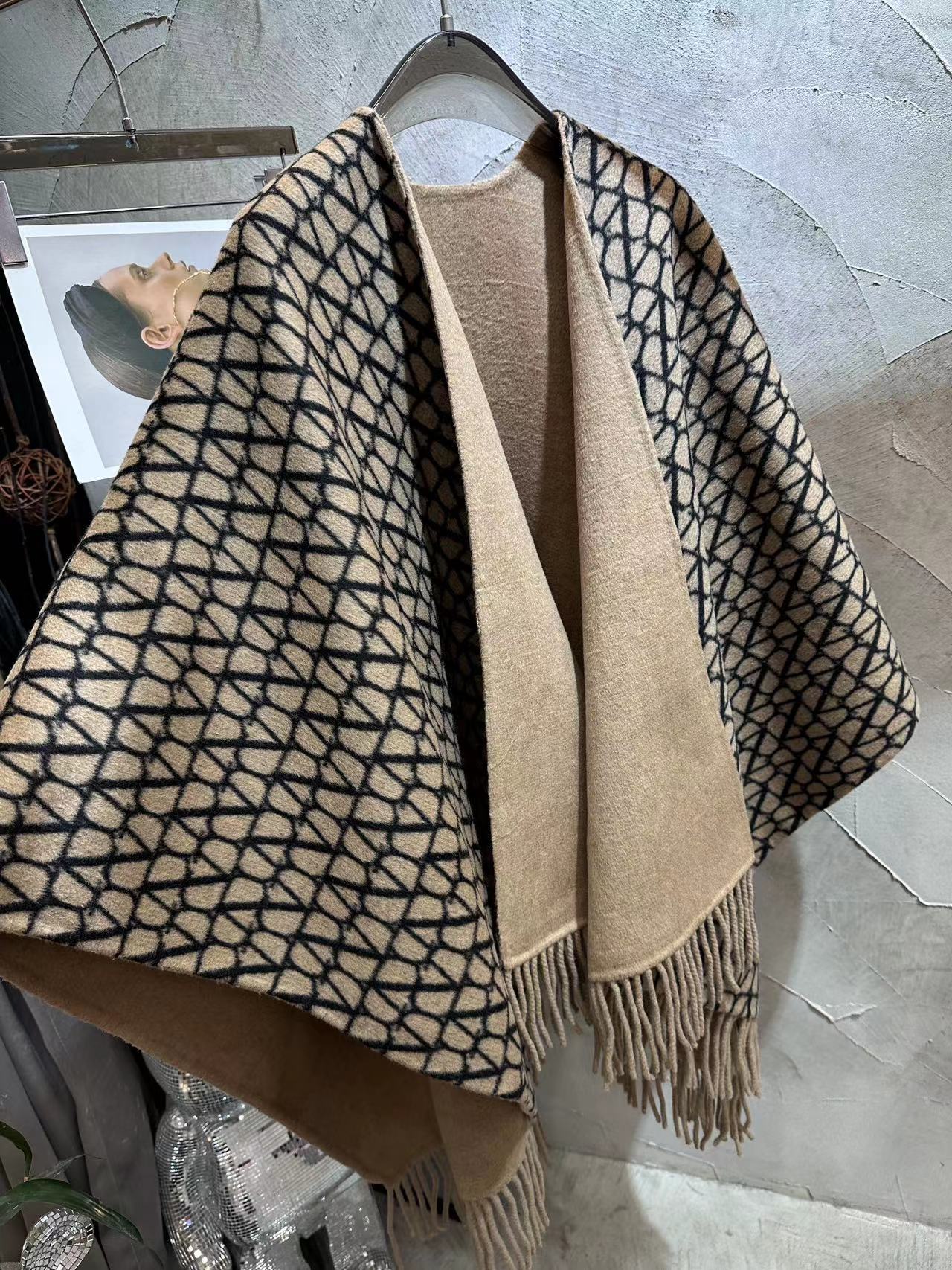 Шэньчжэнь Нанью 2025 осень-зима новая двусторонняя ручная шерстяная шаль с кистями из кашемира, стильный двусторонний плащ-шаль