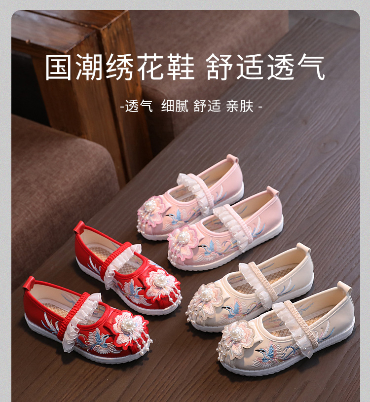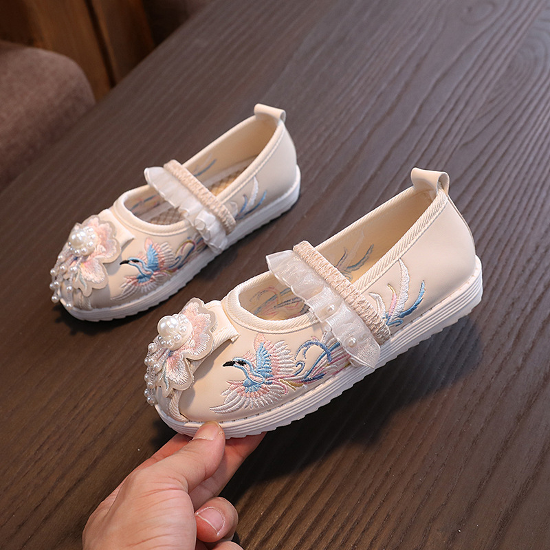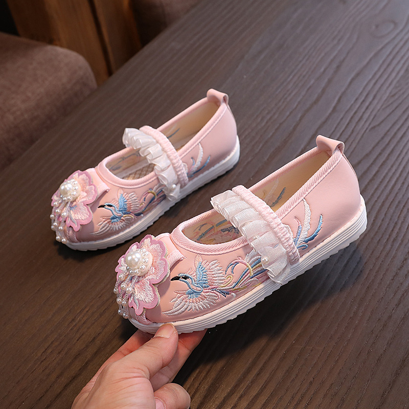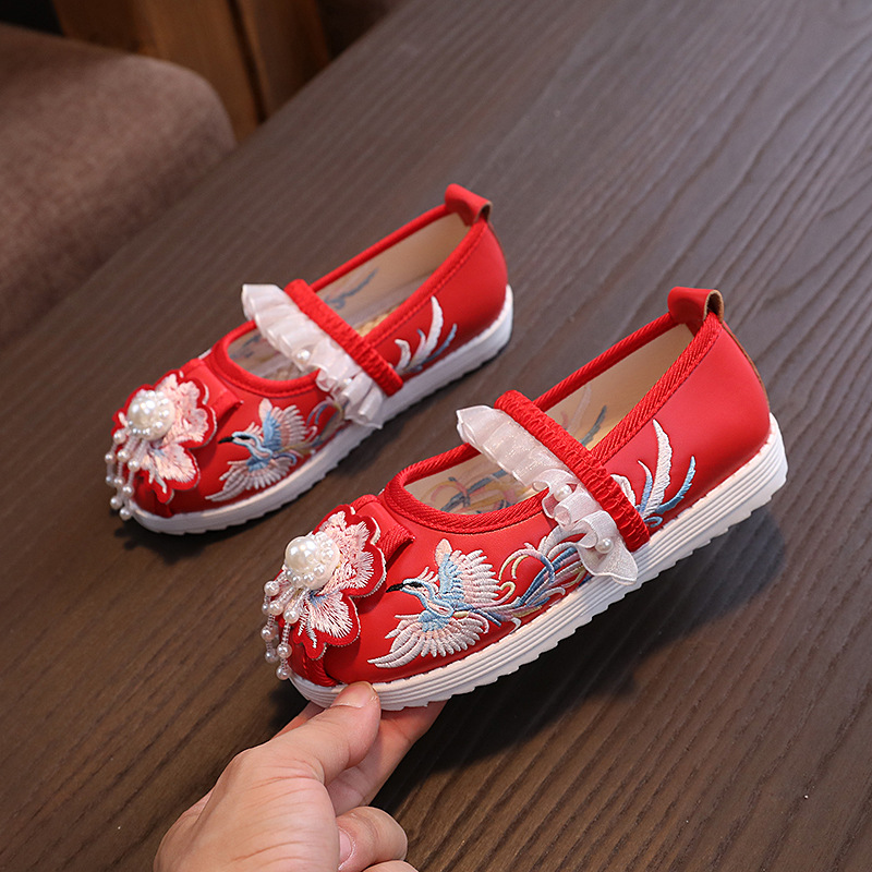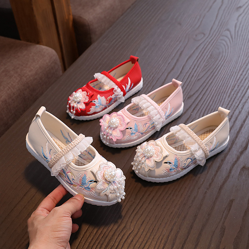 Hanfu обувь для девочек Детская обувь Древний стиль лошадь юбка обувь принцесса вышитая обувь весна и осень кожаная лапша маленькая девочка детская обувь