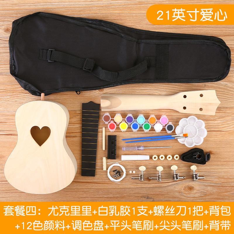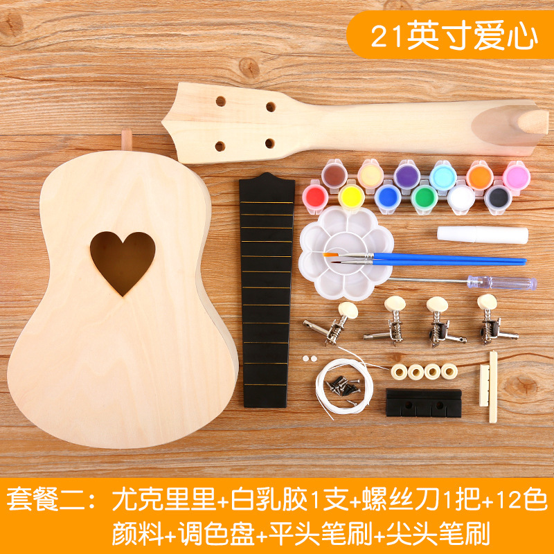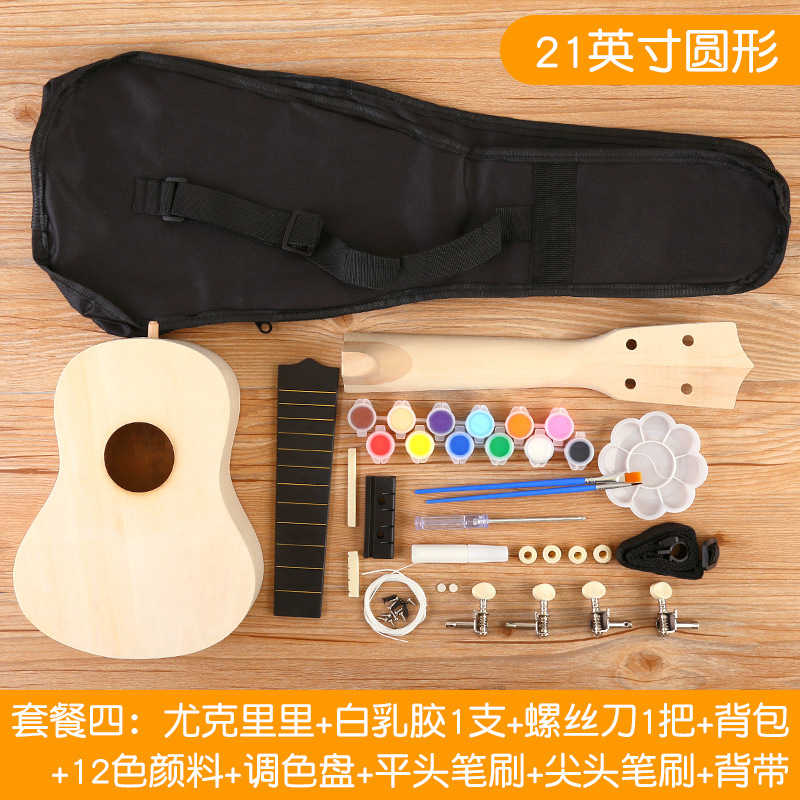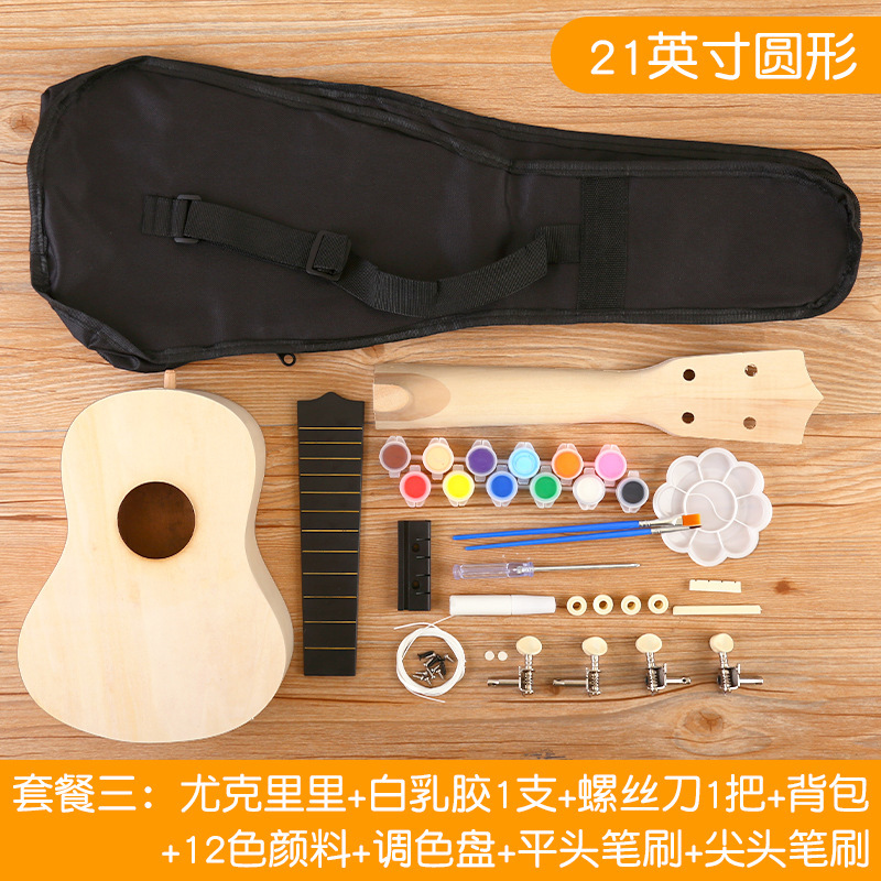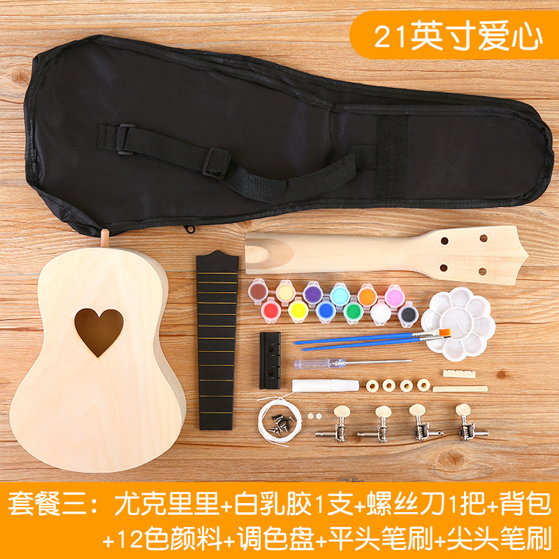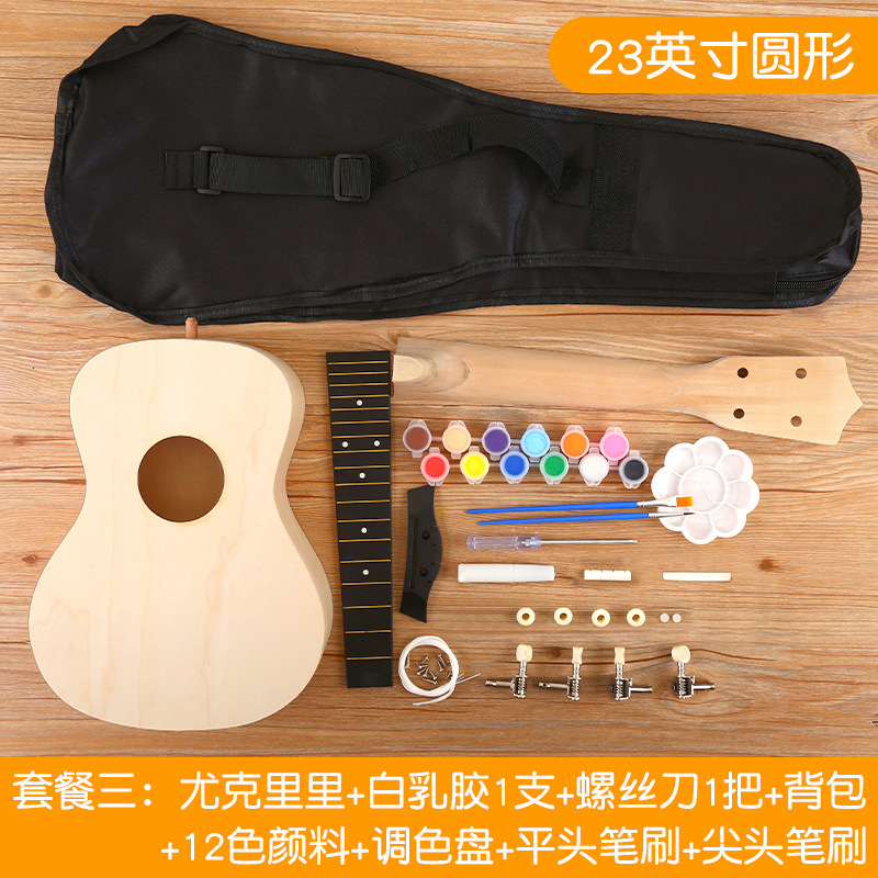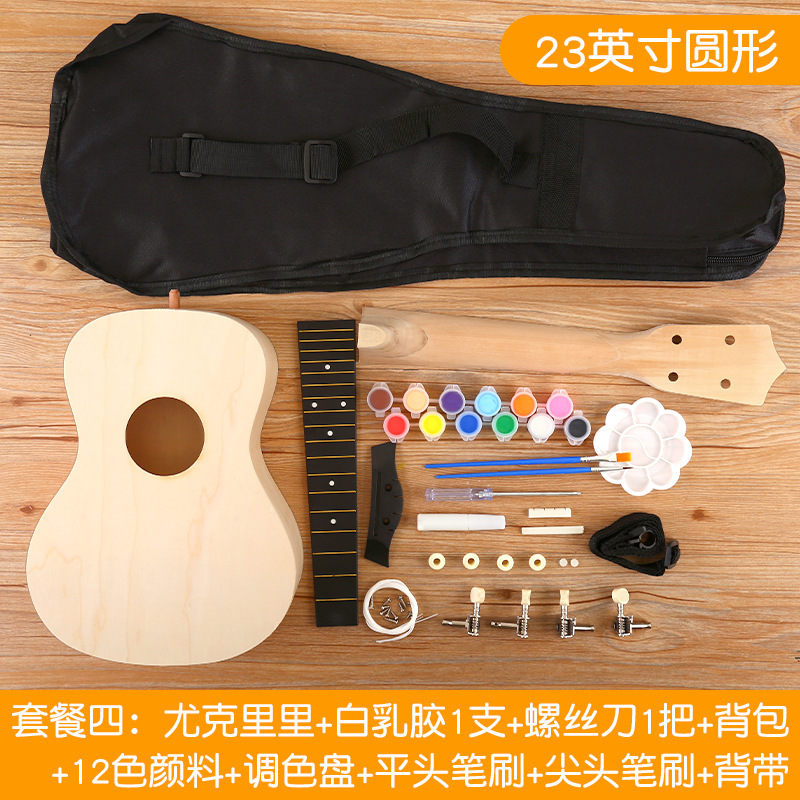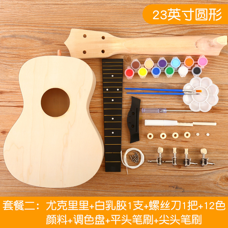 Ручная работа DIY Юкрили Материал Пакет Сборка для начинающих деревянная маленькая гитара Окрашенная вручную