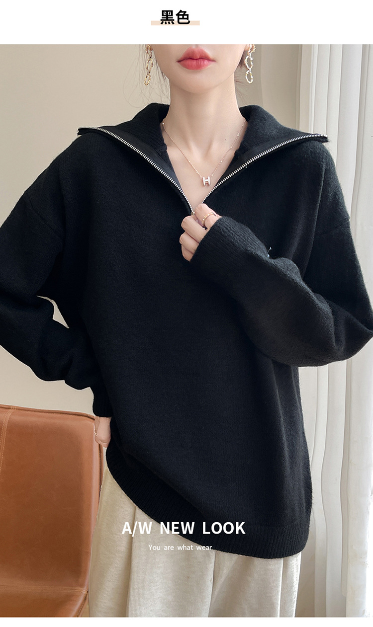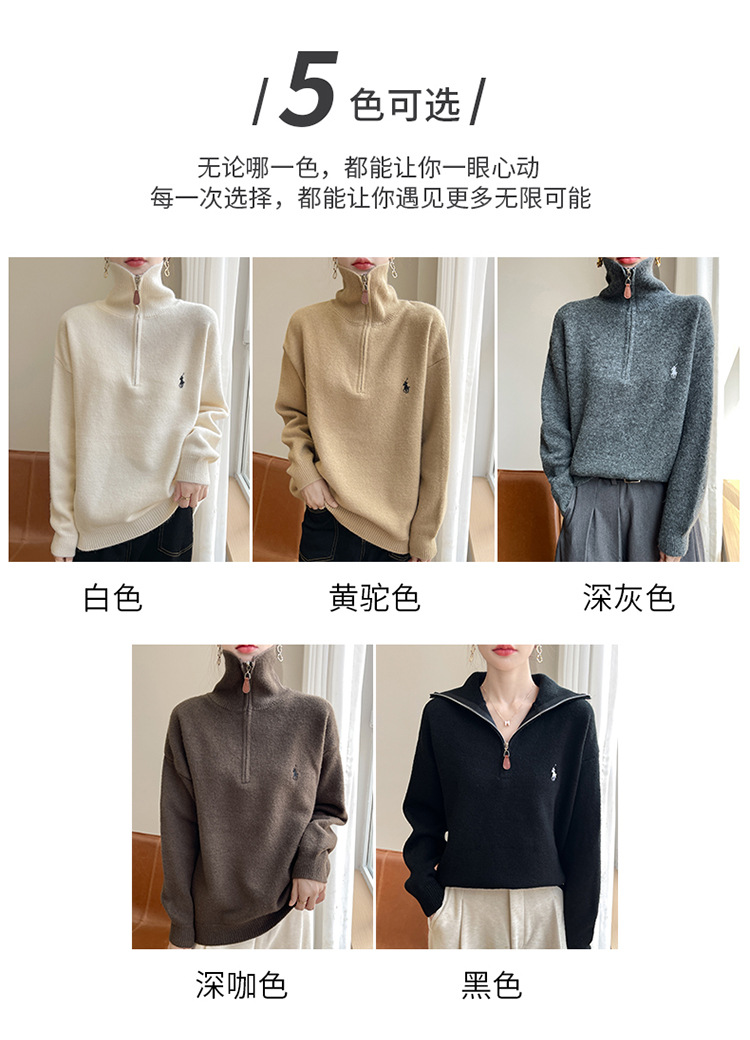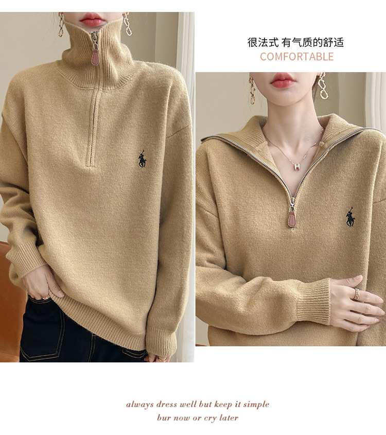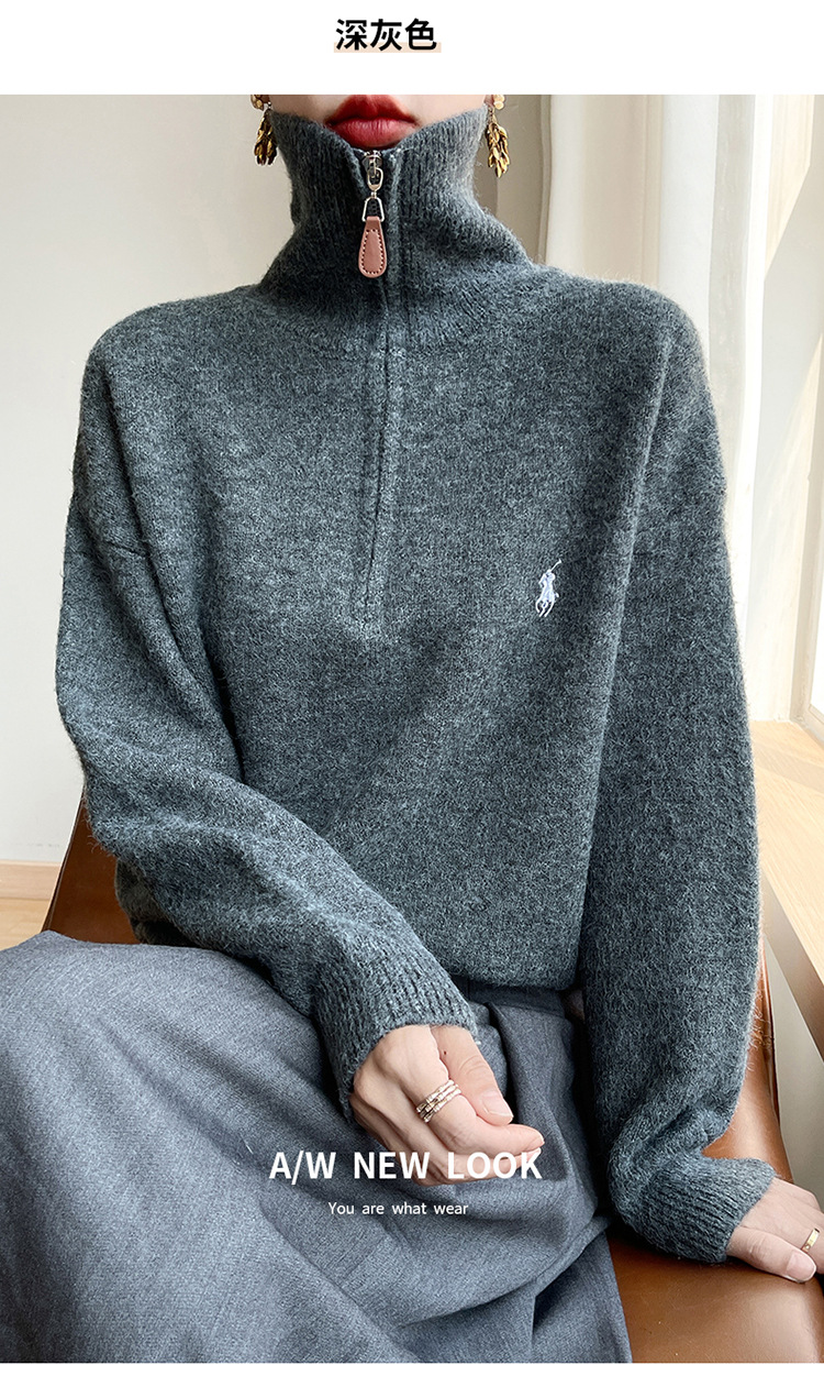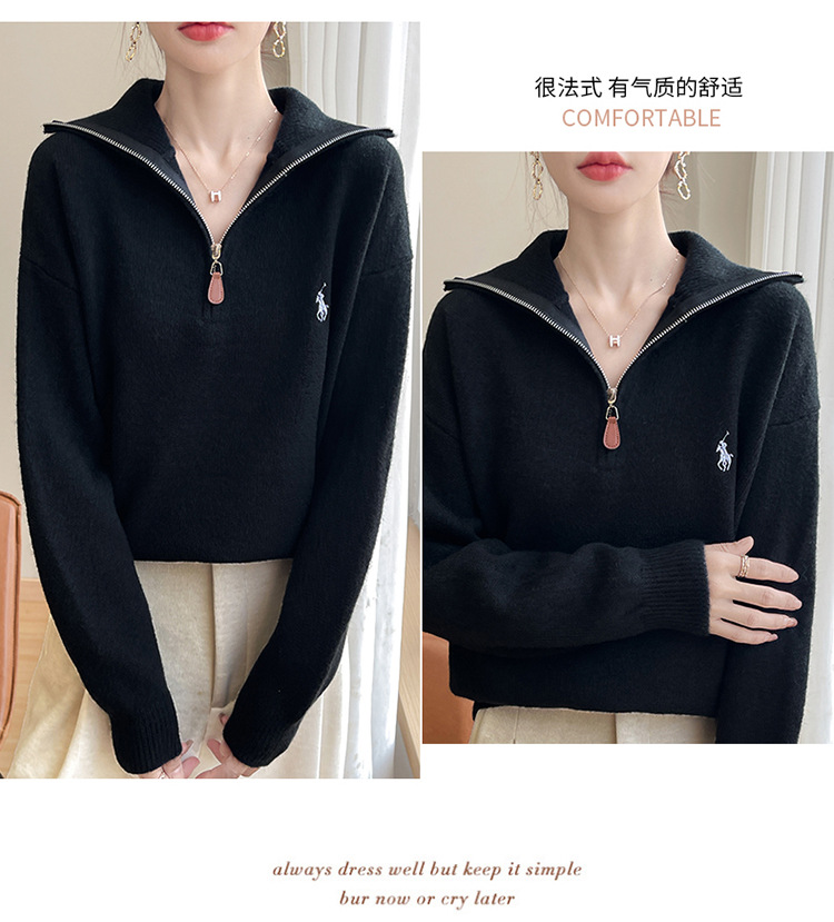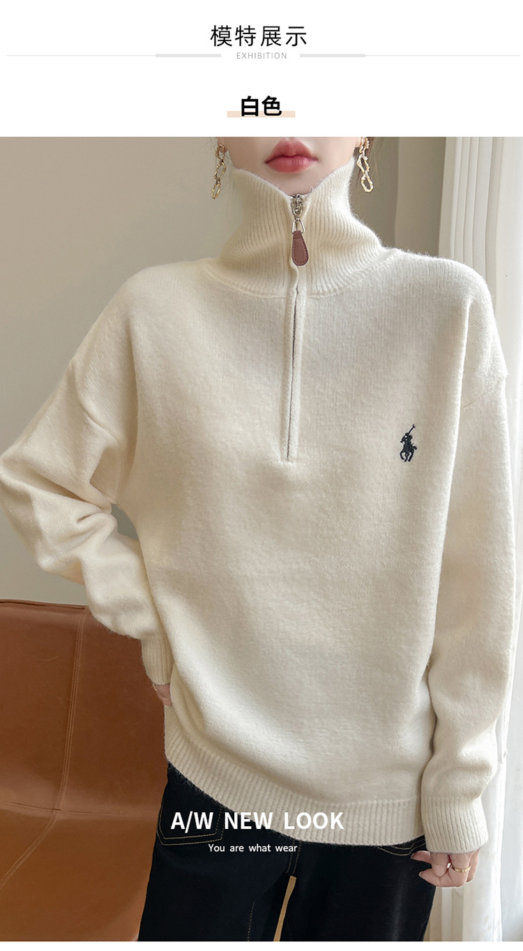 2024 осень и зима новый корейский пони с вышивкой полузастежкой-молнией свитер кувшина женский свободный дикий трикотажный топ