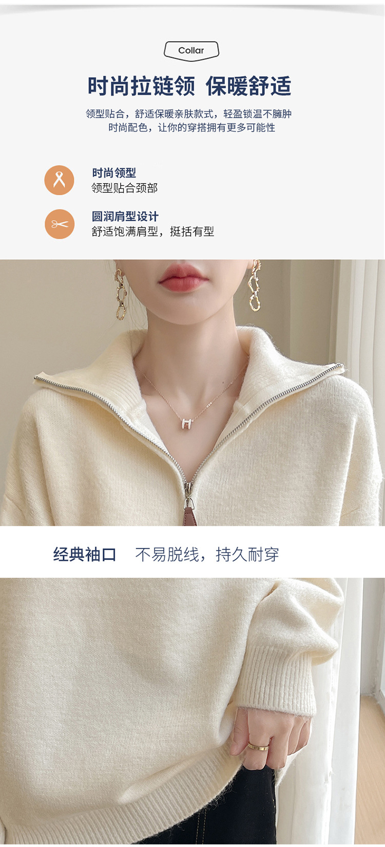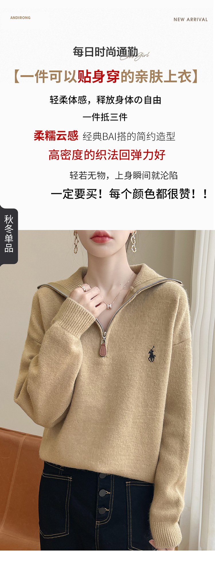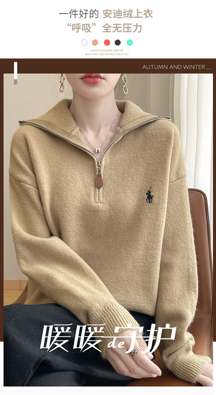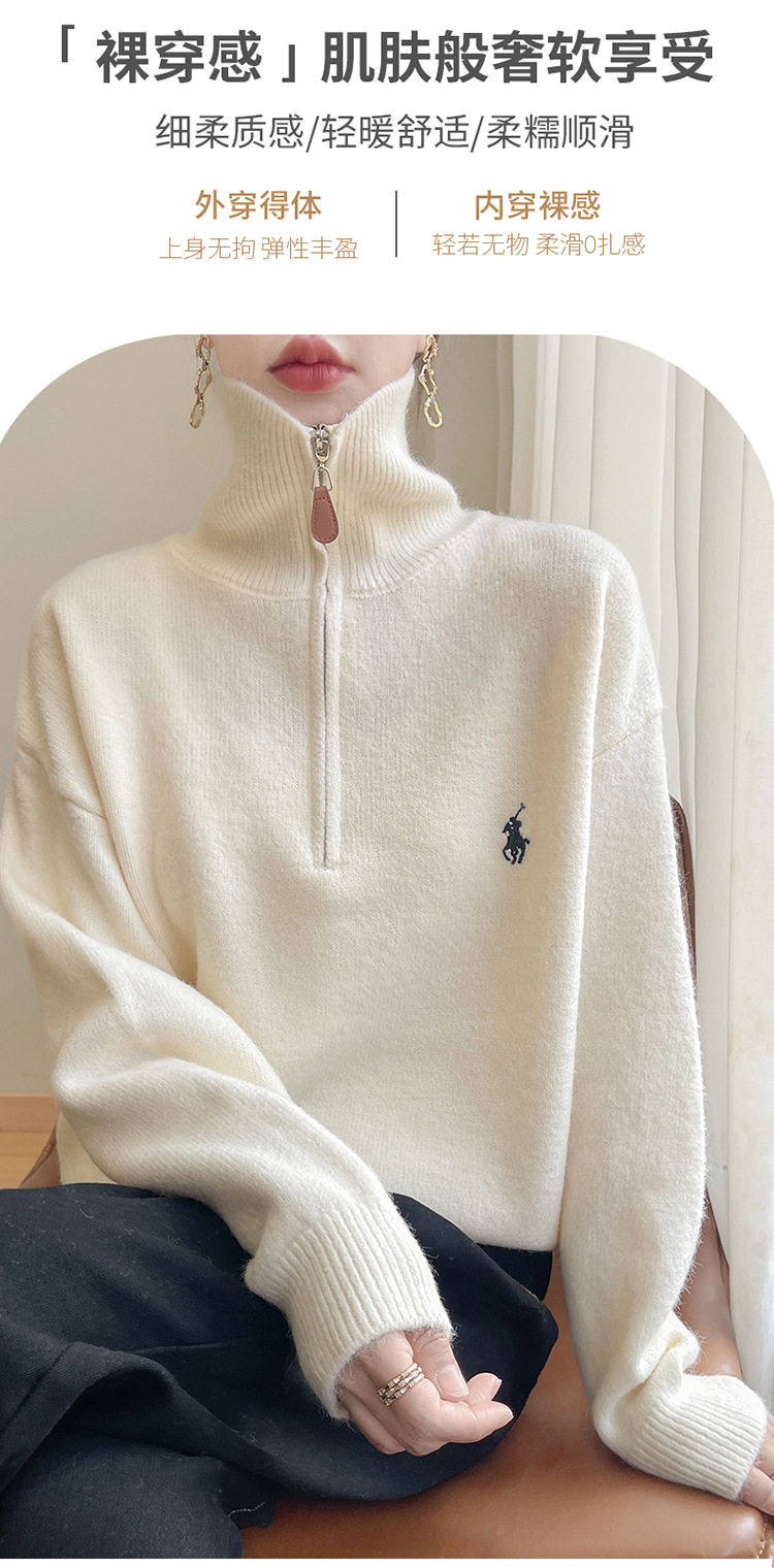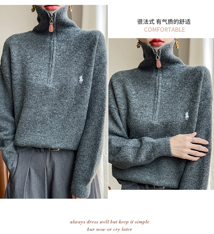 2024 осень и зима новый корейский пони с вышивкой полузастежкой-молнией свитер кувшина женский свободный дикий трикотажный топ