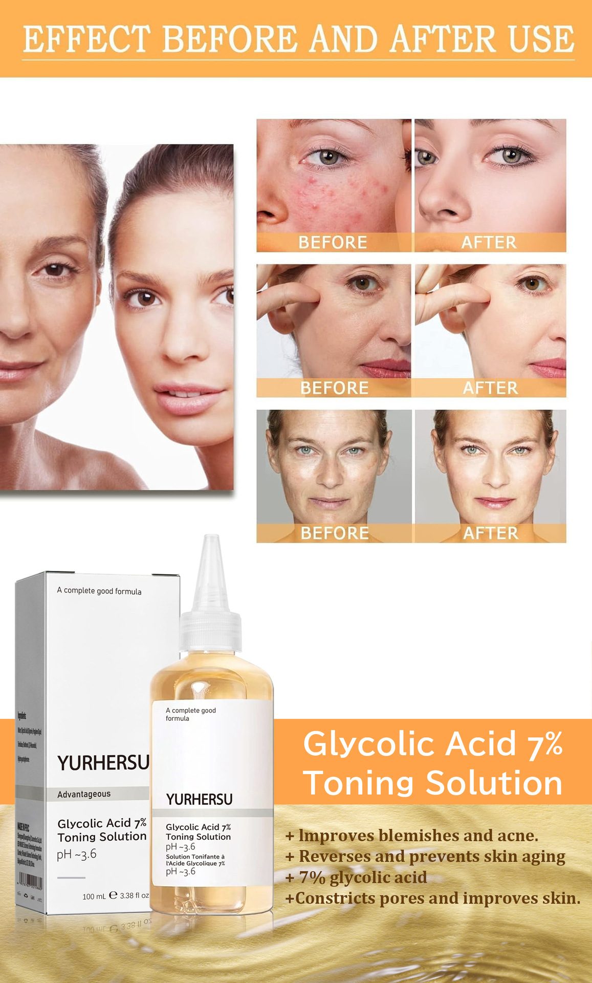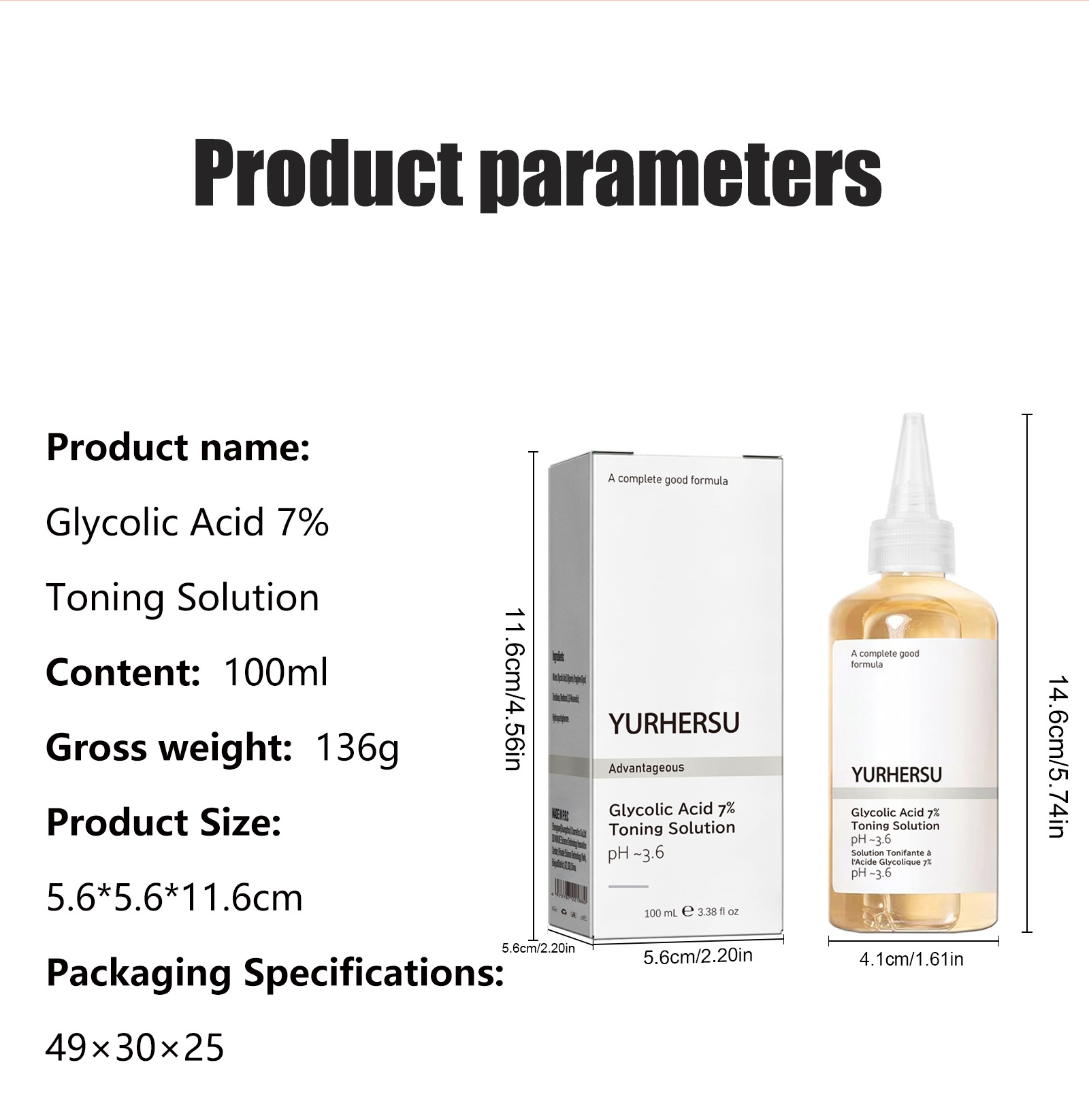 YURHERSU Гликолевая кислота 7% Тонер увлажняющий увлажняющий увлажняющий увлажняющий крем