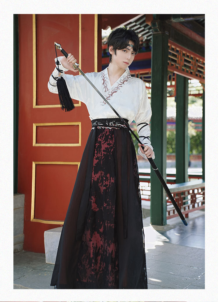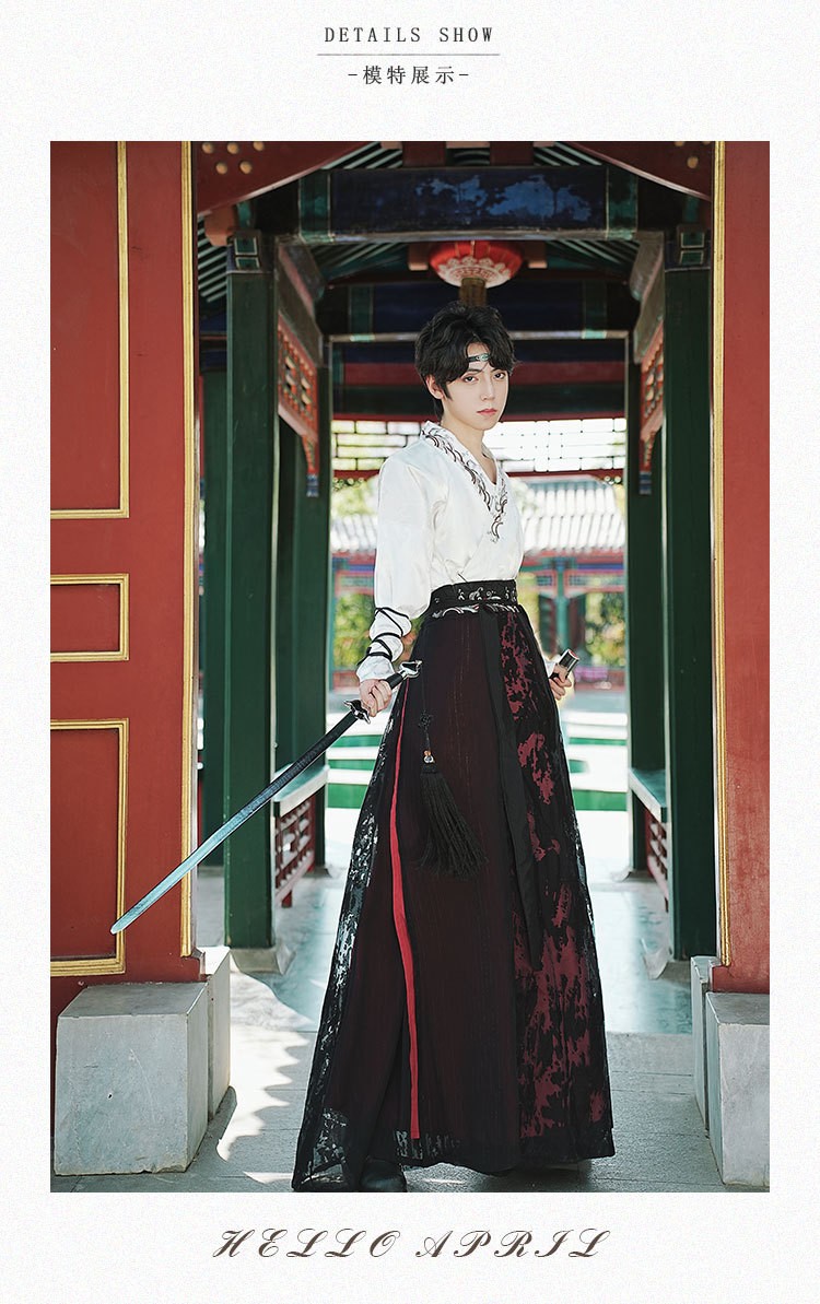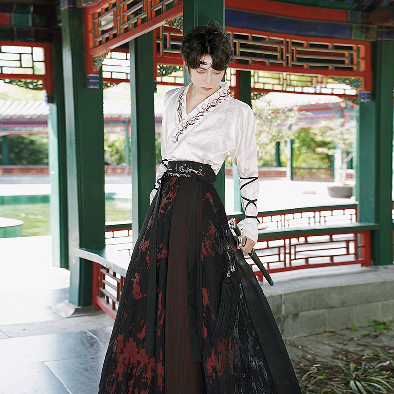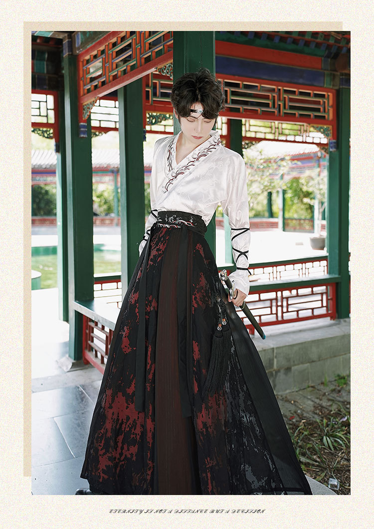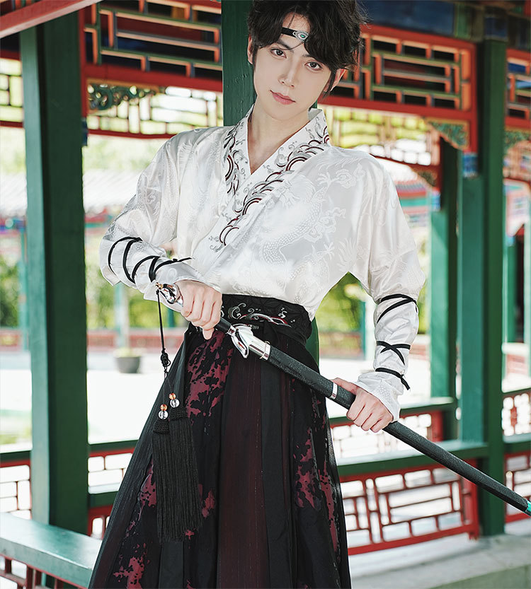 длинная рубашка с перекрестным воротником; Кожаный ремень (один размер подходит всем); Жаккардовый топ с рисунком дракона + длинная юбка (ремешок на руку)