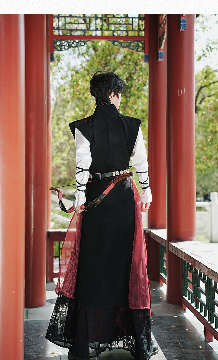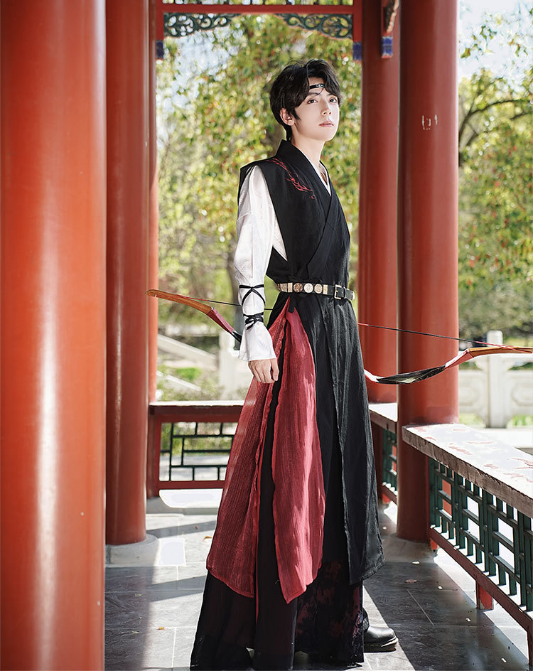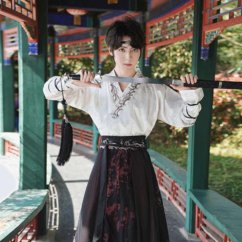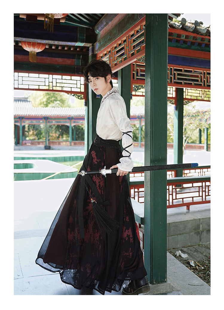 длинная рубашка с перекрестным воротником; Кожаный ремень (один размер подходит всем); Жаккардовый топ с рисунком дракона + длинная юбка (ремешок на руку)