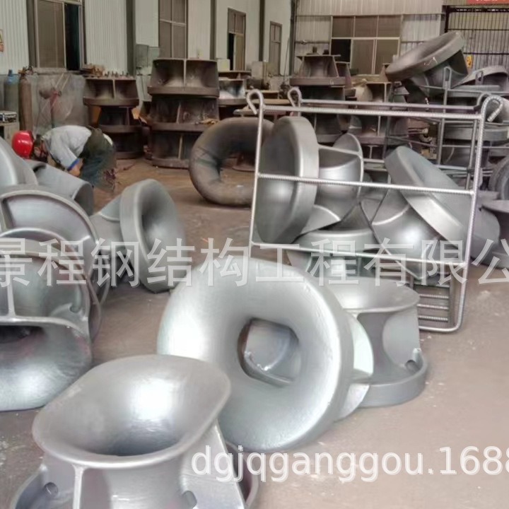 码头的附属设施主要有系船柱、橡胶护舷、栏杆和橡胶舷梯等。系船柱选