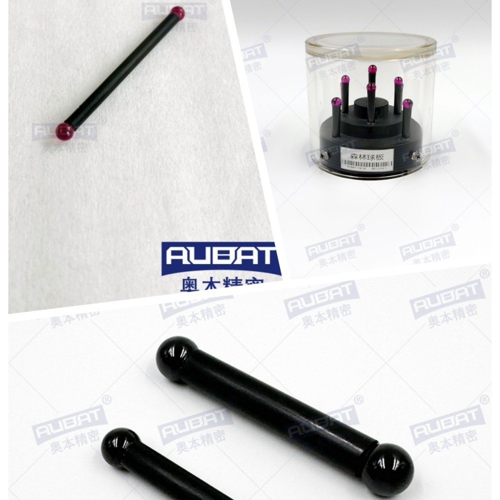 推荐使用由“适当材料”制成的球体——普遍使用红宝石森林球,因为高品质的红宝石球适合商用且具有热稳定性。球体本身能够帮助判断探测误差的形式和尺寸。由于球体中心相对稳定,因此通过在扫描空间中放置几个球体即可实现对球体距离的精确测量,对表面测定的影响也将降至最低。通过几颗红宝石球即可测量不同的距离。该测试样品易于校准,且可追溯至美国国家标准与技术研究院 (NIST)。