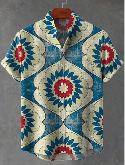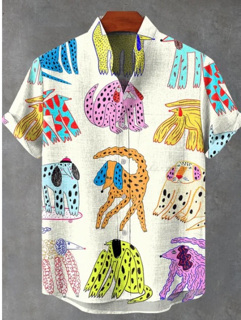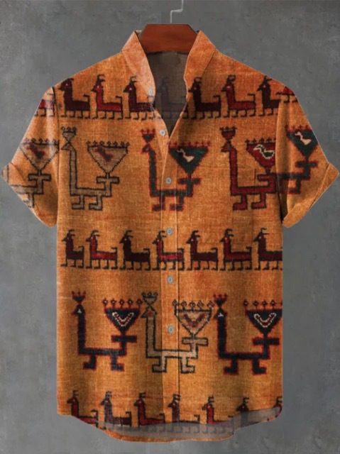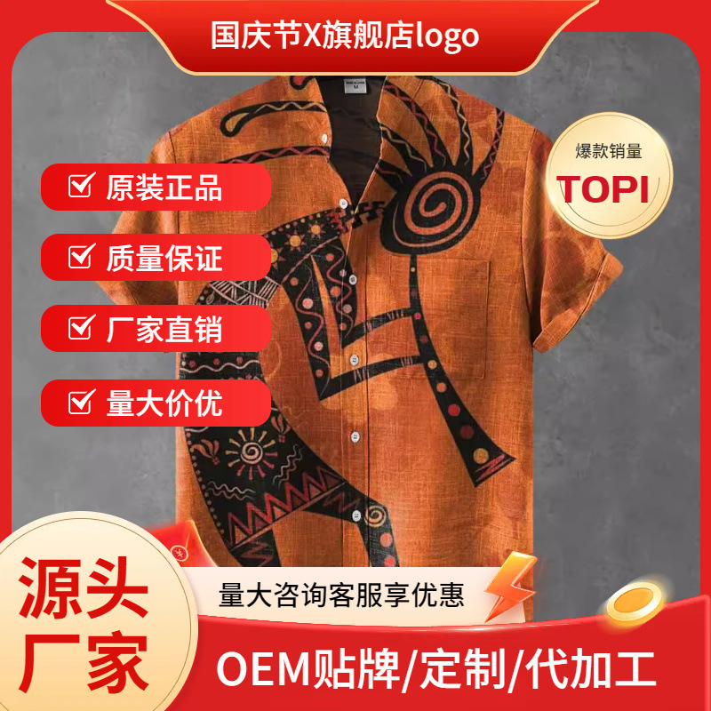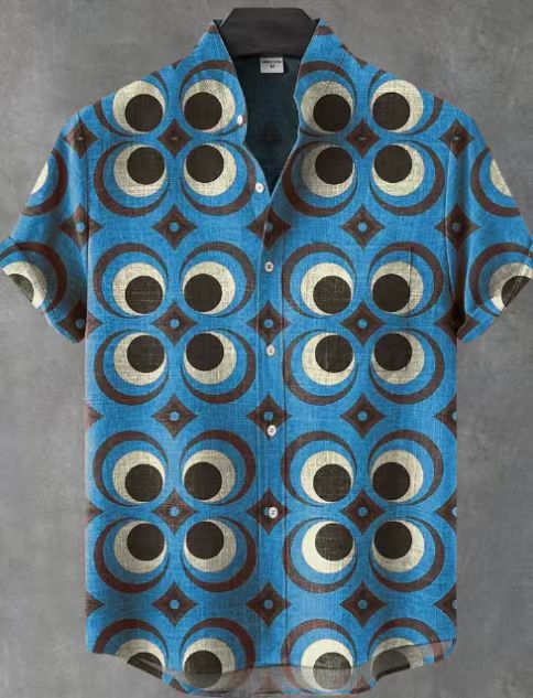 Трансграничная мужская рубашка с кардиганом 3D цифровой принт повседневный воротник с короткими рукавами