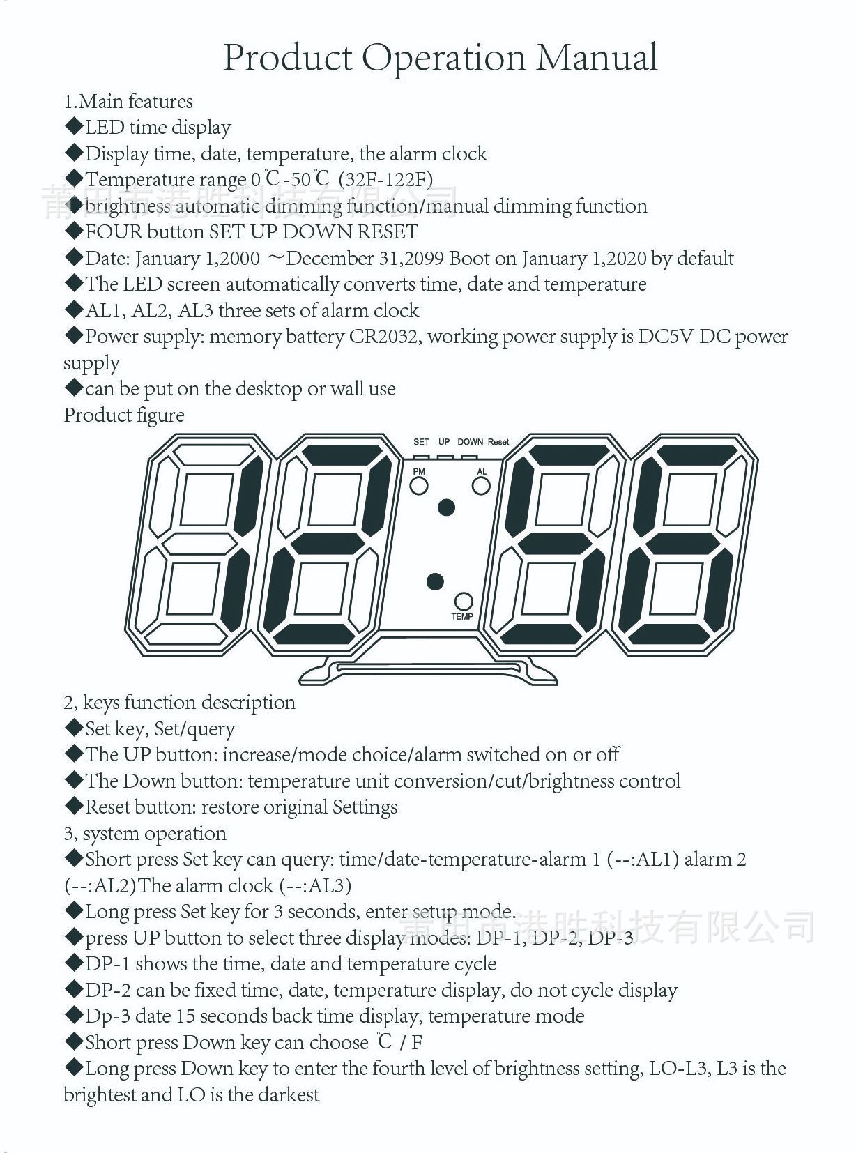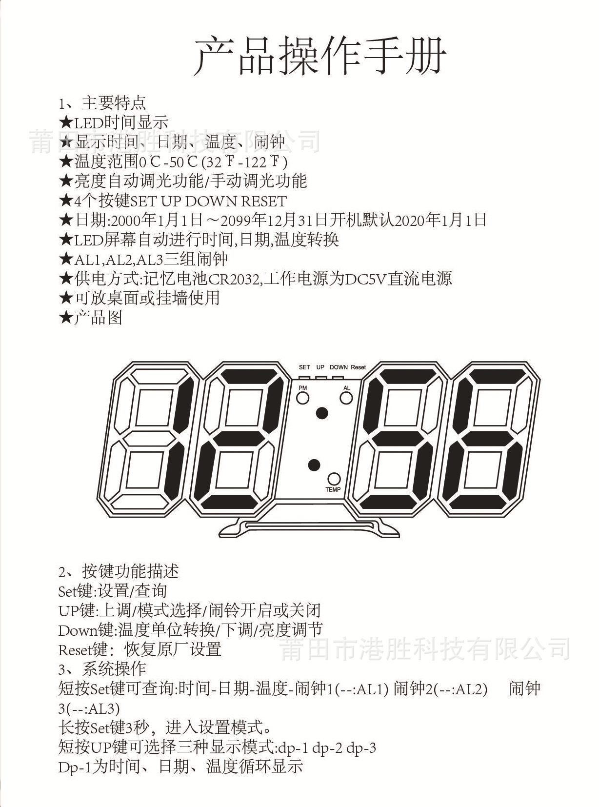 备注:产品有自带一个CR2032电池,纽扣电池是断电时记忆时间用的,当DC电源断电后再插上电不需要重新设置时间。
