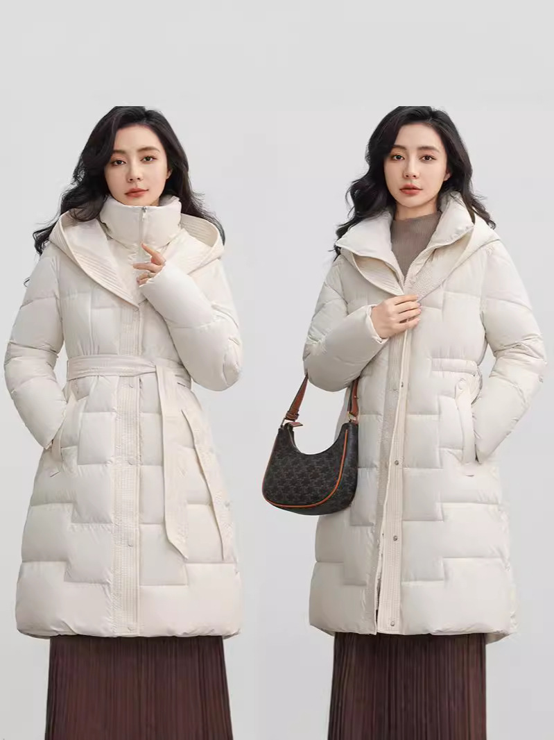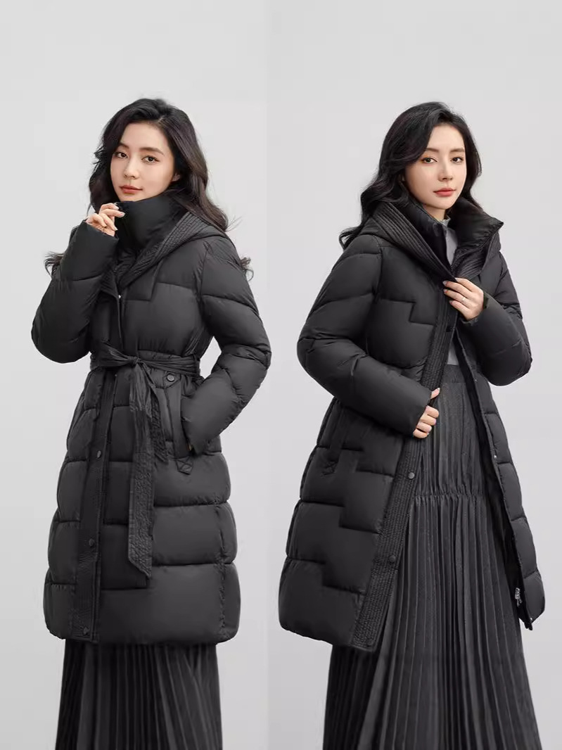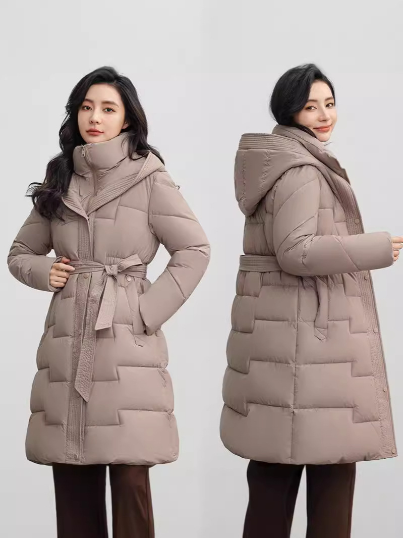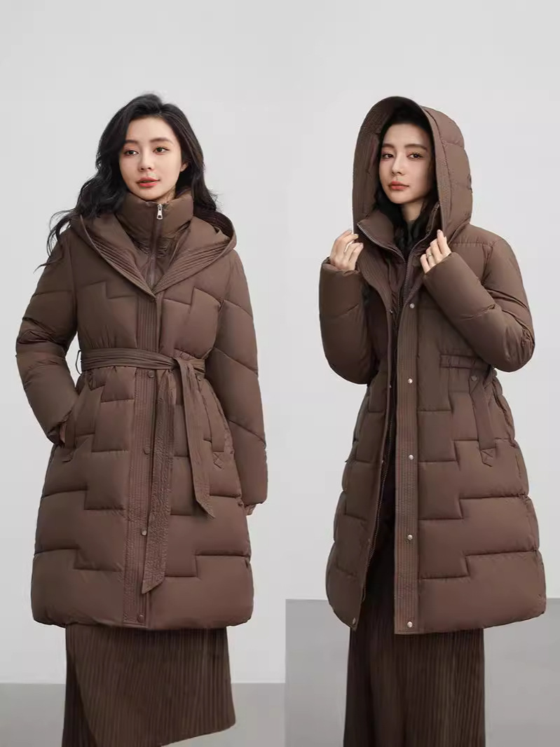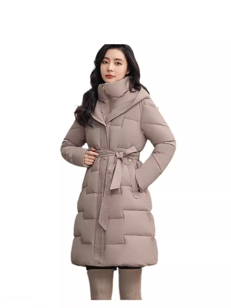 С капюшоном на талии шнуровка, пуховая хлопчатобумажная одежда, женский бутик новый средний и длинный зимний