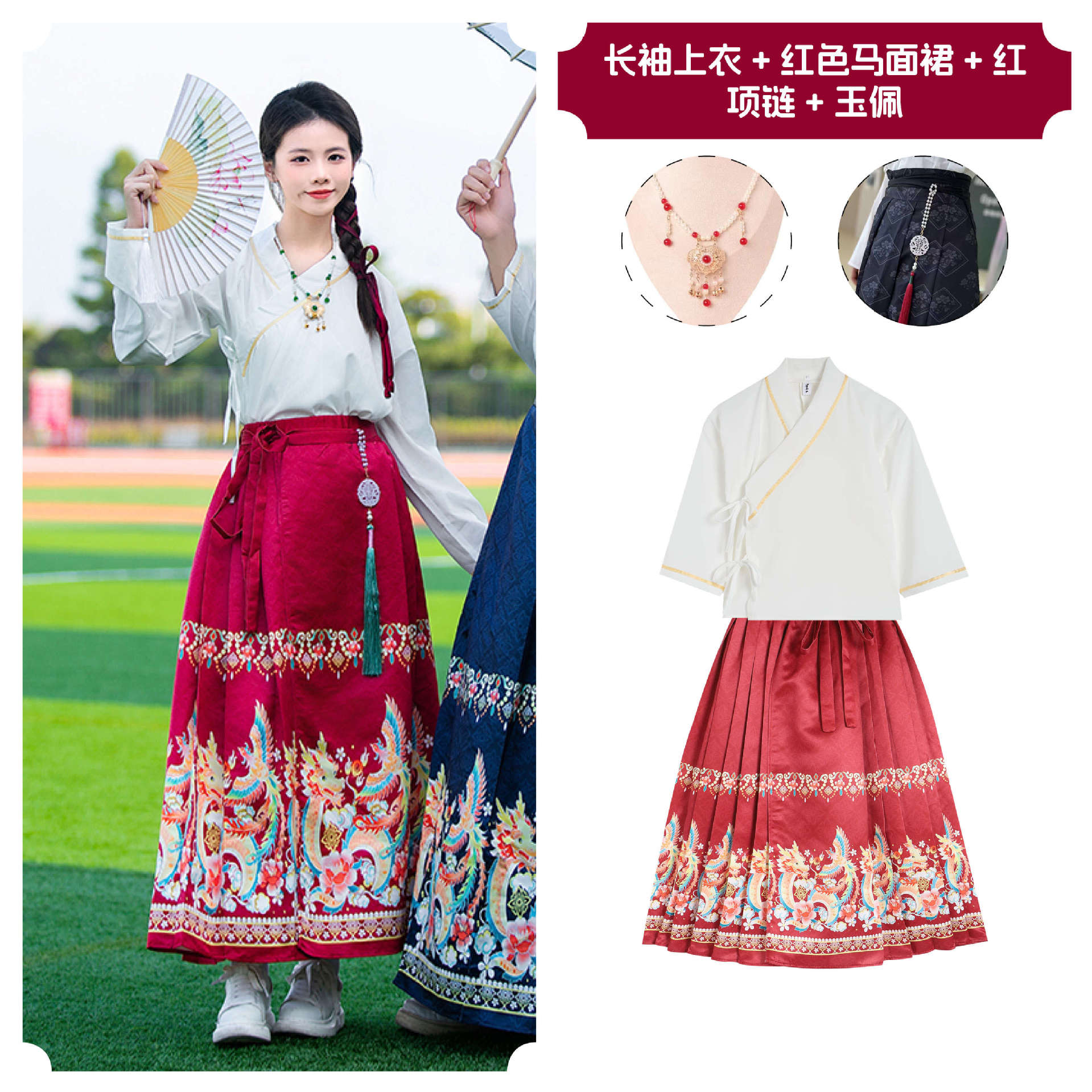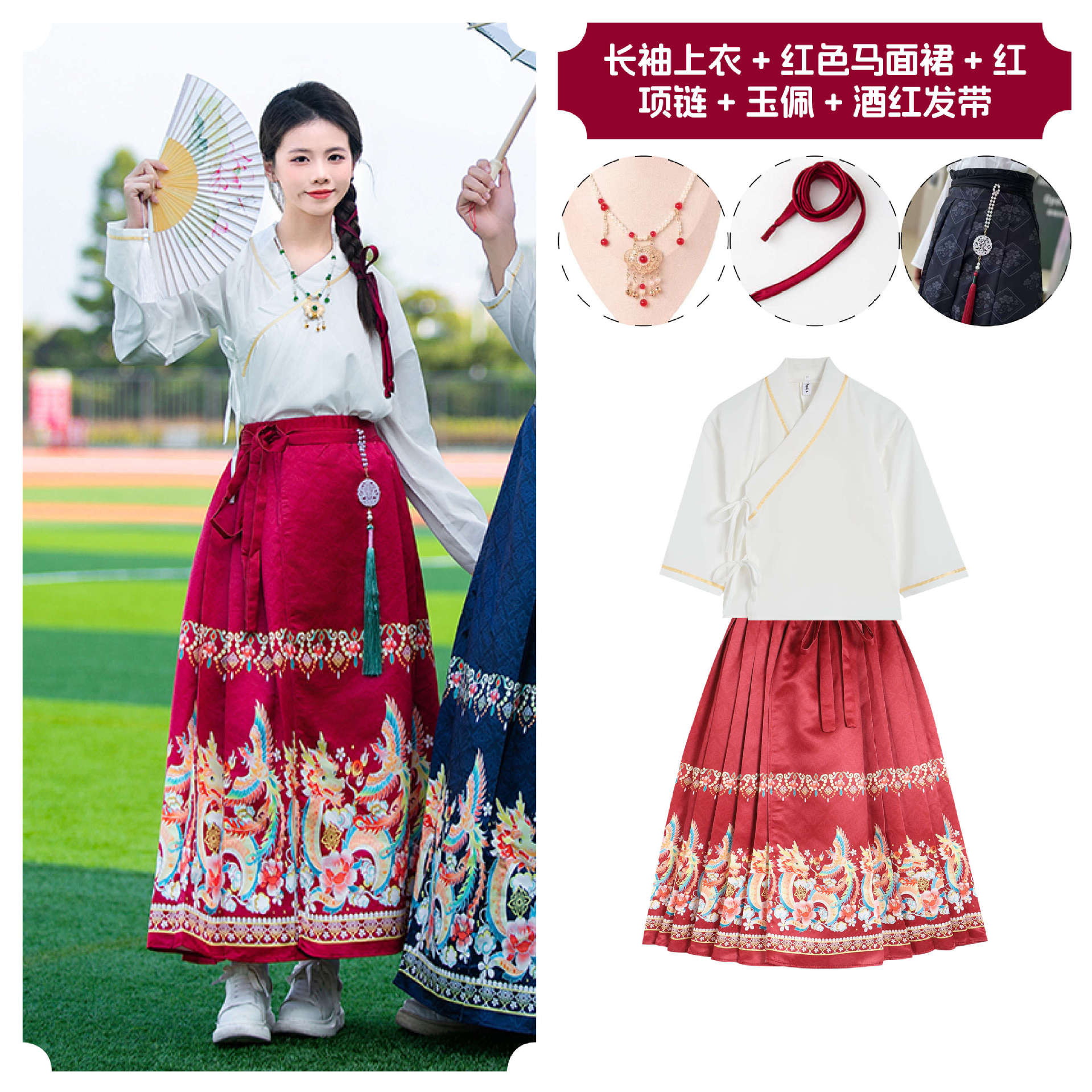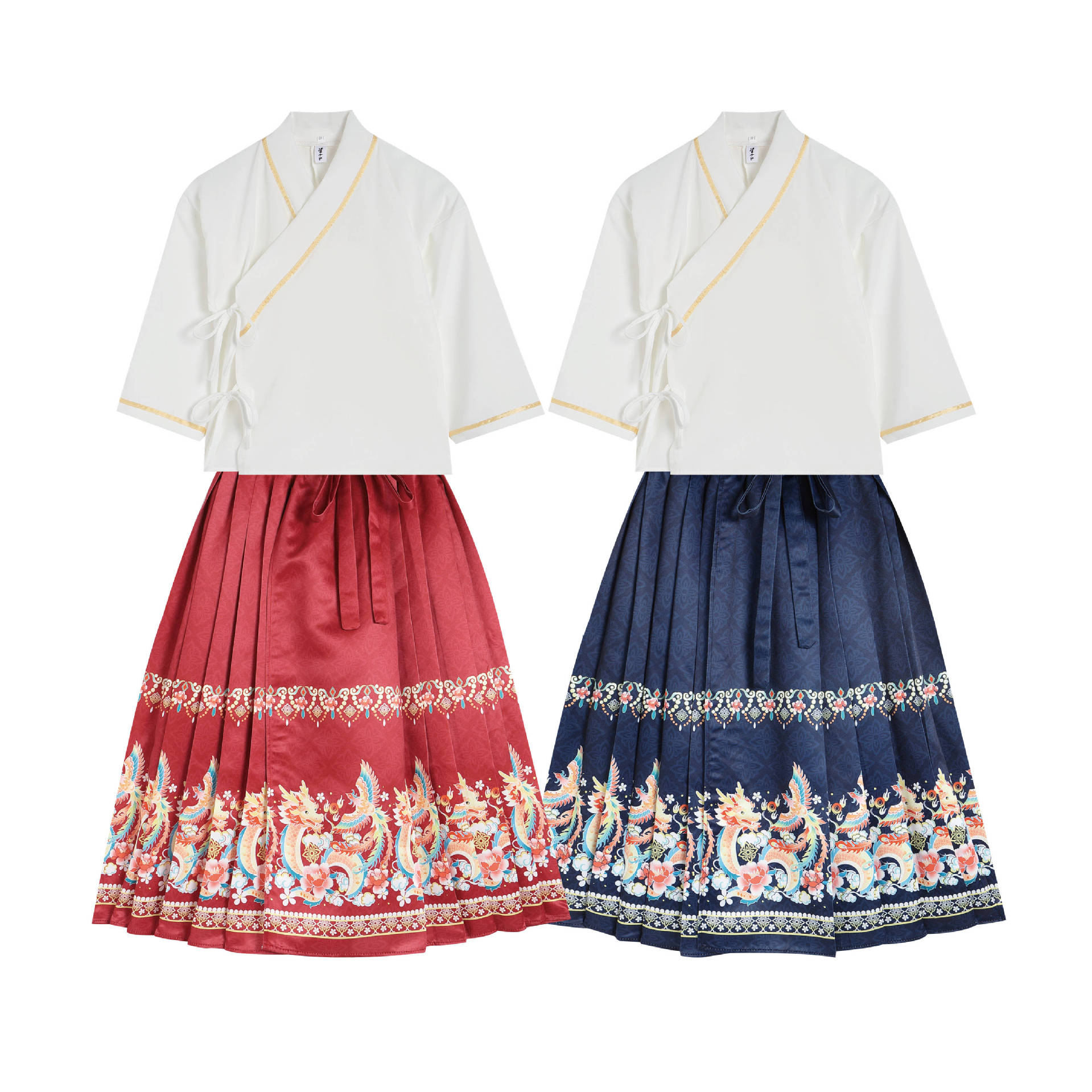 Юбка красной лошади + топ; Юбка красной лошади + топ + повязка на голову; Юбка красной лошади + топ + колье; Юбка красной лошади + топ + колье + повязка на голову; Юбка красной лошади + топ + колье + кулон из нефрита; Юбка красной лошади + топ + колье + кулон из нефрита + повязка на голову; Юбка с синей лошадью + топ; Юбка с синей лошадью + топ + колье; Юбка с синей лошадью + топ + колье + кулон из нефрита; Топ династии Белый хань; Юбка с лицом красной лошади; синяя юбка для лошади