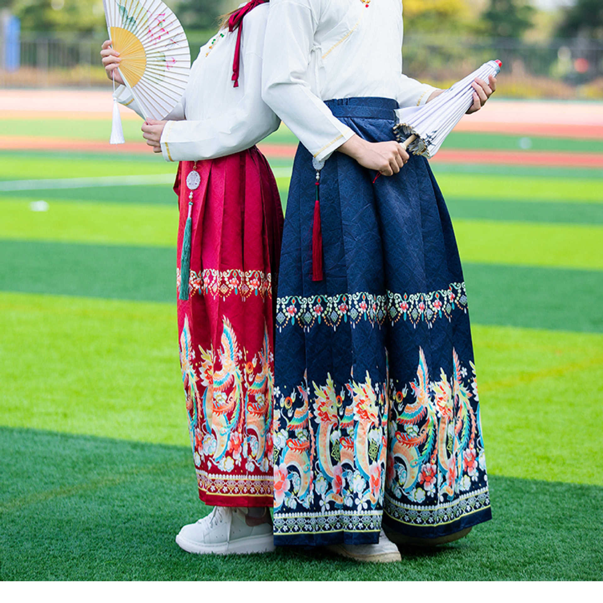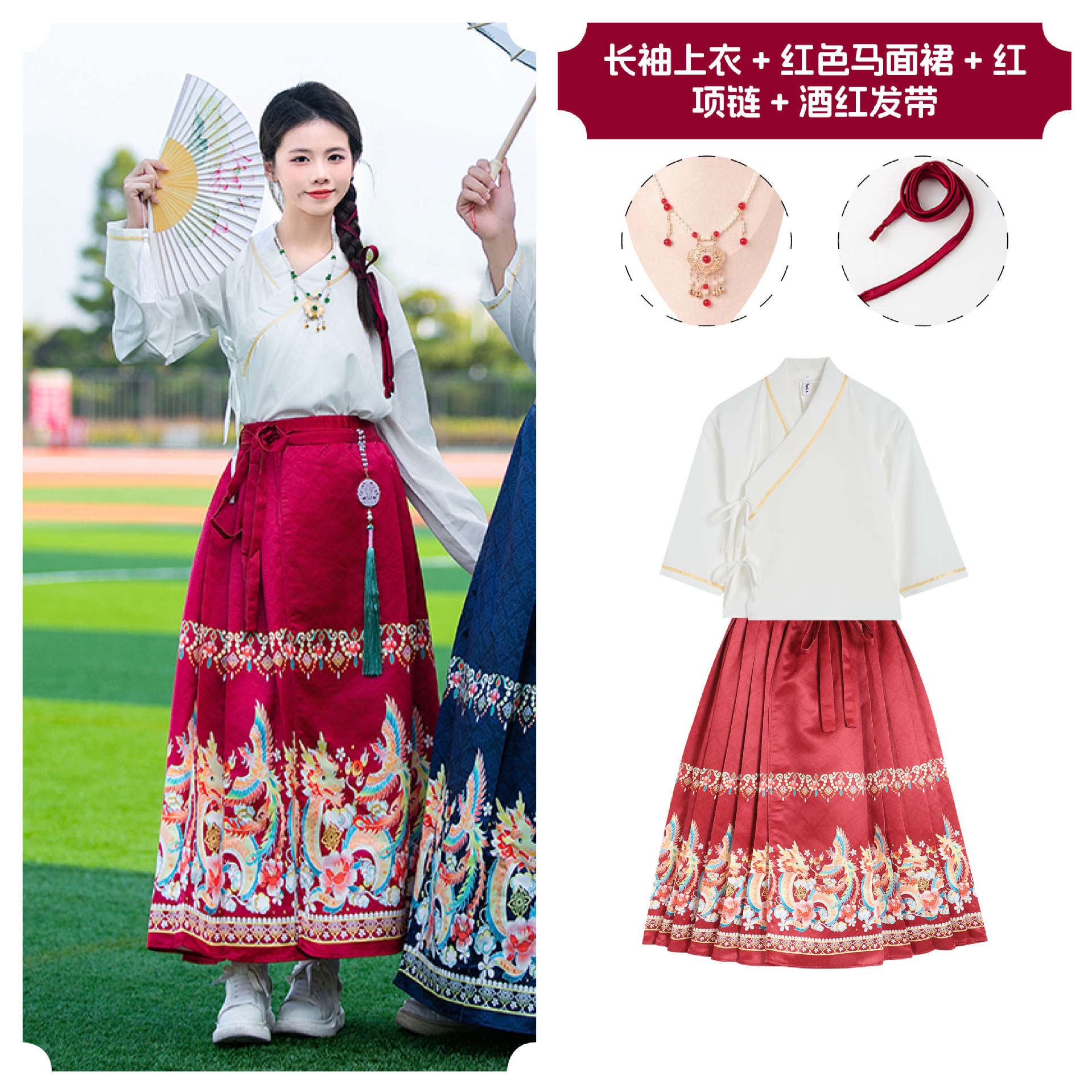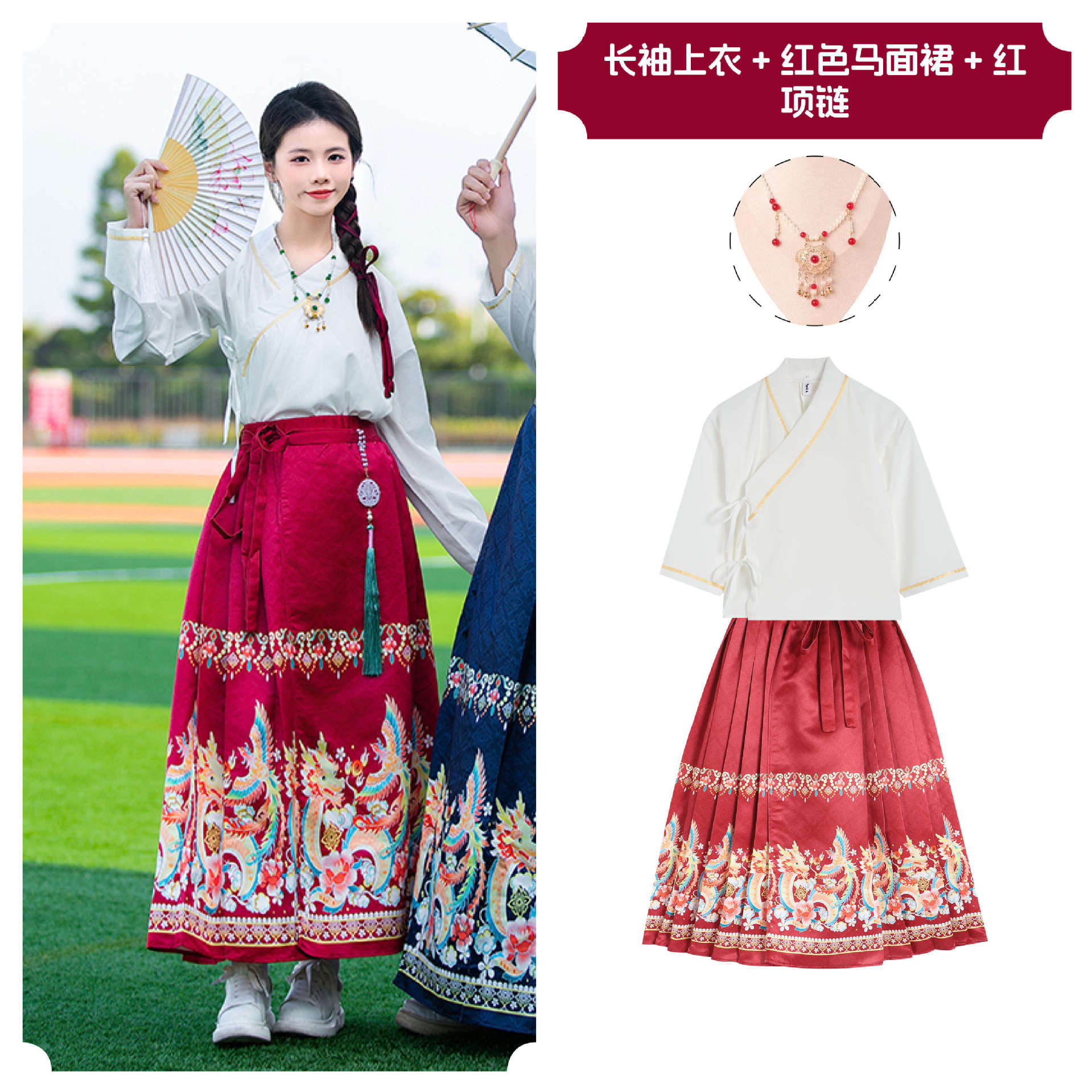 Юбка красной лошади + топ; Юбка красной лошади + топ + повязка на голову; Юбка красной лошади + топ + колье; Юбка красной лошади + топ + колье + повязка на голову; Юбка красной лошади + топ + колье + кулон из нефрита; Юбка красной лошади + топ + колье + кулон из нефрита + повязка на голову; Юбка с синей лошадью + топ; Юбка с синей лошадью + топ + колье; Юбка с синей лошадью + топ + колье + кулон из нефрита; Топ династии Белый хань; Юбка с лицом красной лошади; синяя юбка для лошади