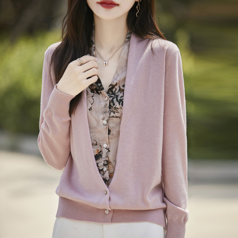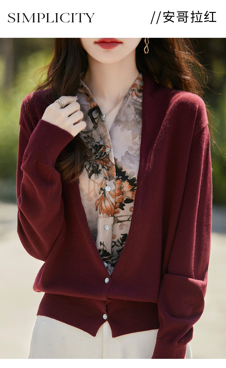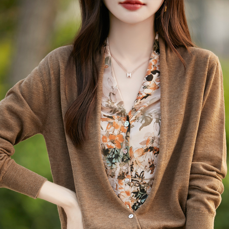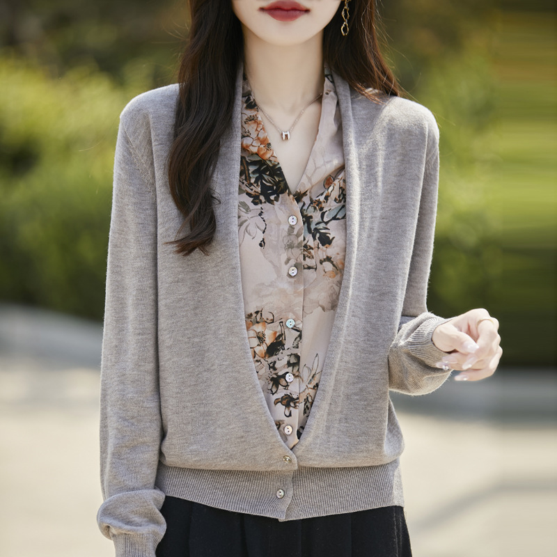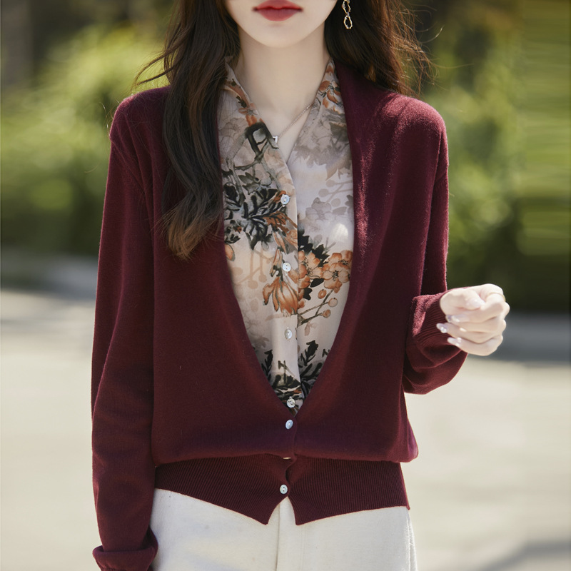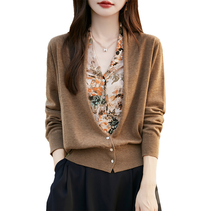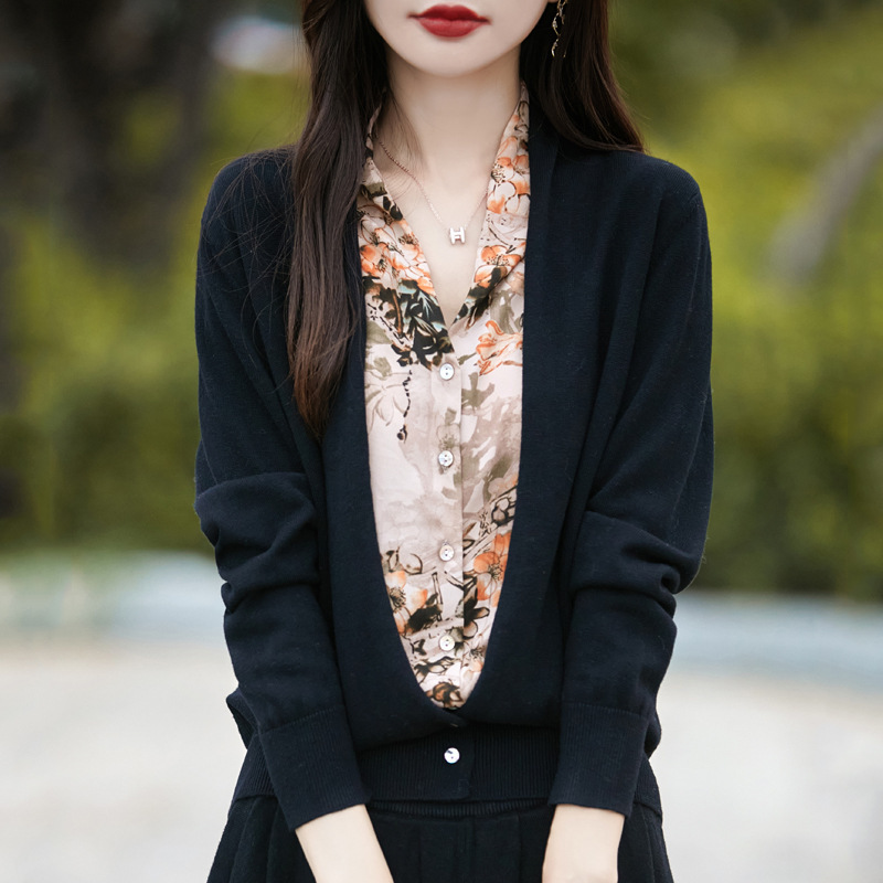 2024 чернила рисование наложницы воротник ранняя осень поддельные два шерстяные вязаные кардиганы дикий модный длинный рукав V-образный вырез