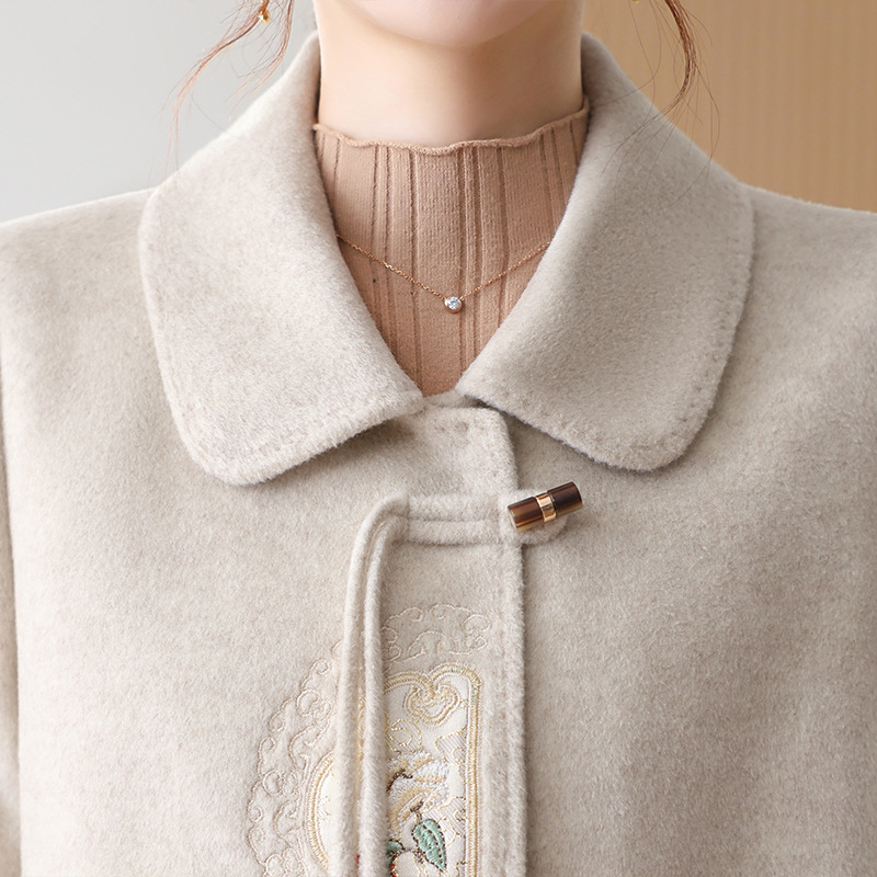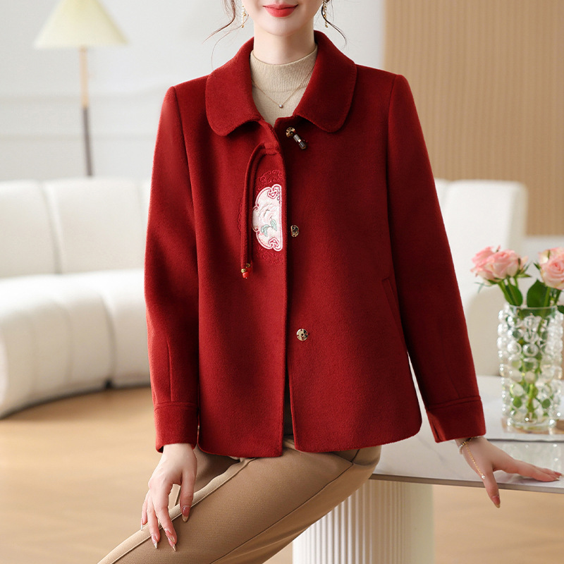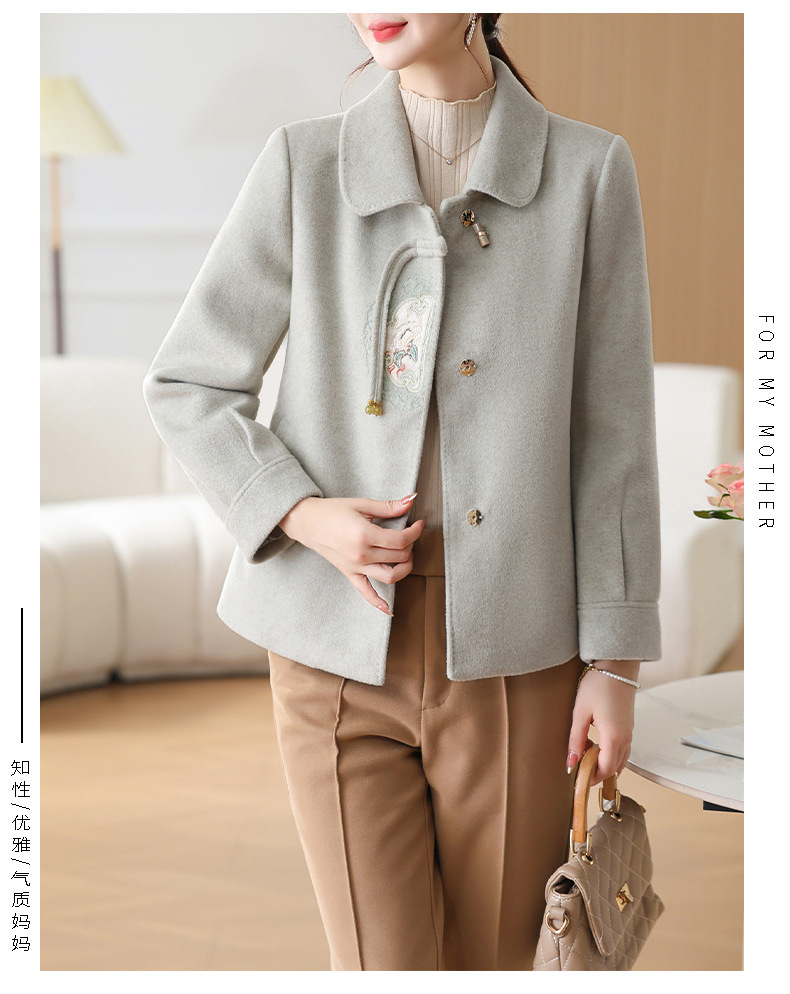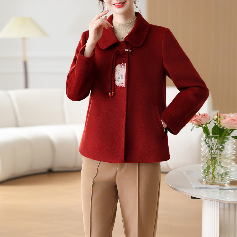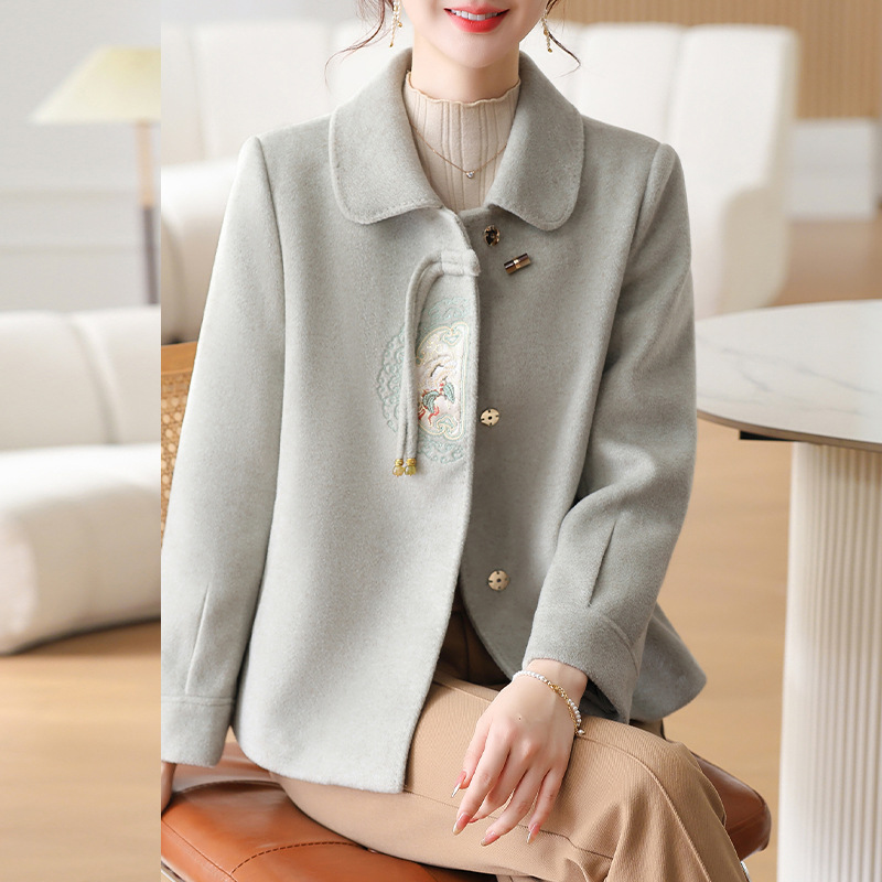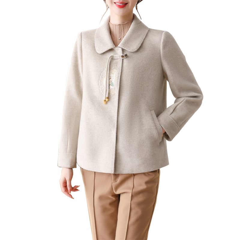 Иностранная вышивка маленькая мама одеваются весенне-осеннее шерстяное пальто новая женская мода среднего возраста шерстяное пальто