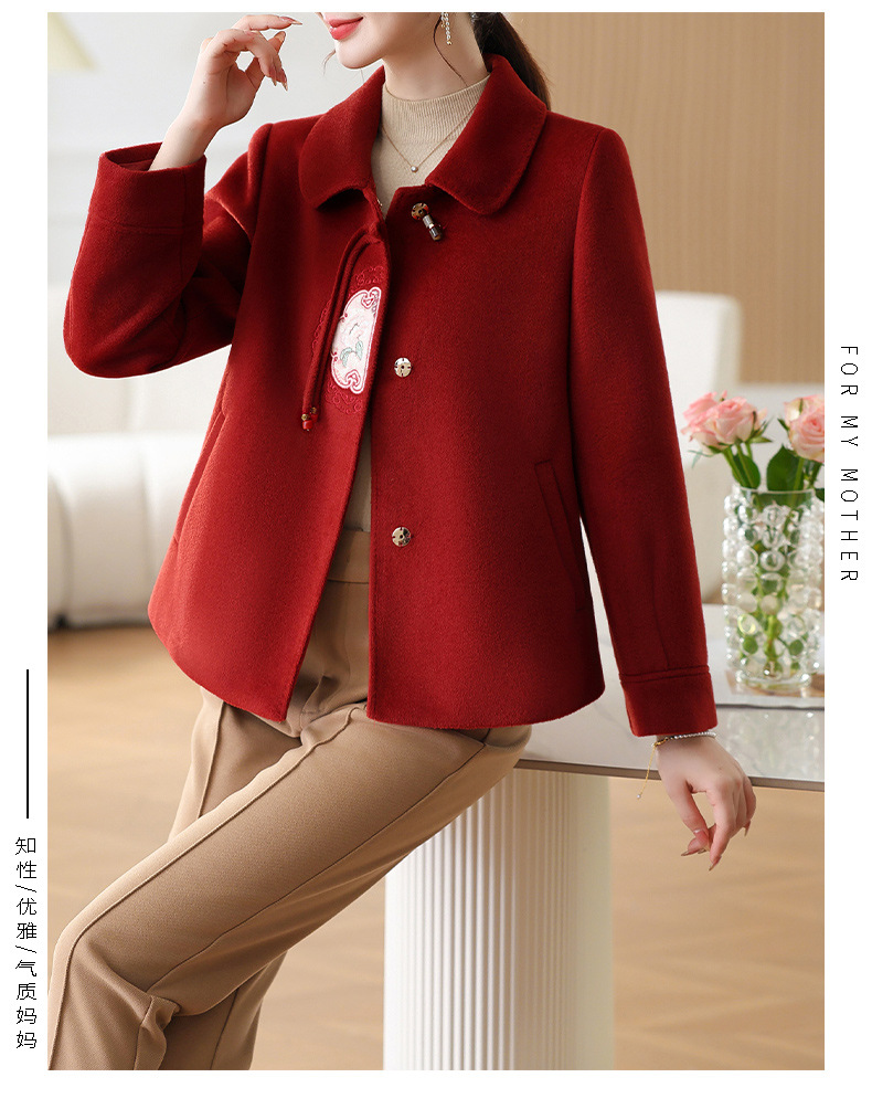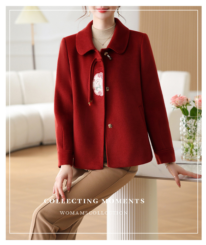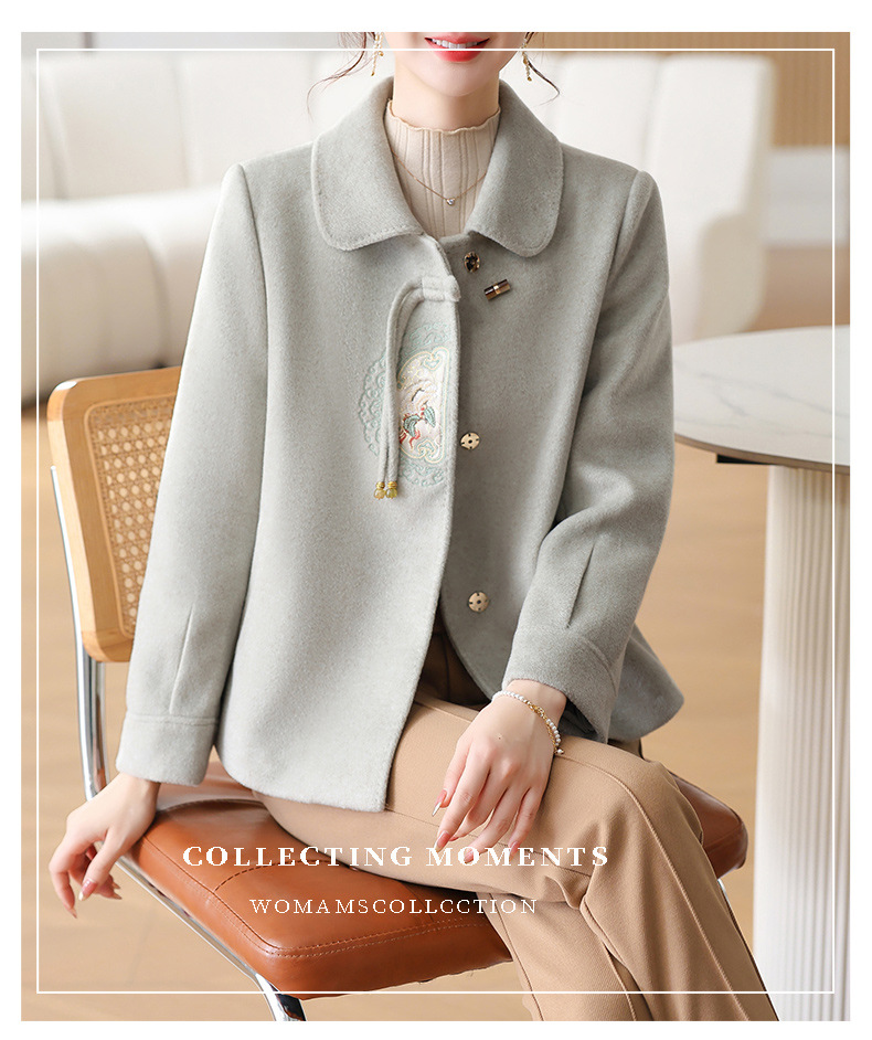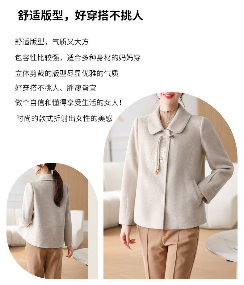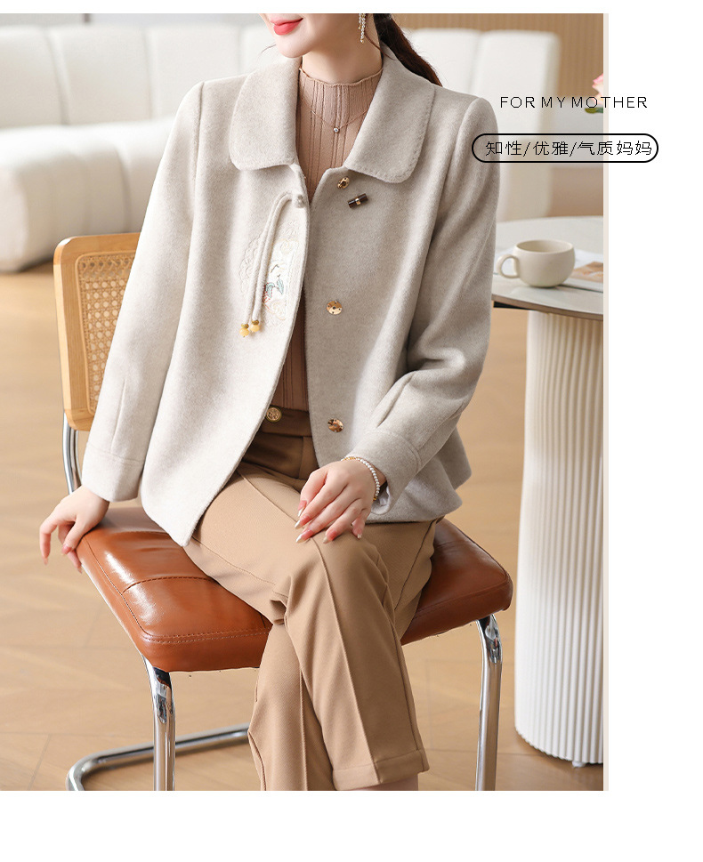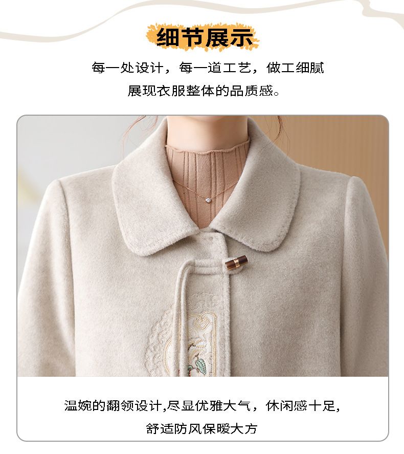 Иностранная вышивка маленькая мама одеваются весенне-осеннее шерстяное пальто новая женская мода среднего возраста шерстяное пальто
