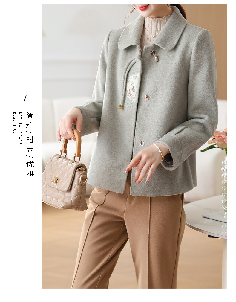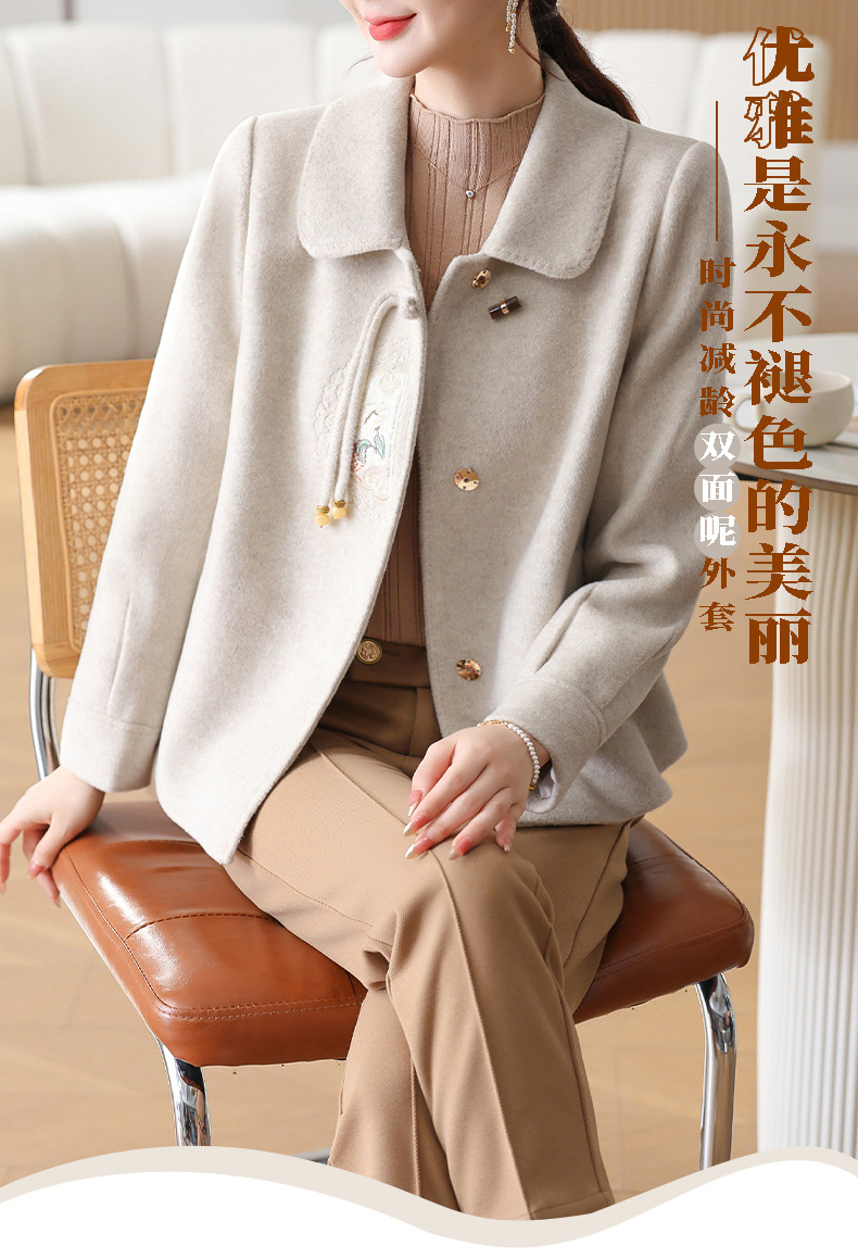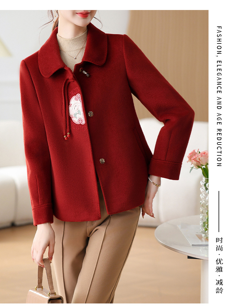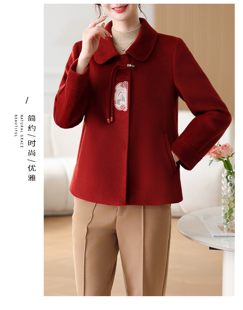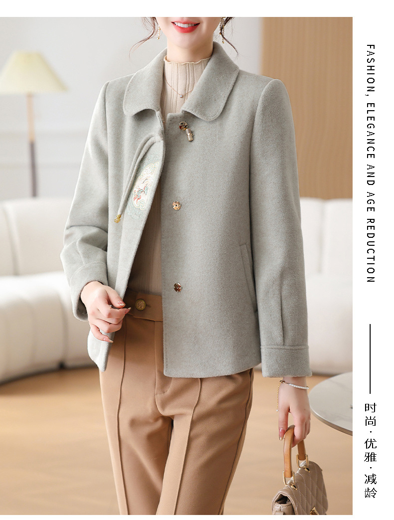 Иностранная вышивка маленькая мама одеваются весенне-осеннее шерстяное пальто новая женская мода среднего возраста шерстяное пальто