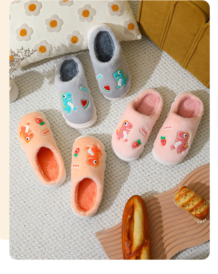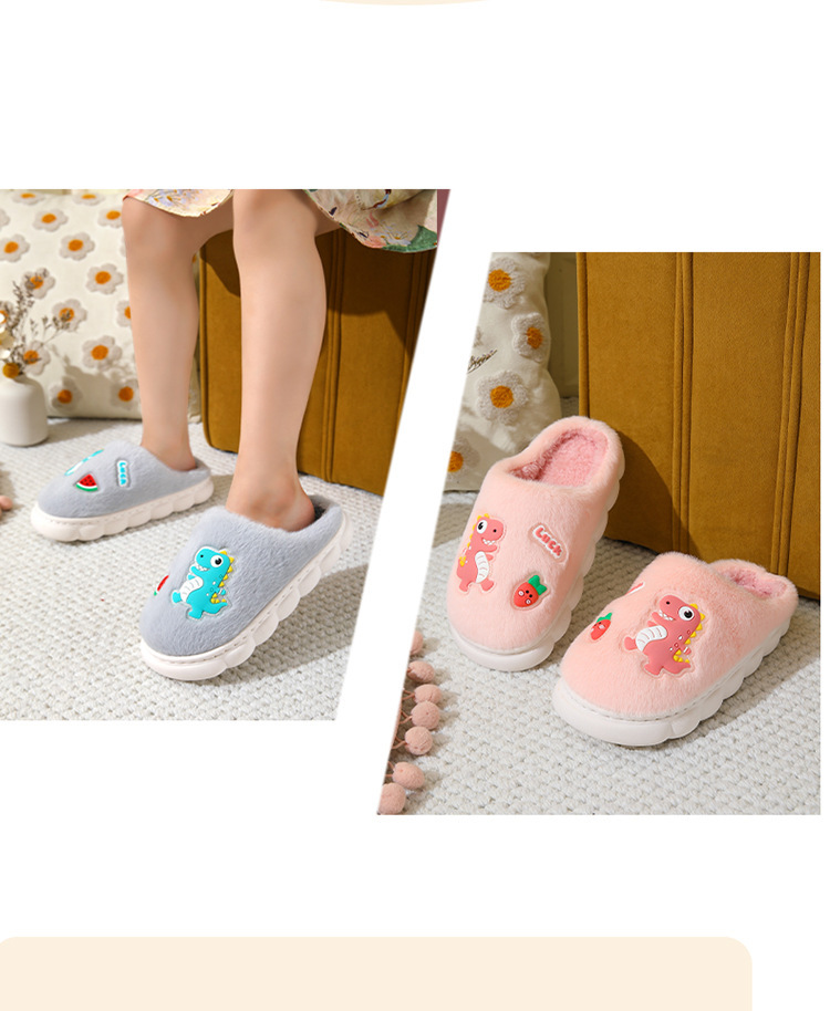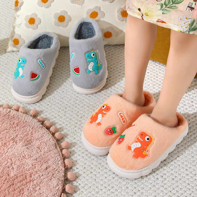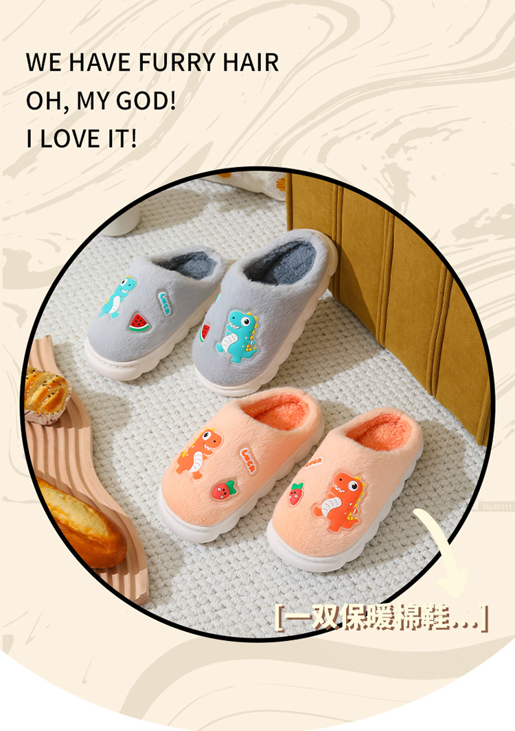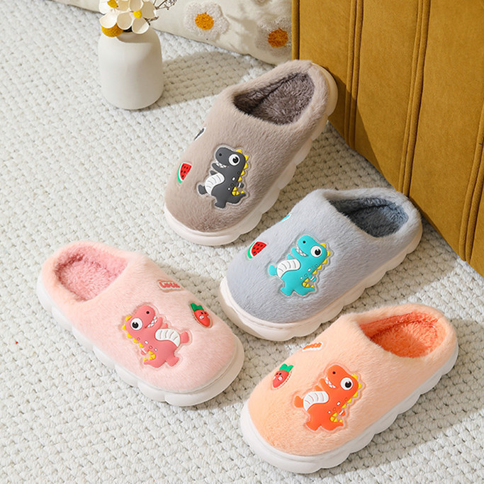 Хлопчатобумажная обувь для детей зимой 2024 новый милый мультяшный динозавр плюшевые ватные тапочки