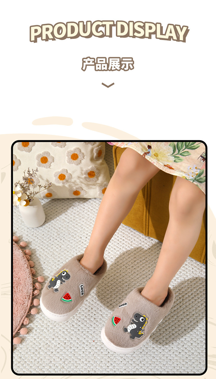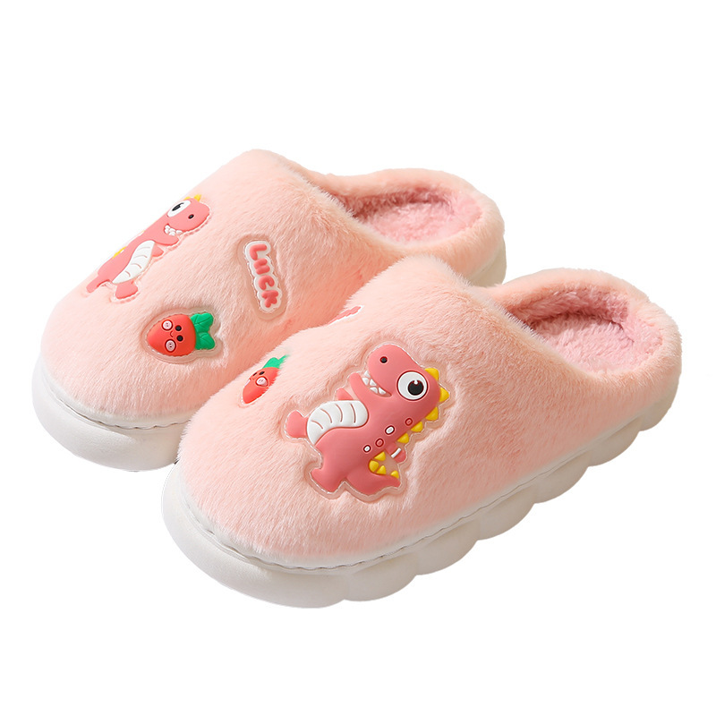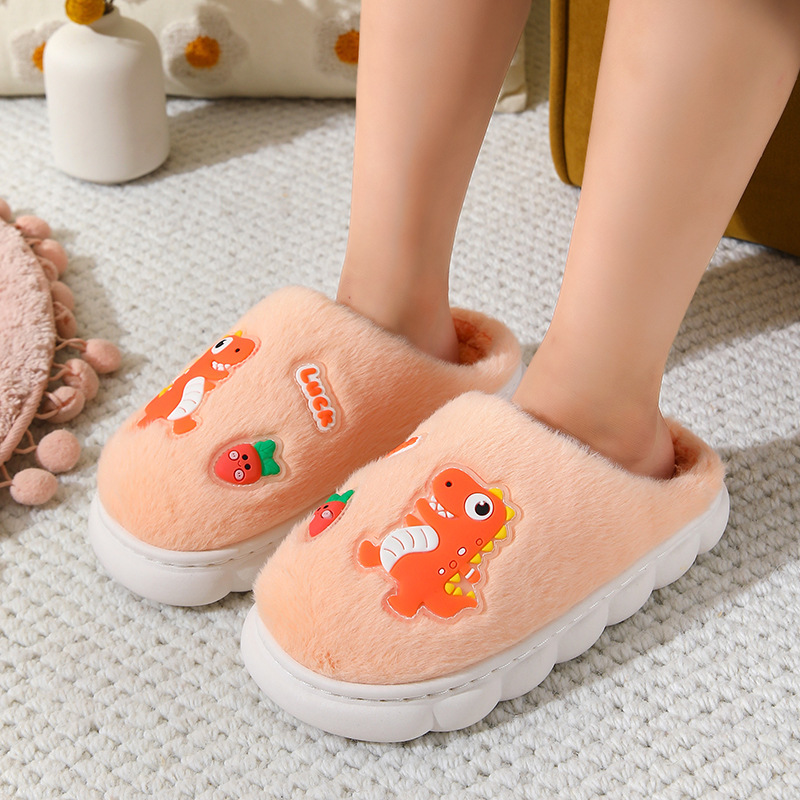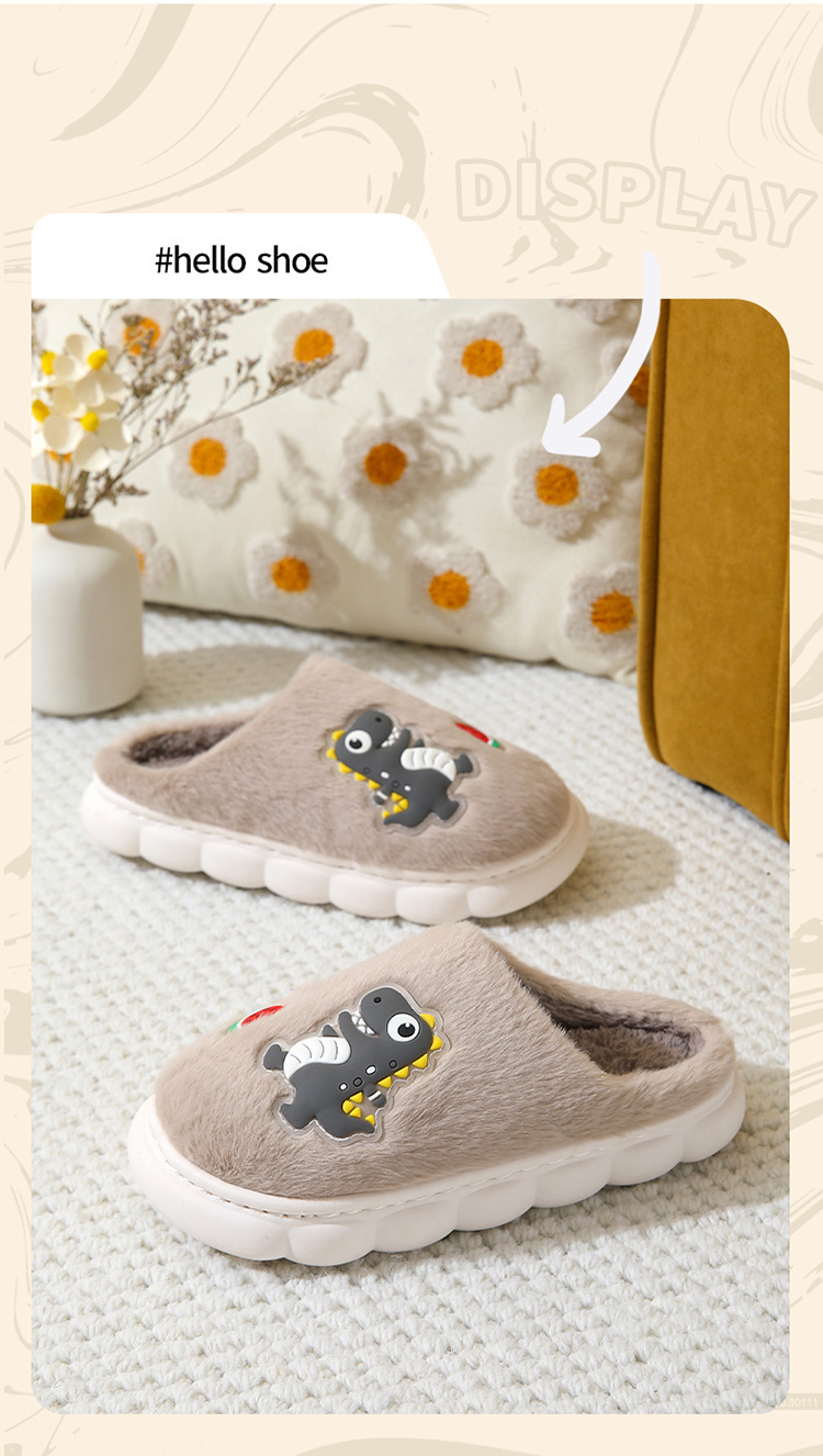 Хлопчатобумажная обувь для детей зимой 2024 новый милый мультяшный динозавр плюшевые ватные тапочки