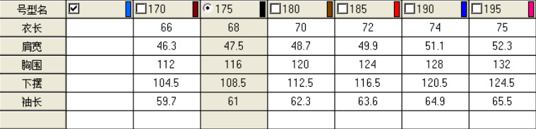 M/170; L/175; XL/180; 2XL/185; 3XL/190; 4XL/195