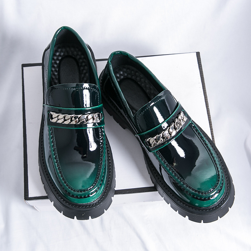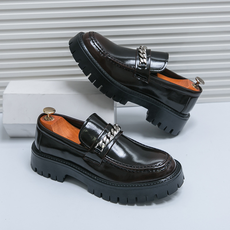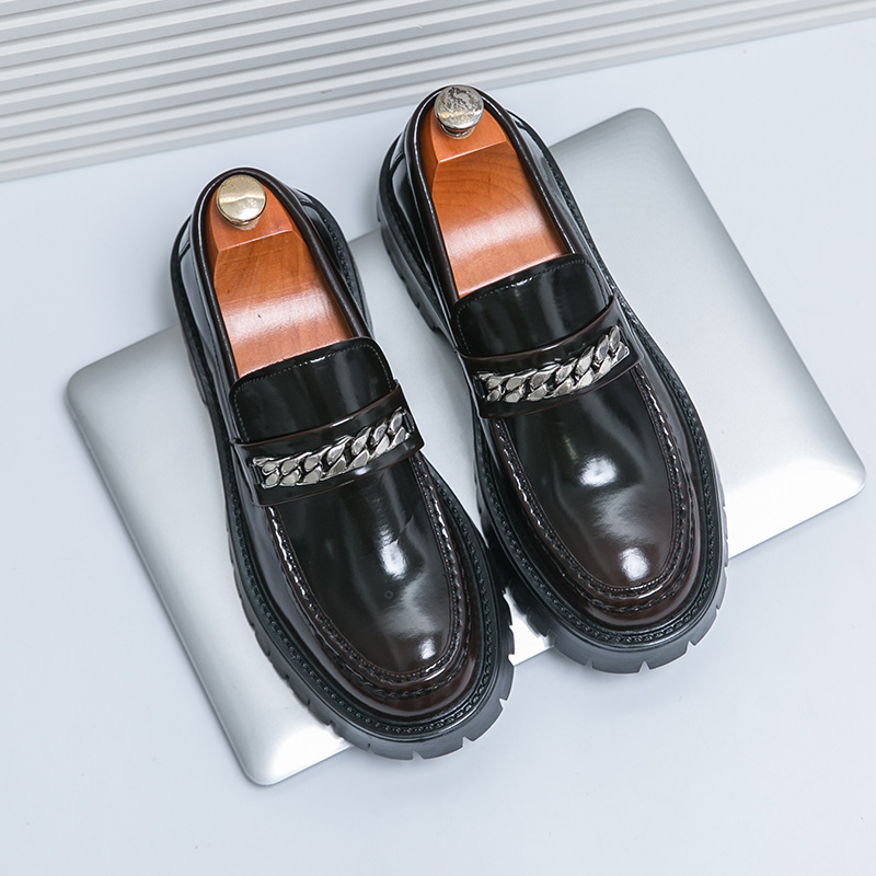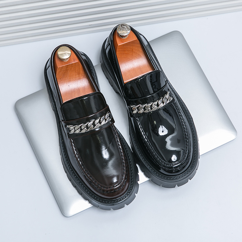 2024 новые мужские кожаные туфли с большой головой толстая подошва увеличена лакированная кожа блестящие повседневные туфли на толстом каблуке Lefu