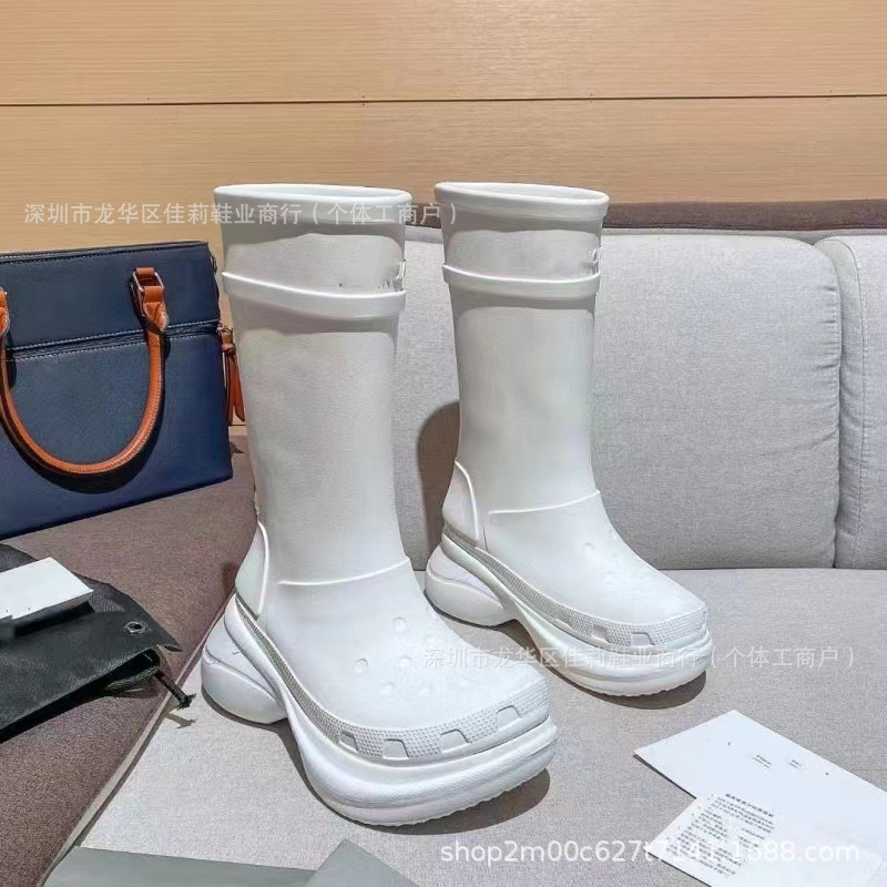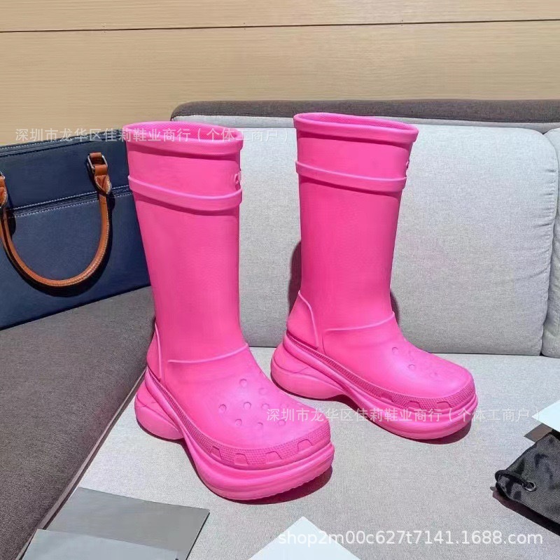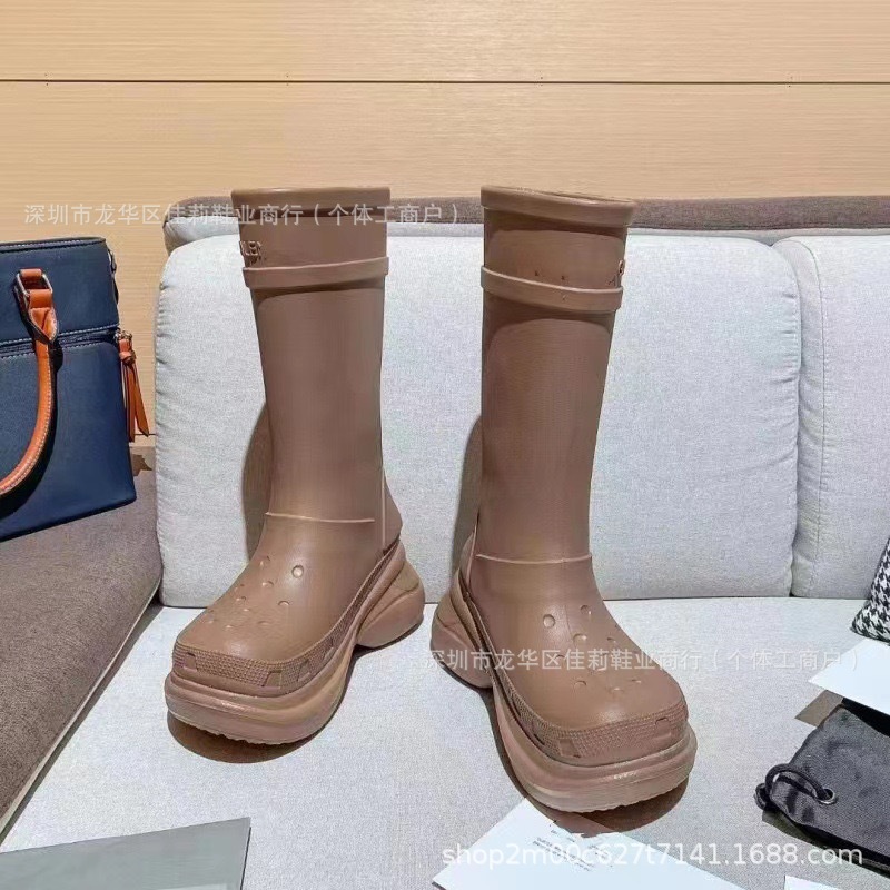 Прямые поставки: модные резиновые сапоги B-бренда, осенний стиль 2025, увеличивающие рост, водонепроницаемые, перфорированные, цвета леденцов, средней длины, унисекс