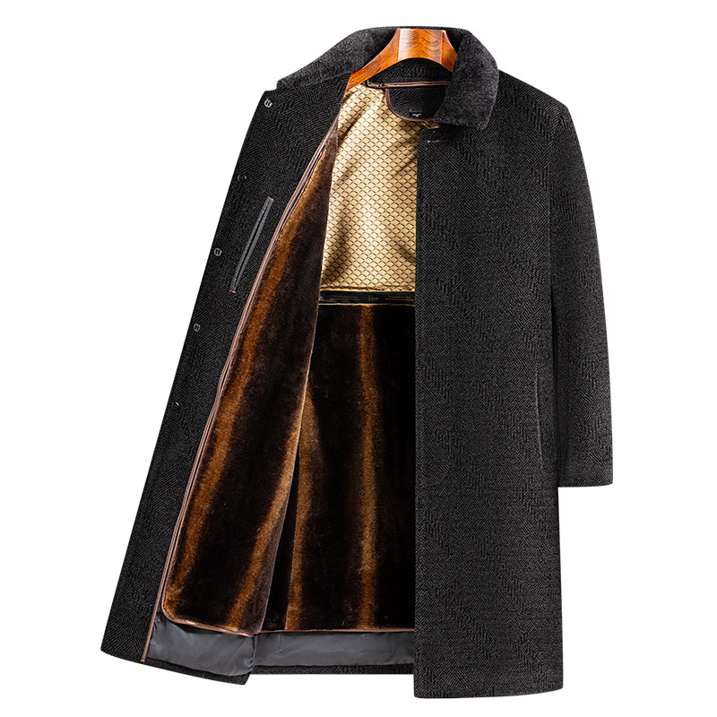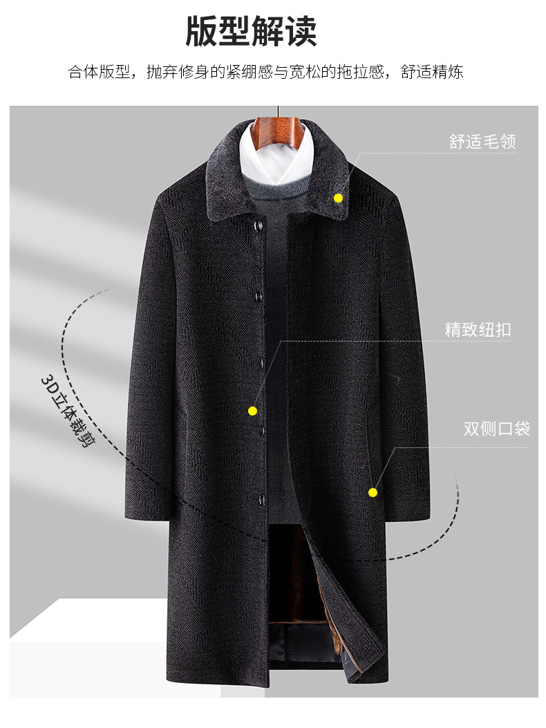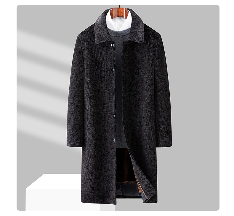 2024 новый Chenir длинный шерстяной воротник, норковый стальной пиджак, мужской повседневный папа, шерстяное пальто, мужской