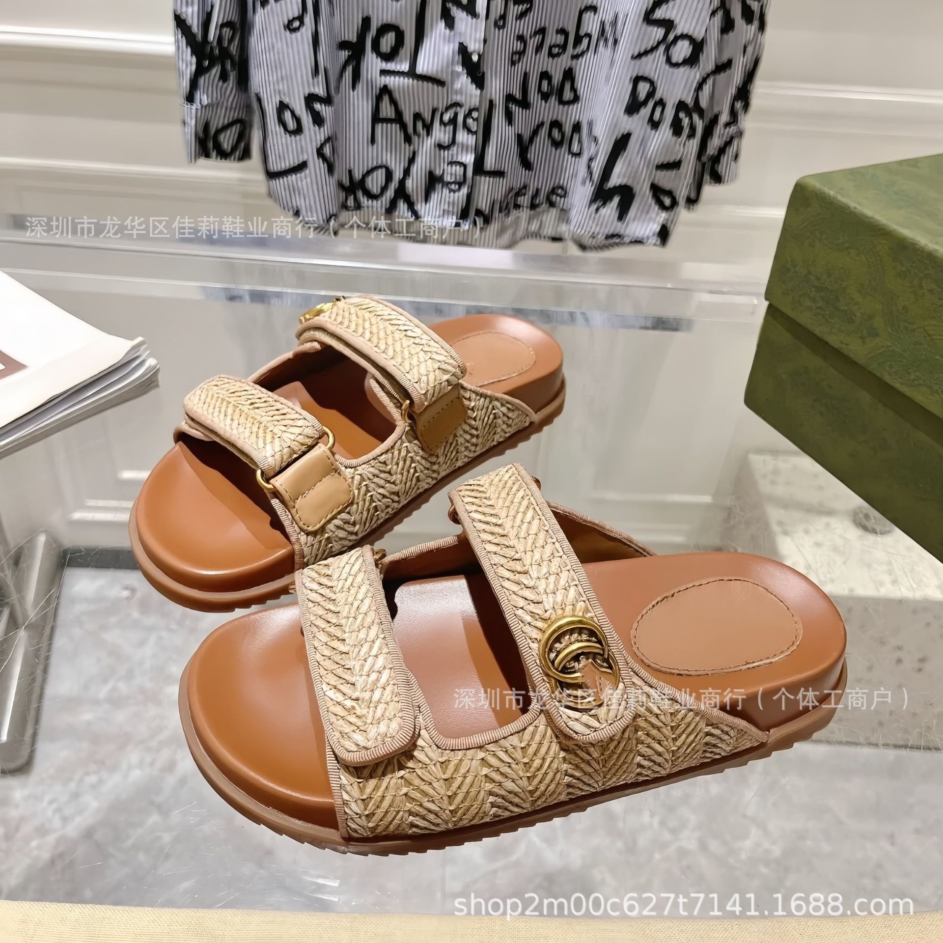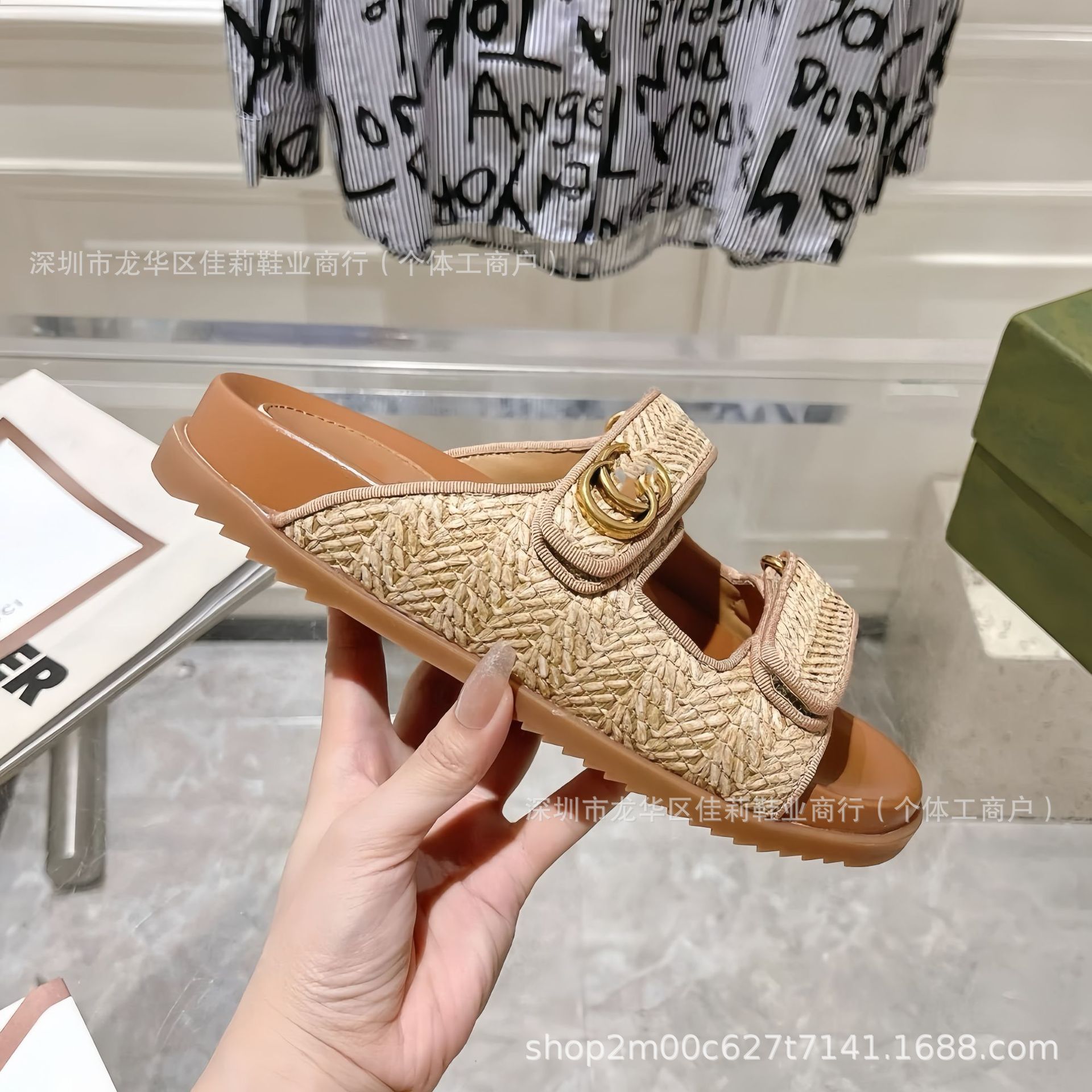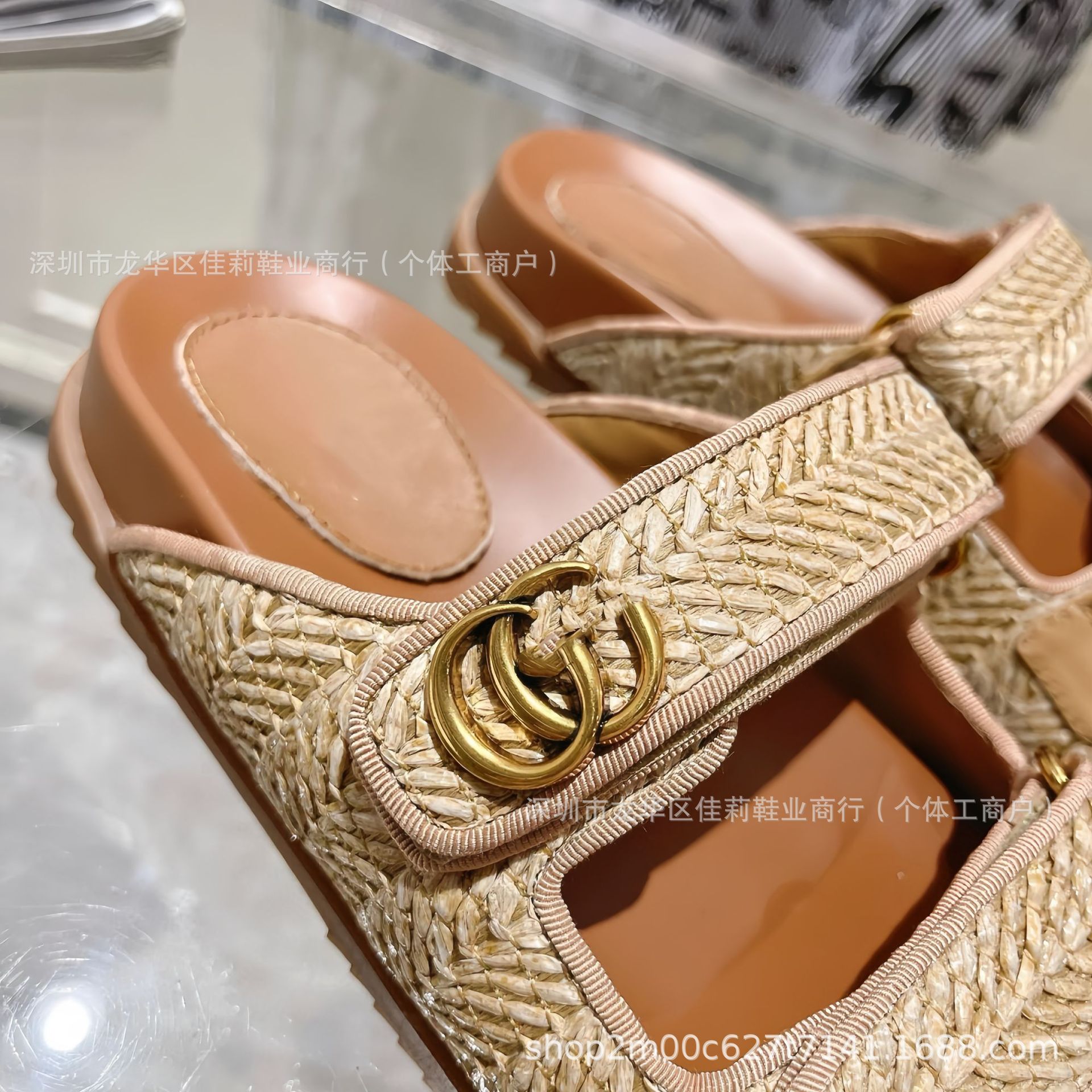 G Home бамбук и ротанг плетут липучку слово тапочки женский 024 летний новый римский пляж с открытым носком