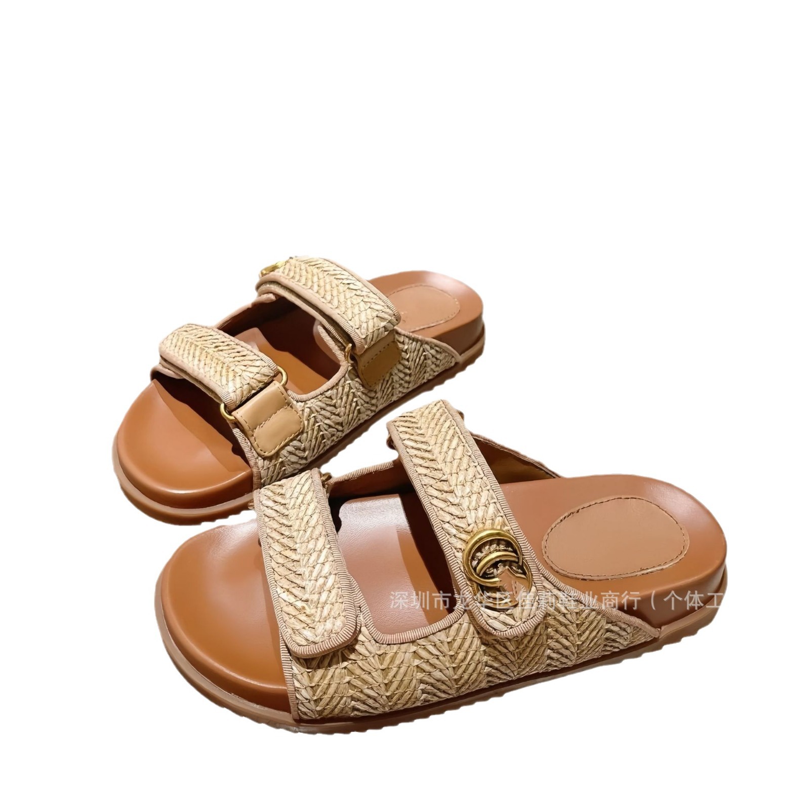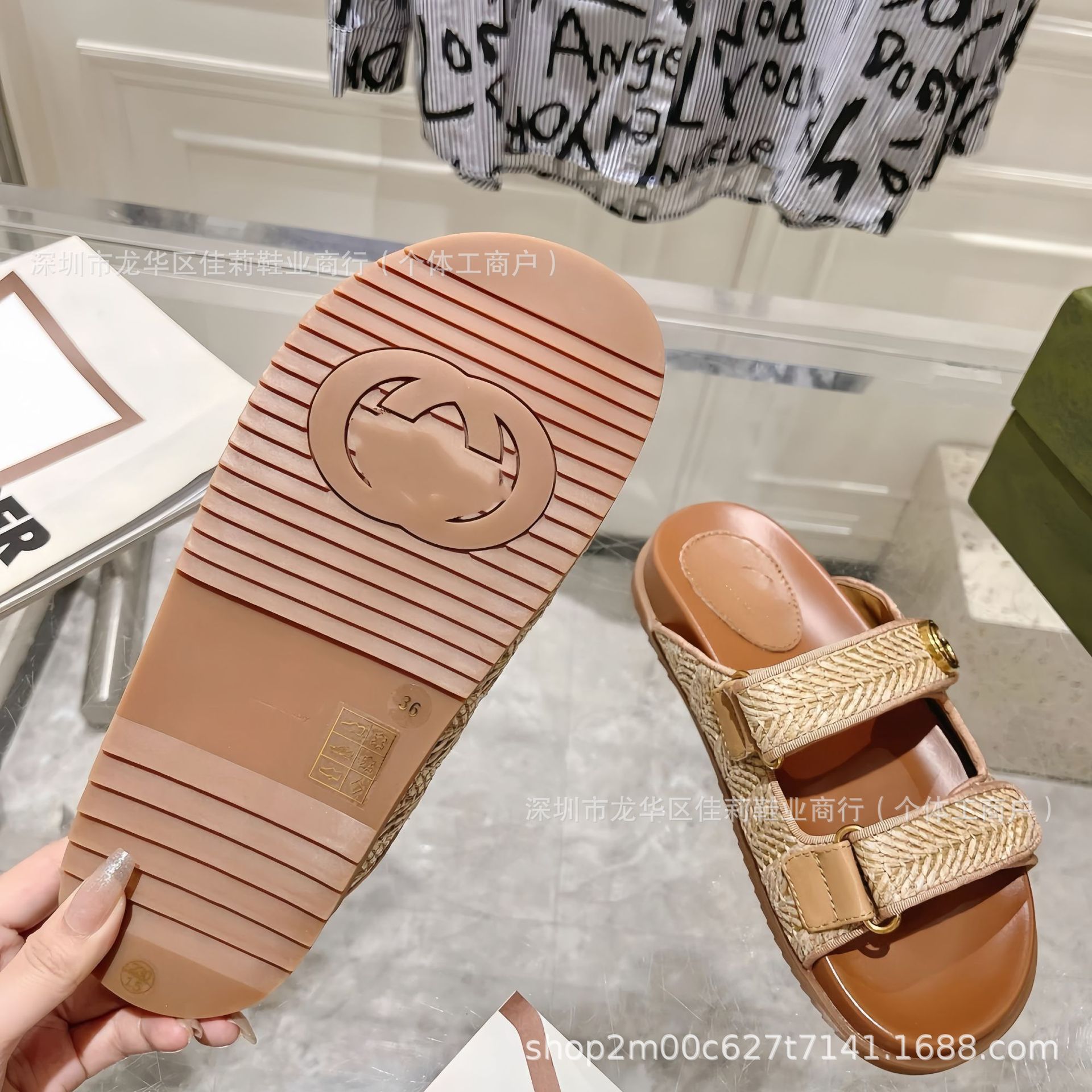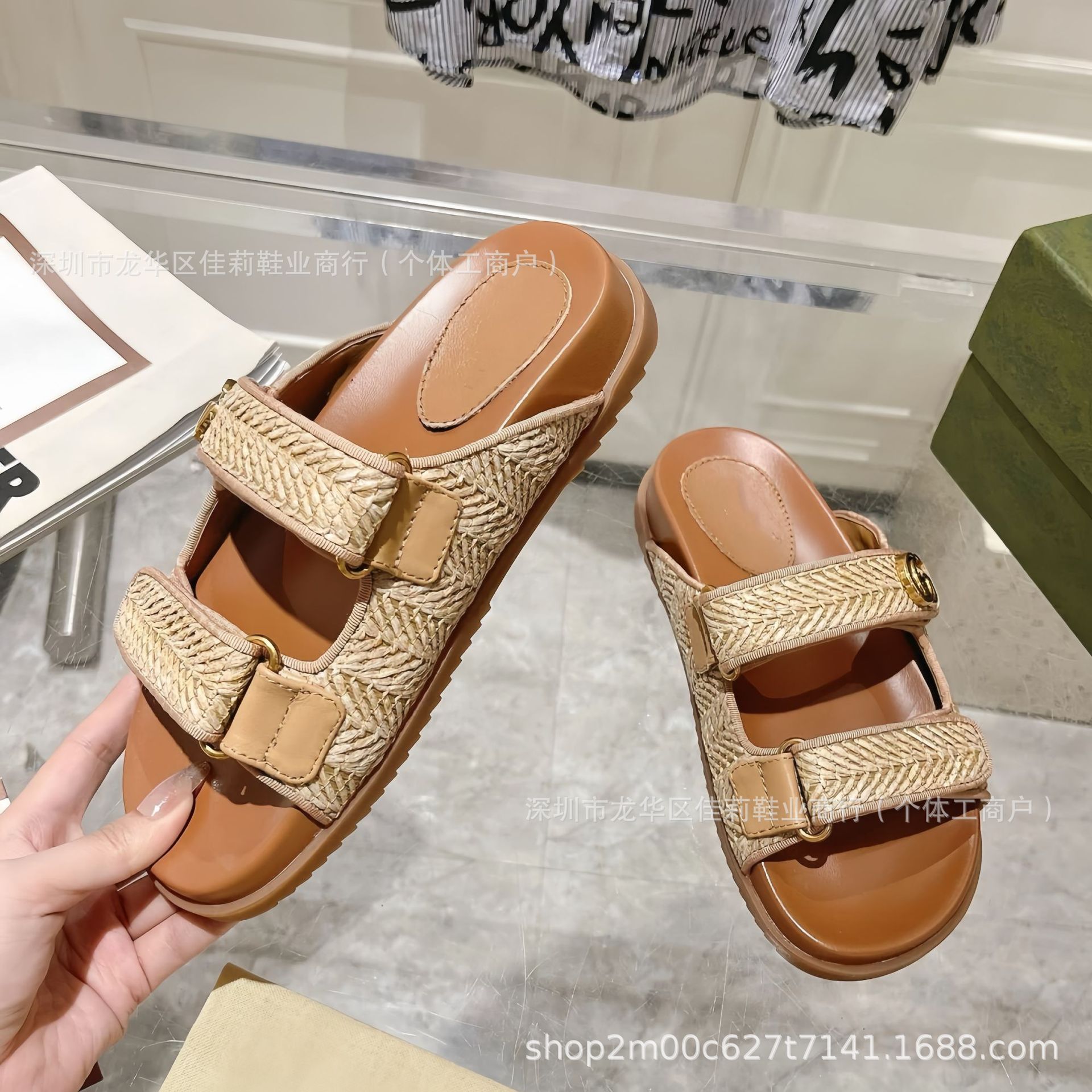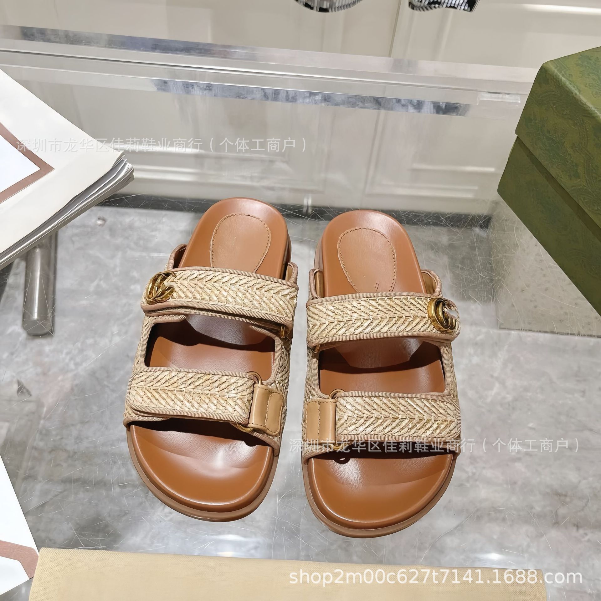 G Home бамбук и ротанг плетут липучку слово тапочки женский 024 летний новый римский пляж с открытым носком