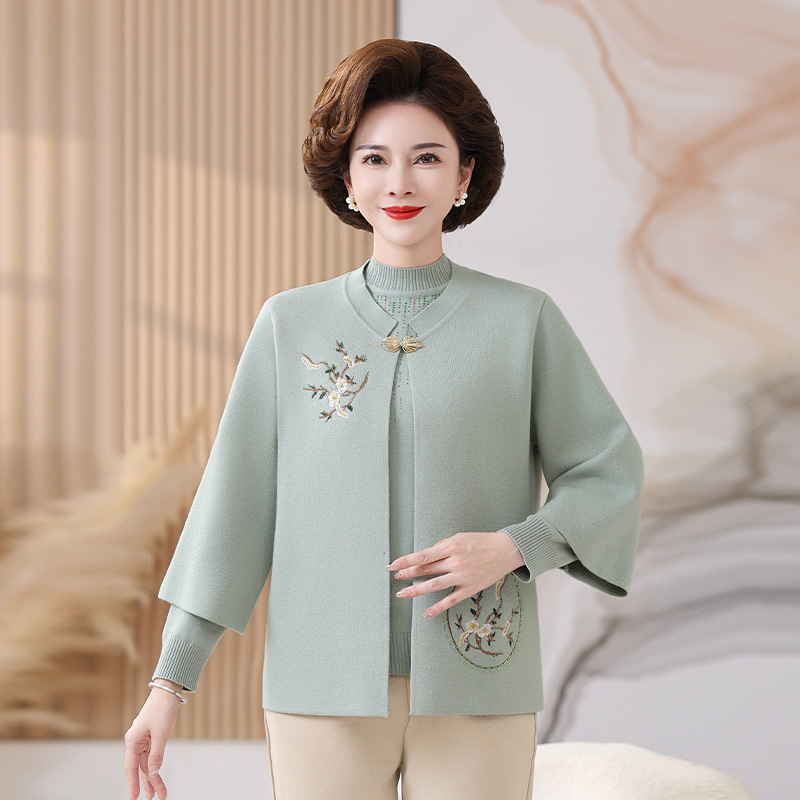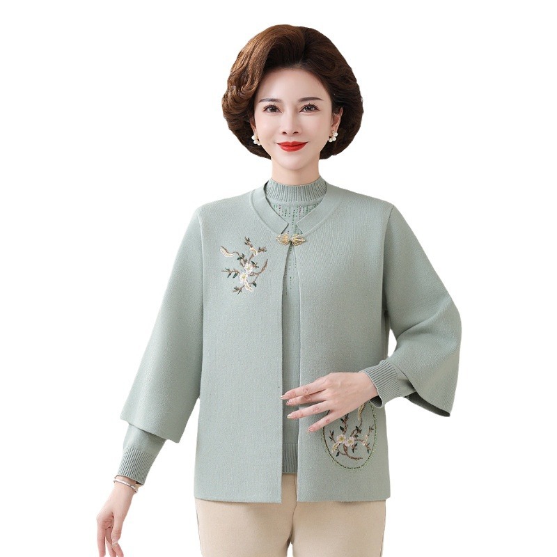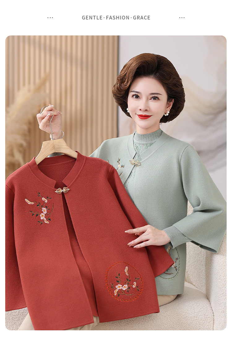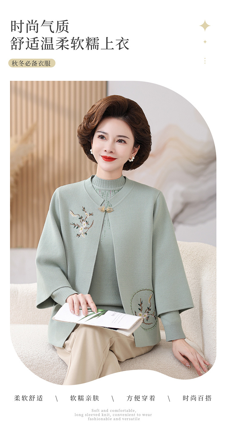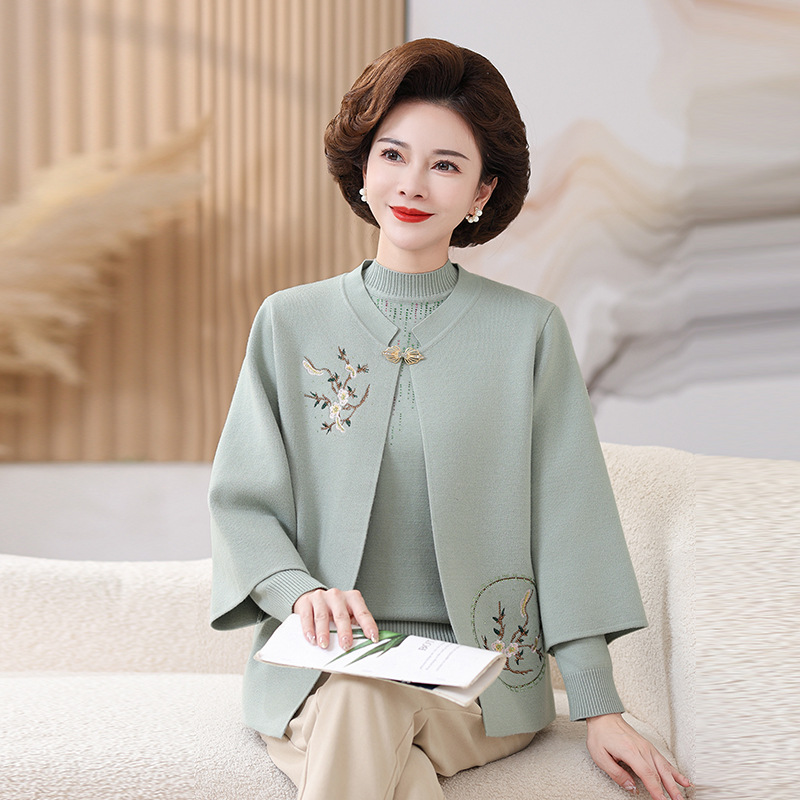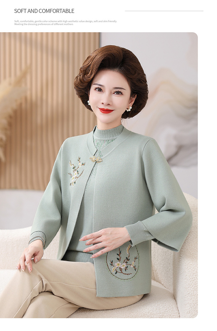 Новая коллекция весенне-осенней одежды для женщин среднего возраста, стильный осенне-зимний кардиган, женский комплект из двух предметов, вязаные топы и жакеты для женщин среднего и старшего возраста.