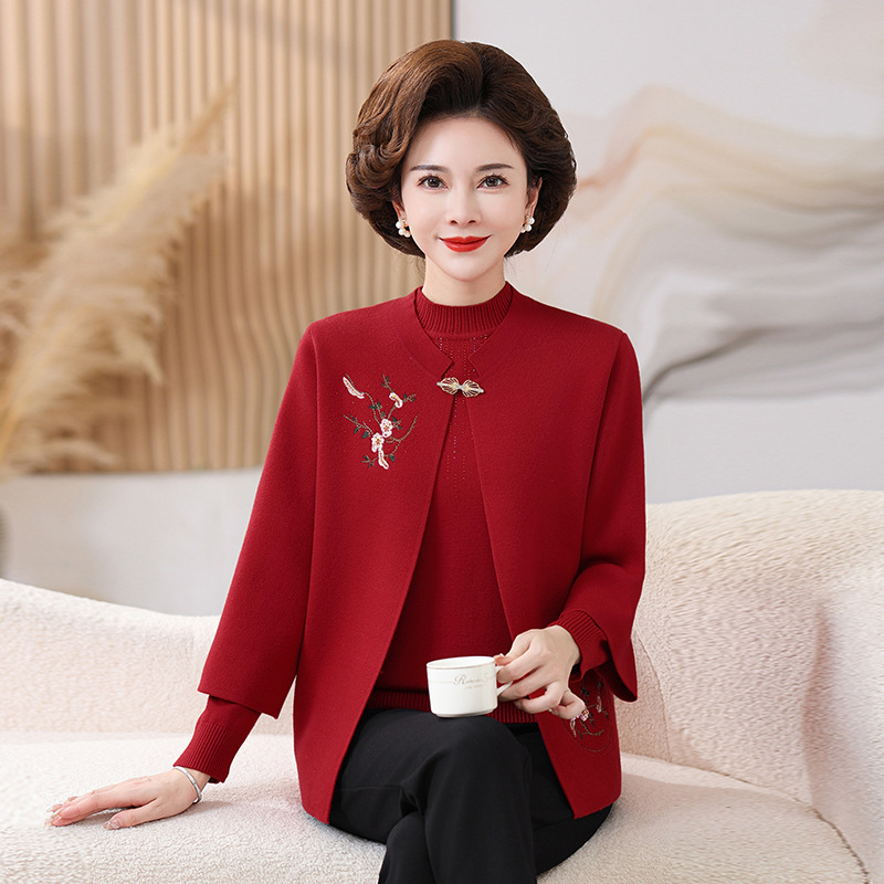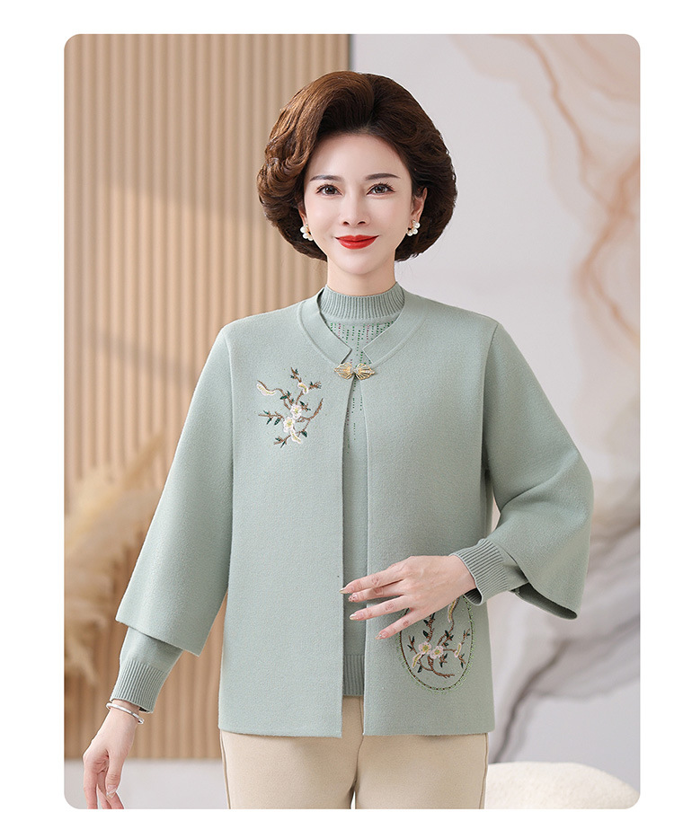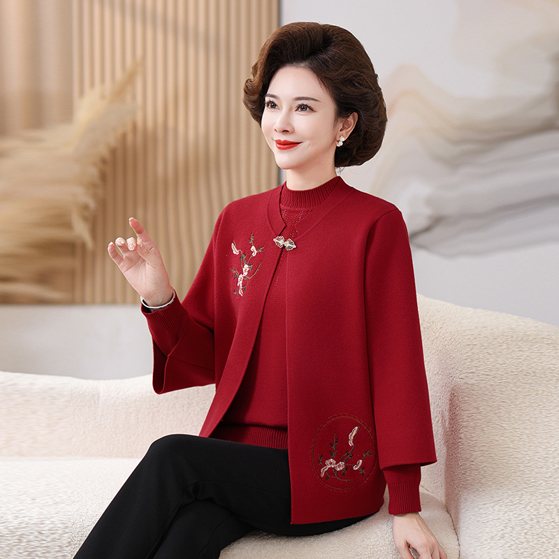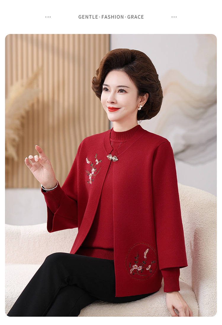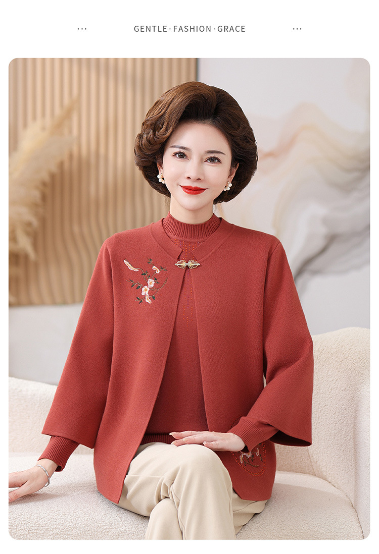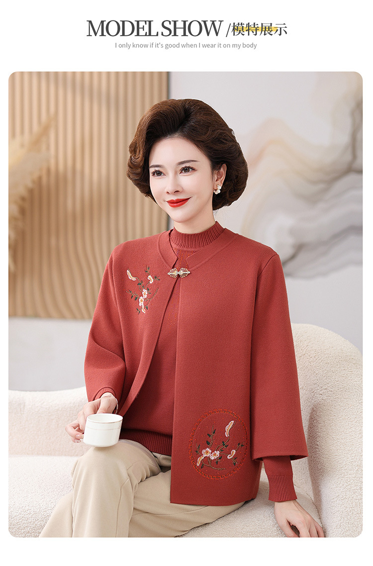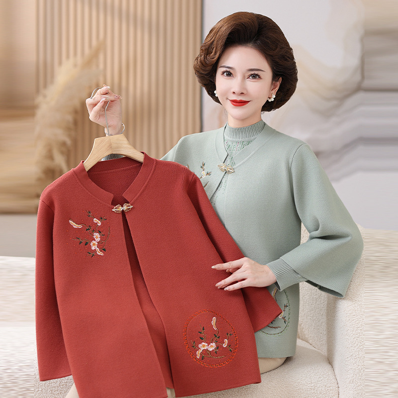 Новая коллекция весенне-осенней одежды для женщин среднего возраста, стильный осенне-зимний кардиган, женский комплект из двух предметов, вязаные топы и жакеты для женщин среднего и старшего возраста.