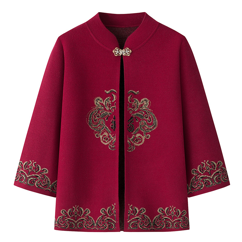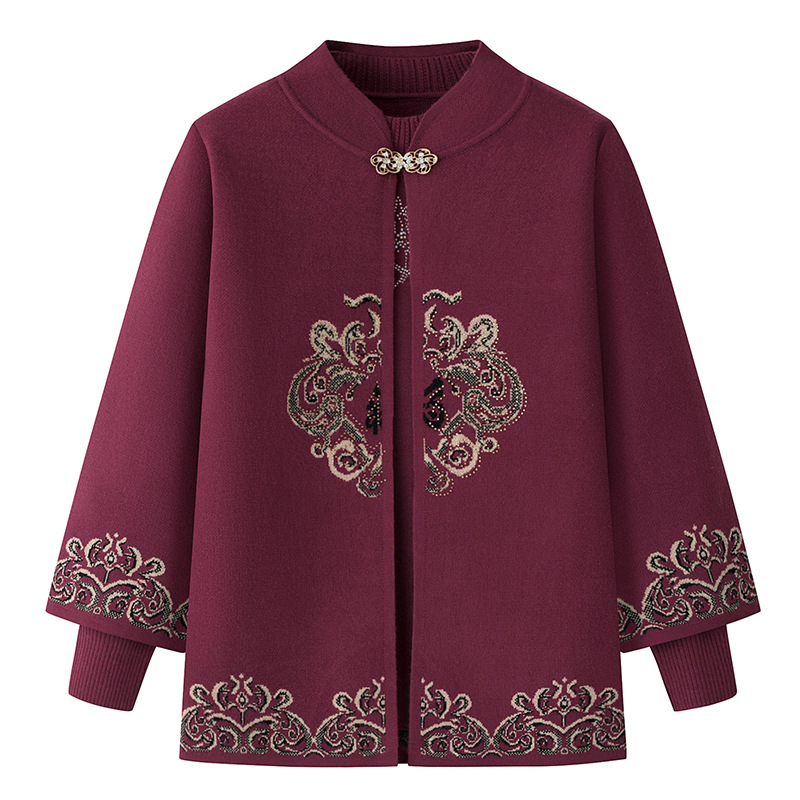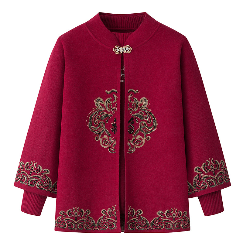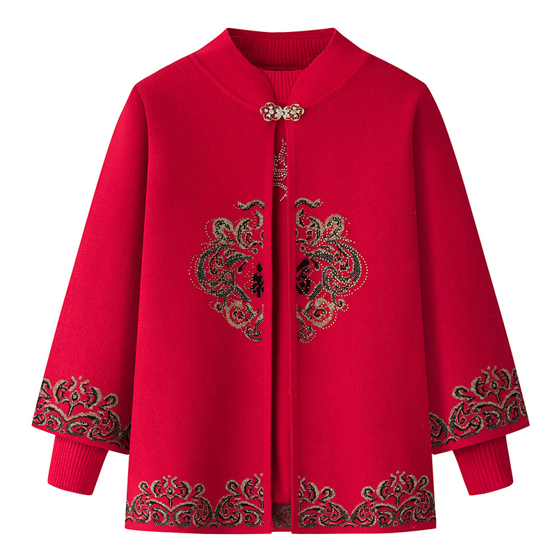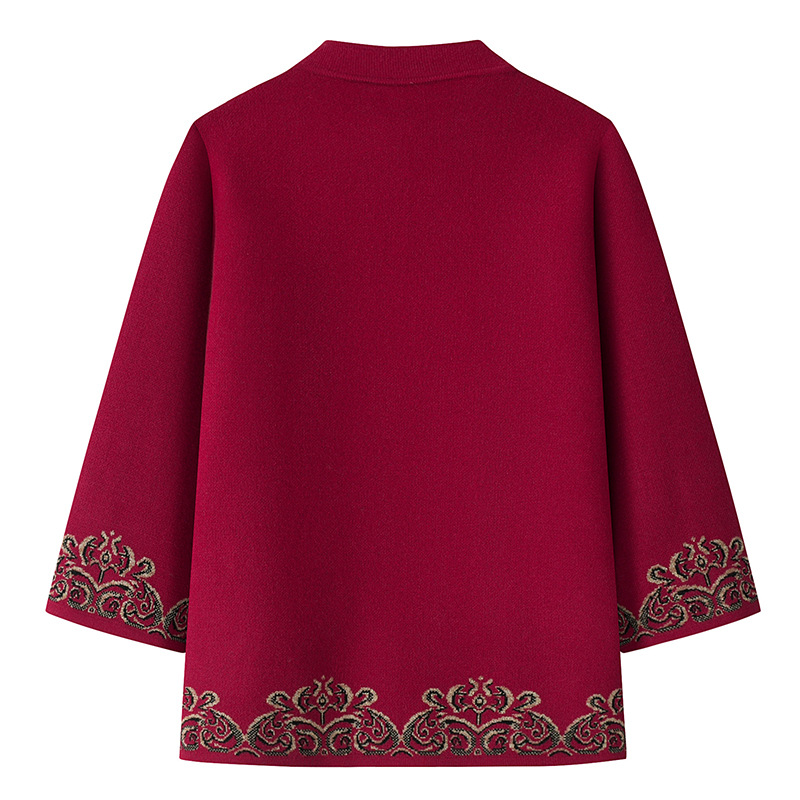 Люди среднего и пожилого возраста весной и осенью новый иностранный вязаный свитер мама из двух частей красный праздничный топ бабушка костюм