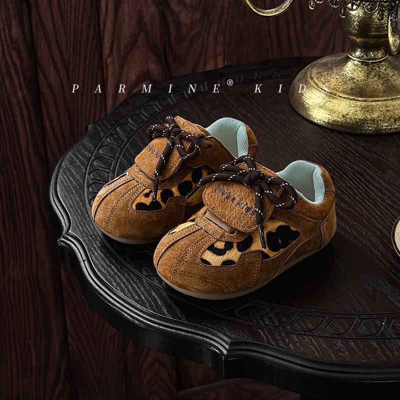 Настоящие кожаные детские туфли для девочек с леопардовым принтом, простые спортивные туфли, новый стиль весна-осень 2025, мягкая подошва, повседневная обувь для девочек.