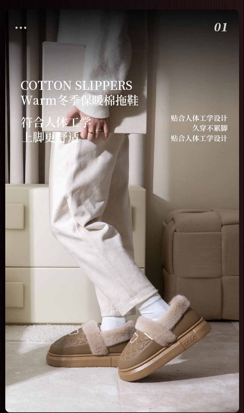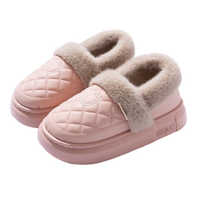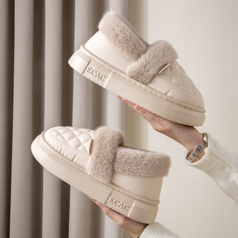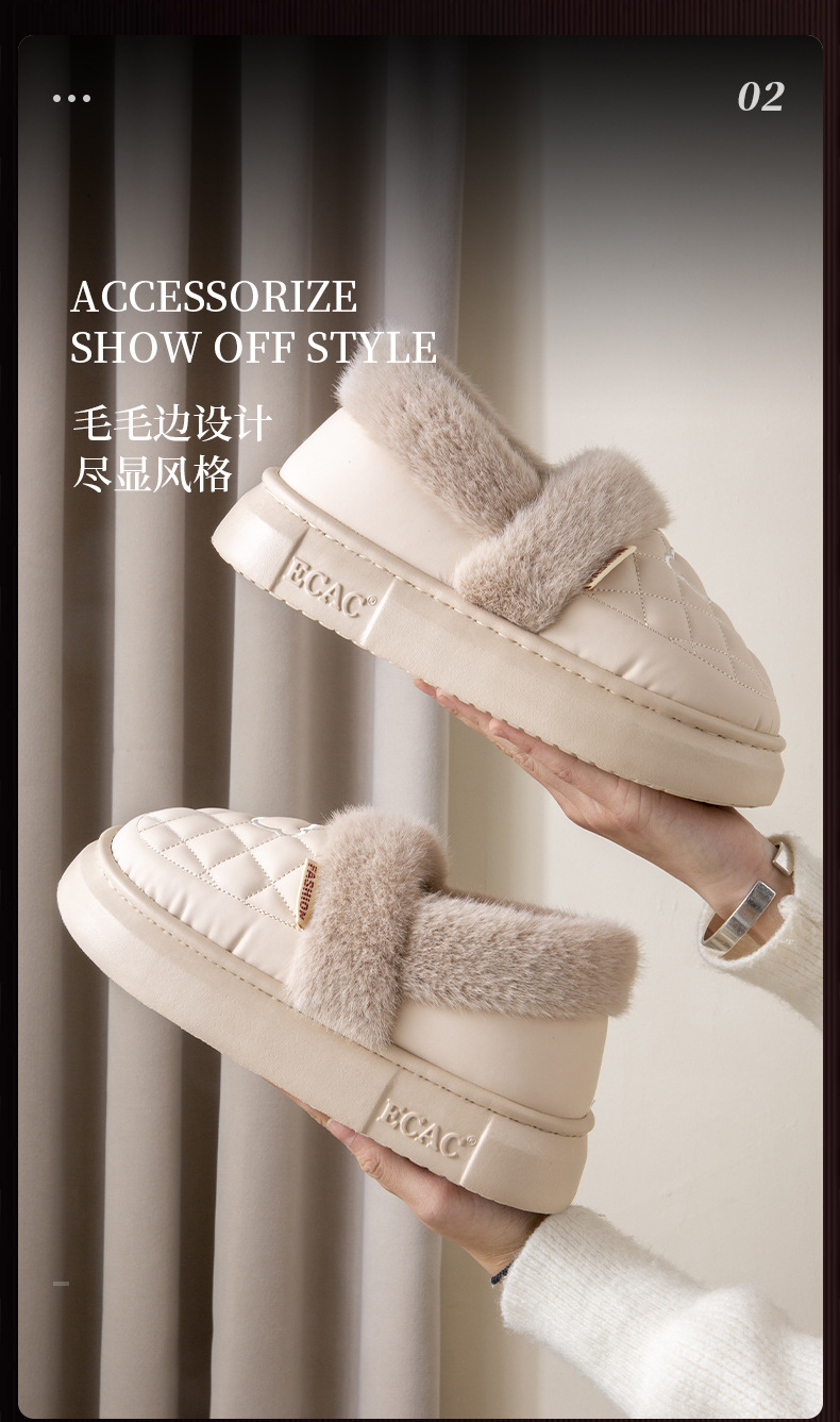Пара хлопчатобумажных шлепанцев женский 2024 новый осенний и зимний бархат утолщенные теплые водонепроницаемые меховые воротники и туфли