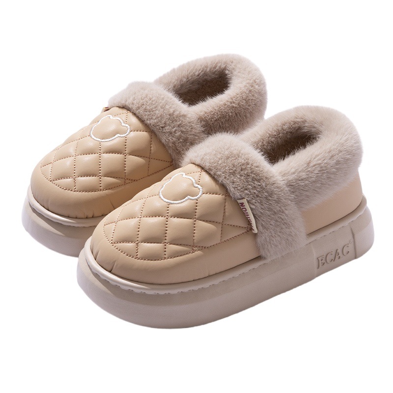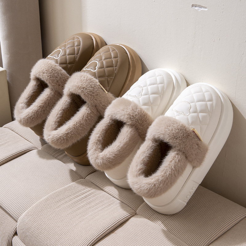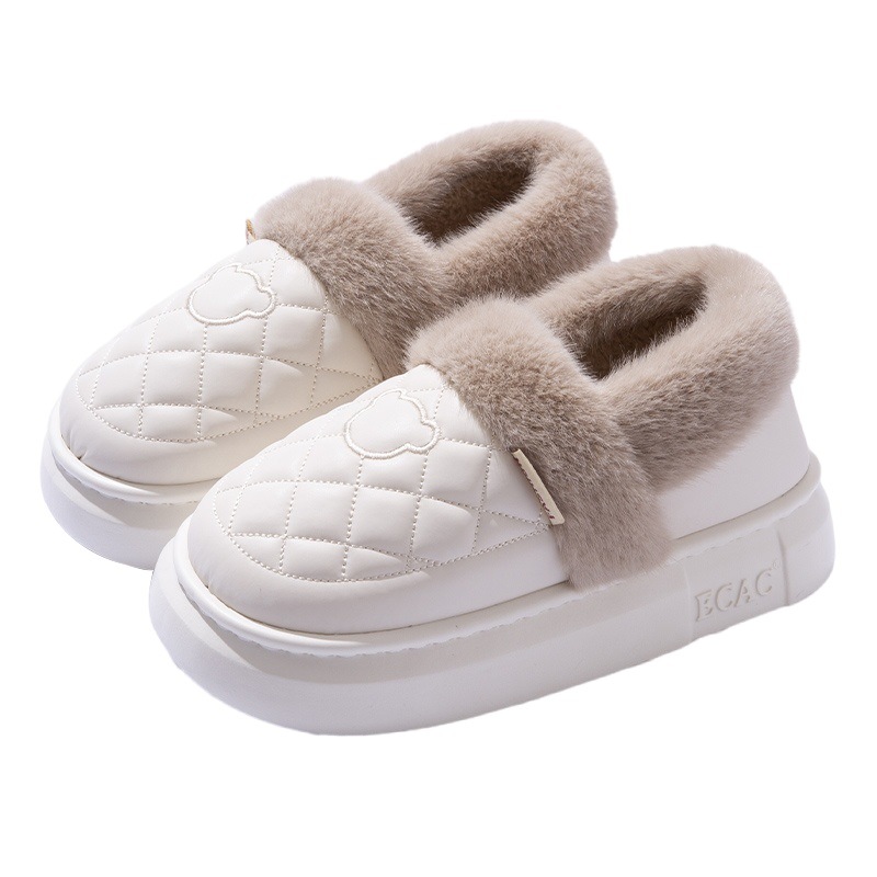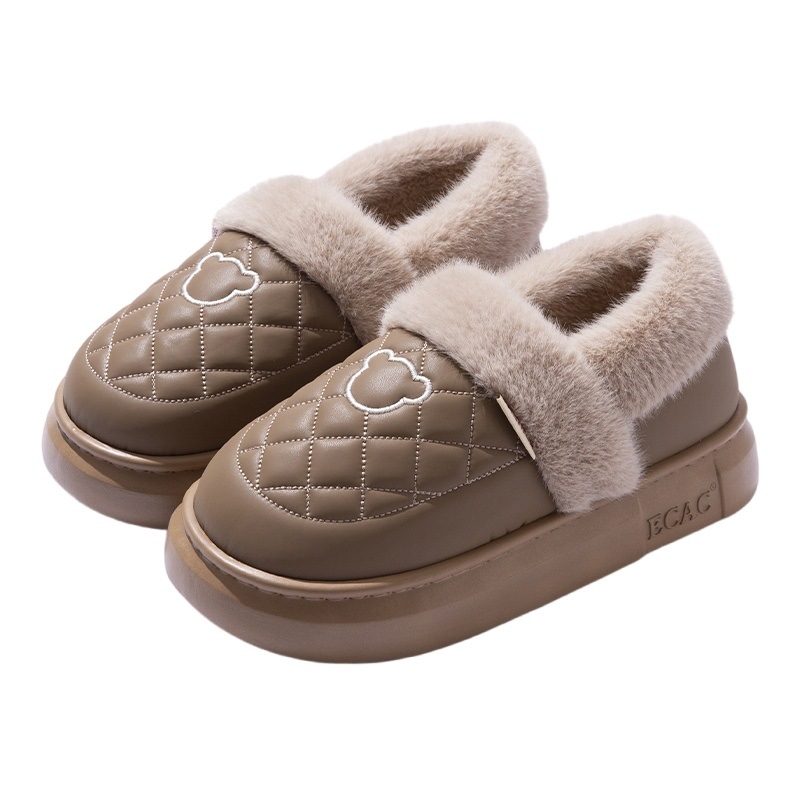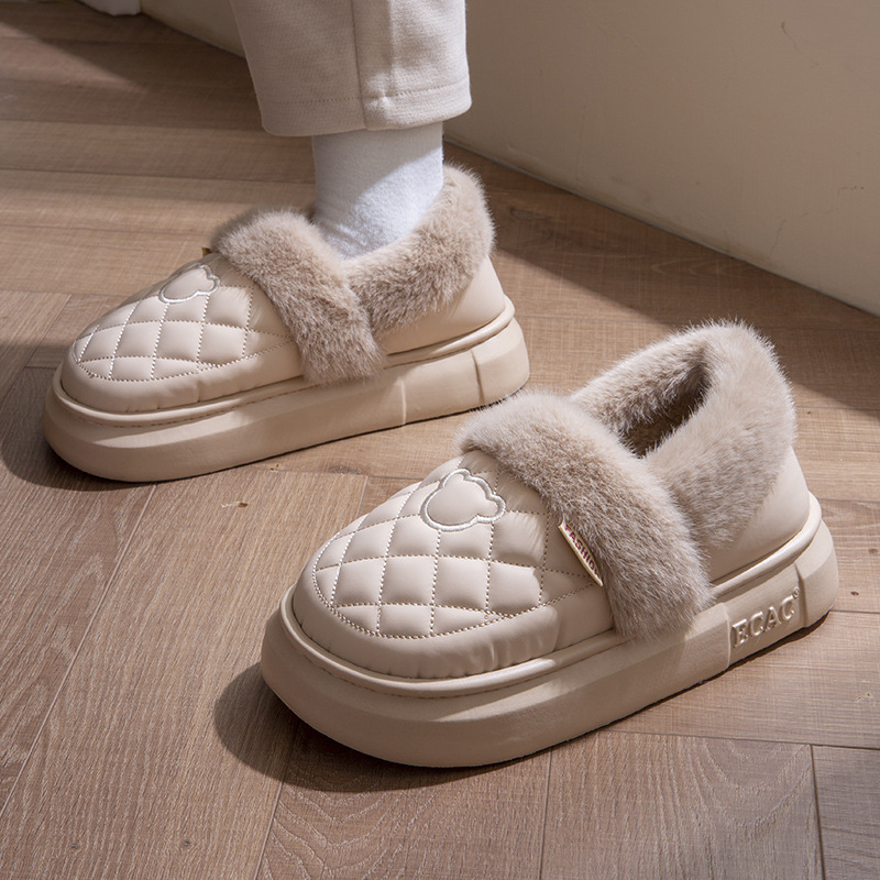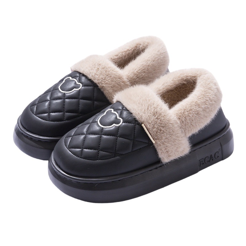 Пара хлопчатобумажных шлепанцев женский 2024 новый осенний и зимний бархат утолщенные теплые водонепроницаемые меховые воротники и туфли