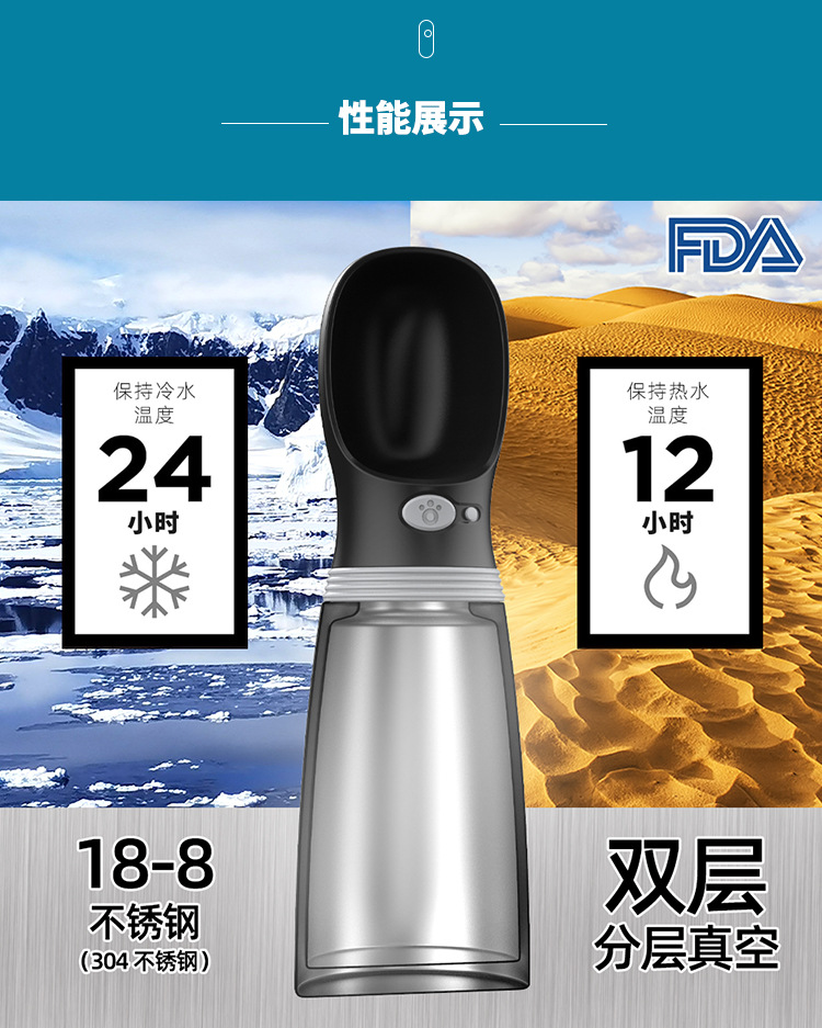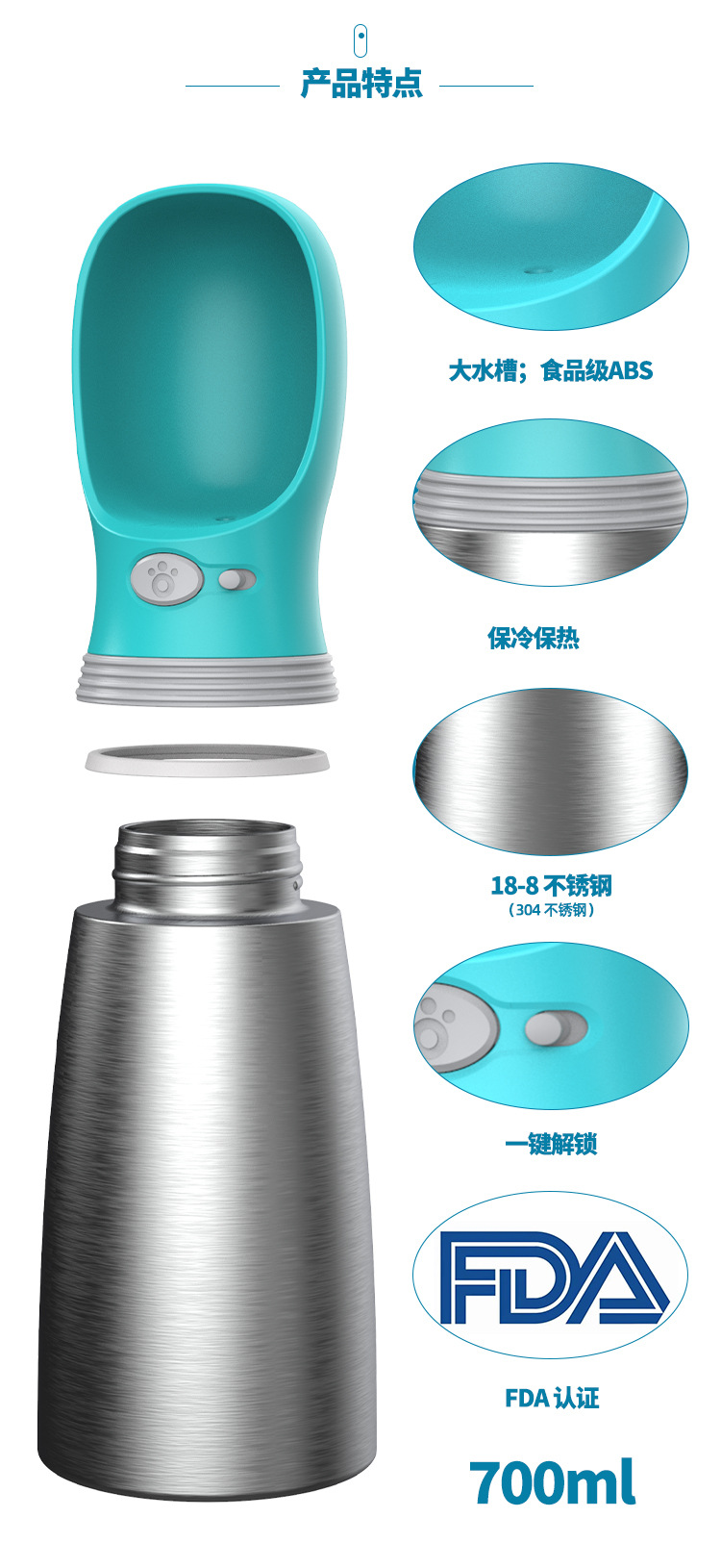 Amazon Pet Cup Двойные слои из нержавеющей стали 304 собака выходит портативный стакан воды на открытом воздухе бутылка для воды