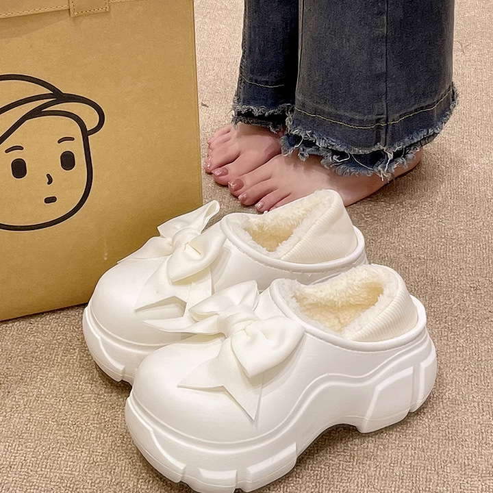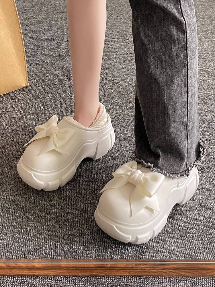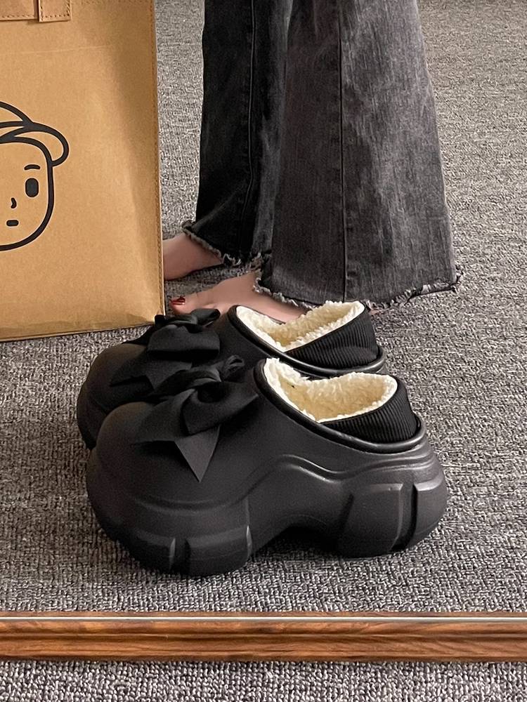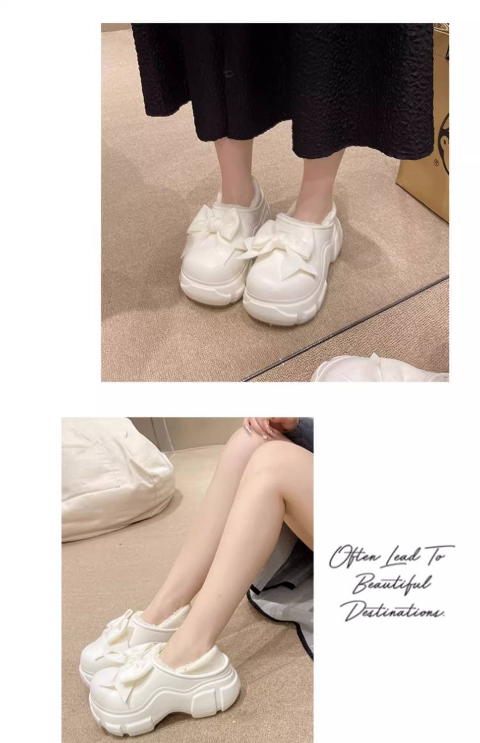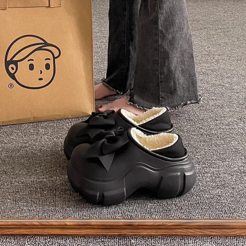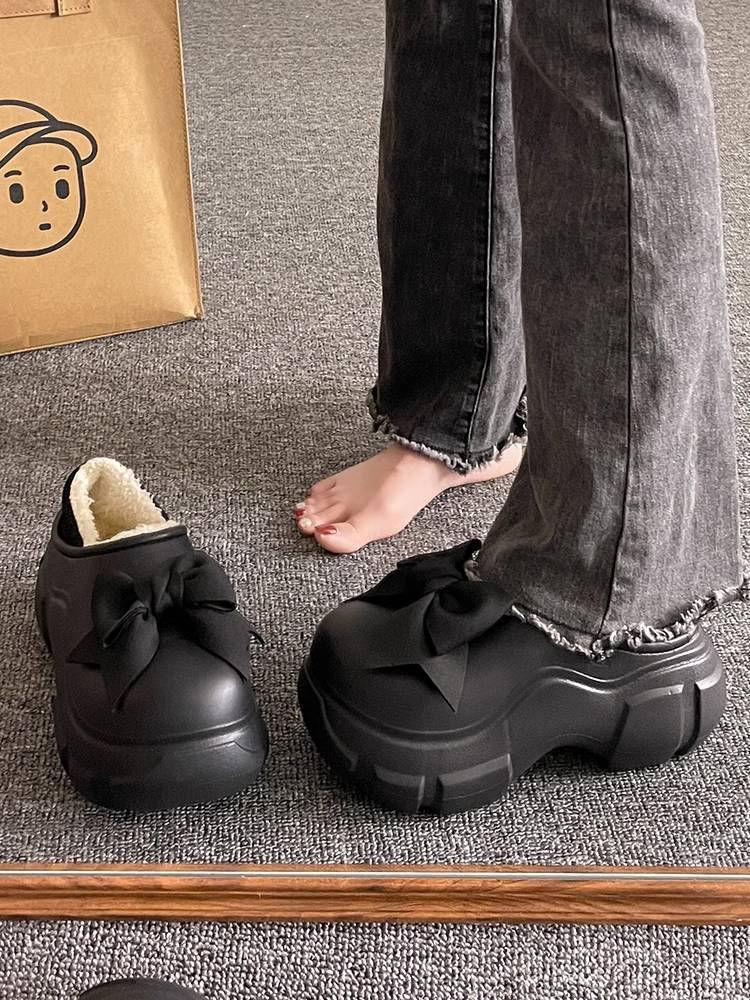 Модные и универсальные водонепроницаемые и нескользящие новые хлопковые туфли 2025 года с бантом для женщин, уличная домашняя и уличная одежда на толстой подошве с плюшем