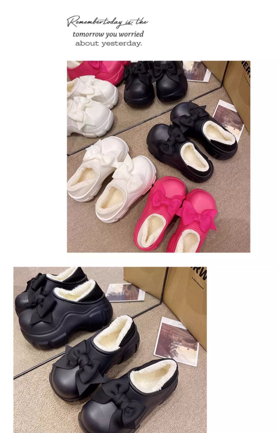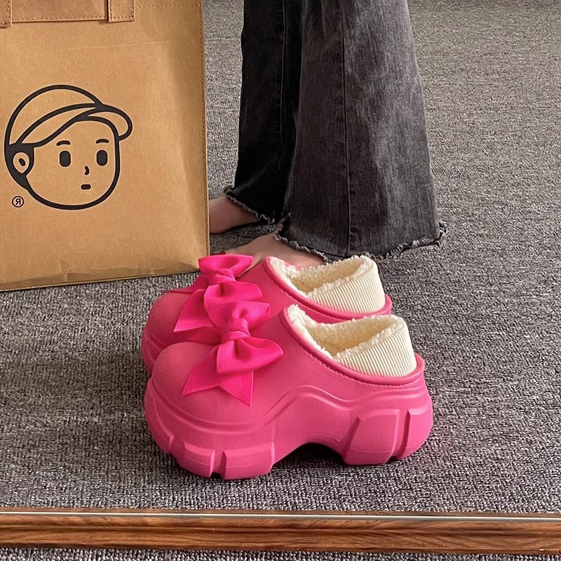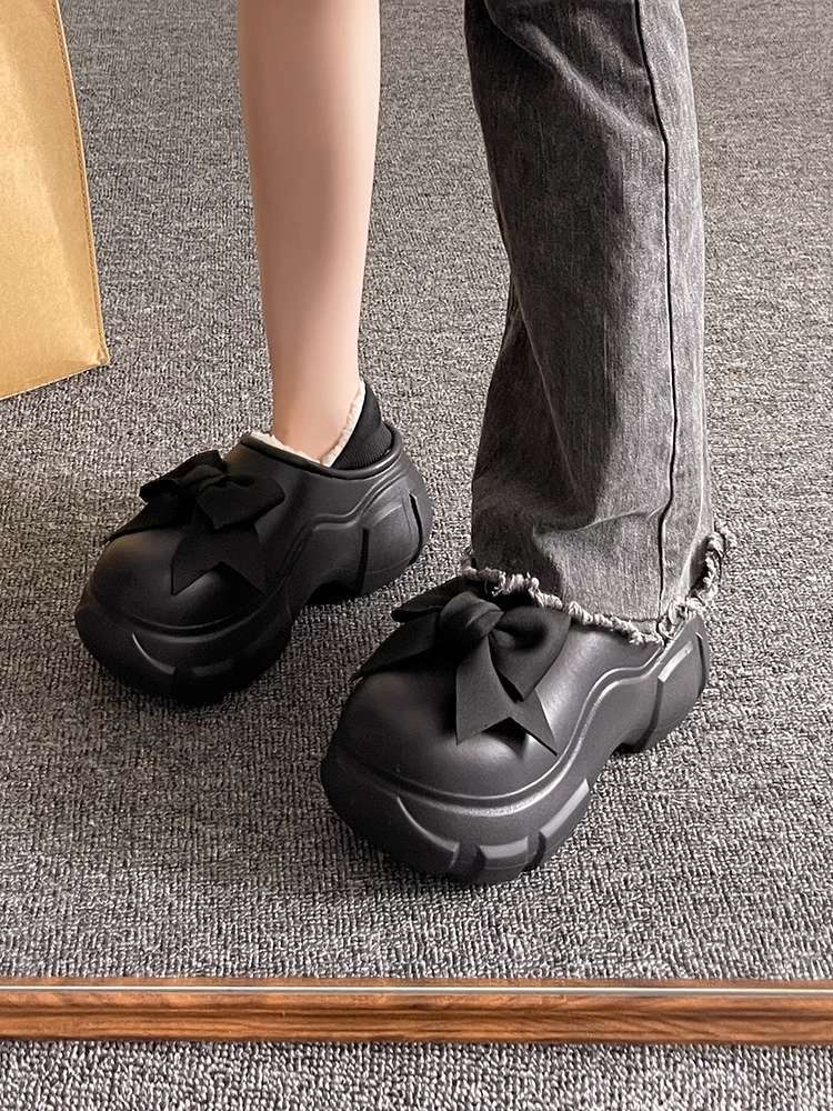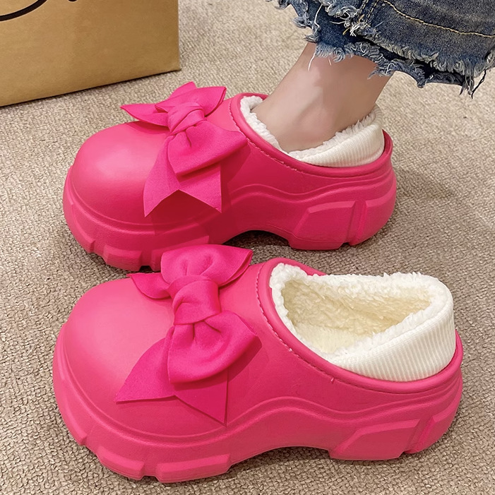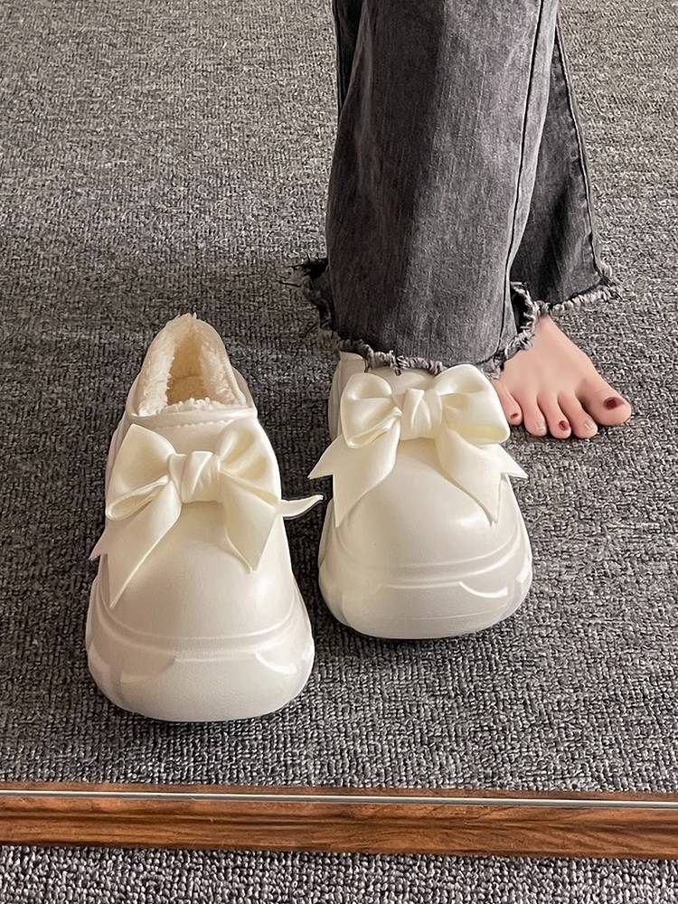 Модные и универсальные водонепроницаемые и нескользящие новые хлопковые туфли 2025 года с бантом для женщин, уличная домашняя и уличная одежда на толстой подошве с плюшем