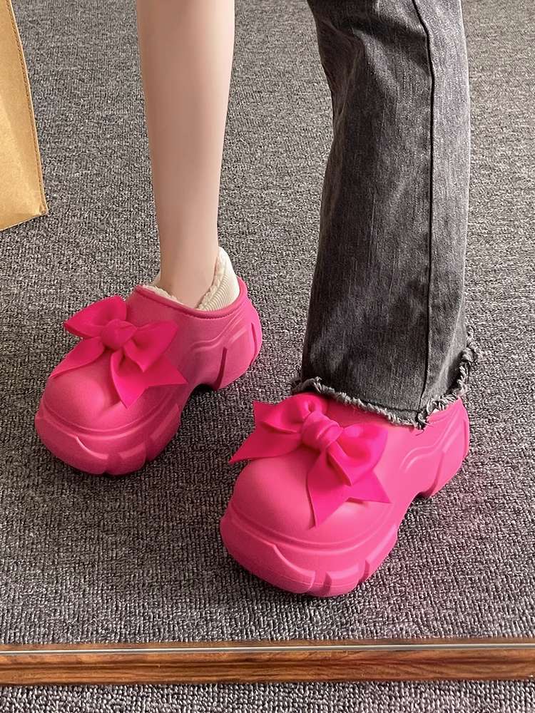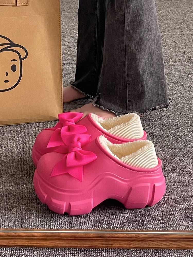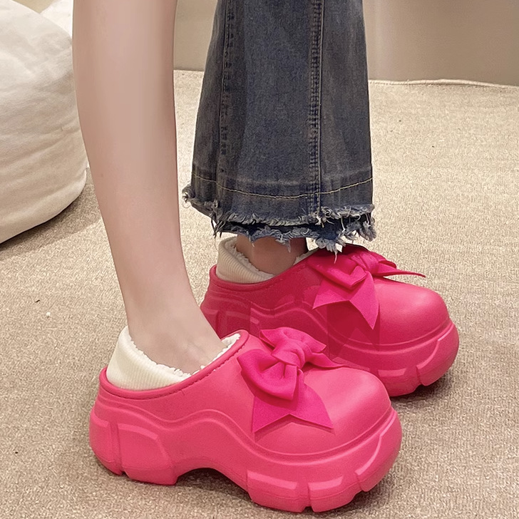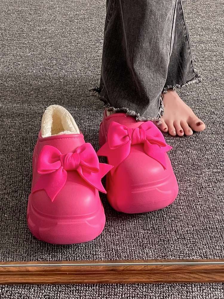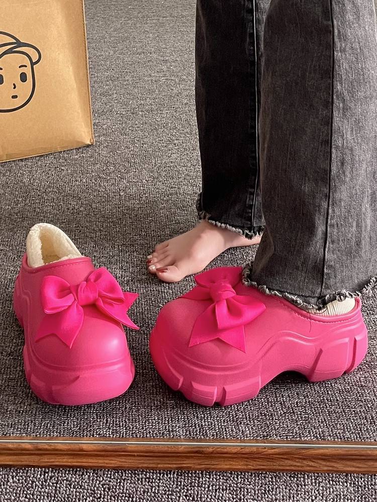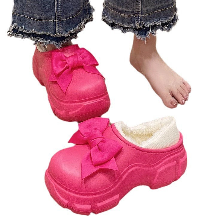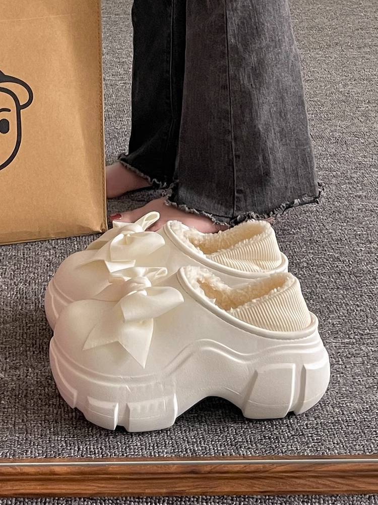 Модные и универсальные водонепроницаемые и нескользящие новые хлопковые туфли 2025 года с бантом для женщин, уличная домашняя и уличная одежда на толстой подошве с плюшем