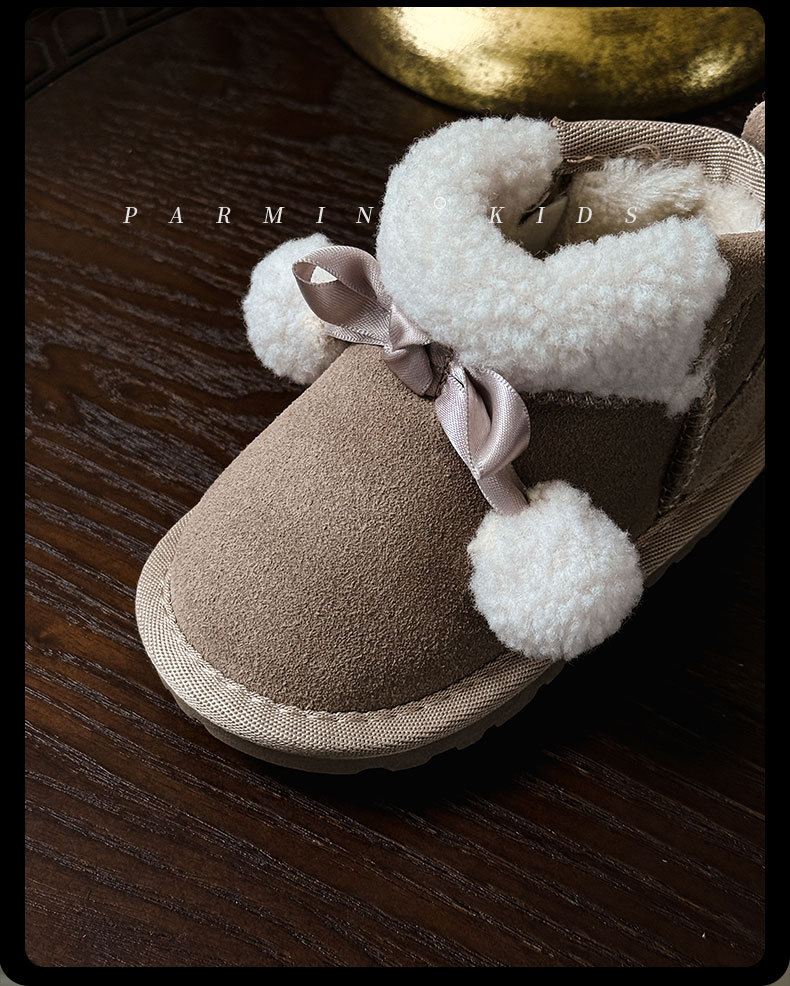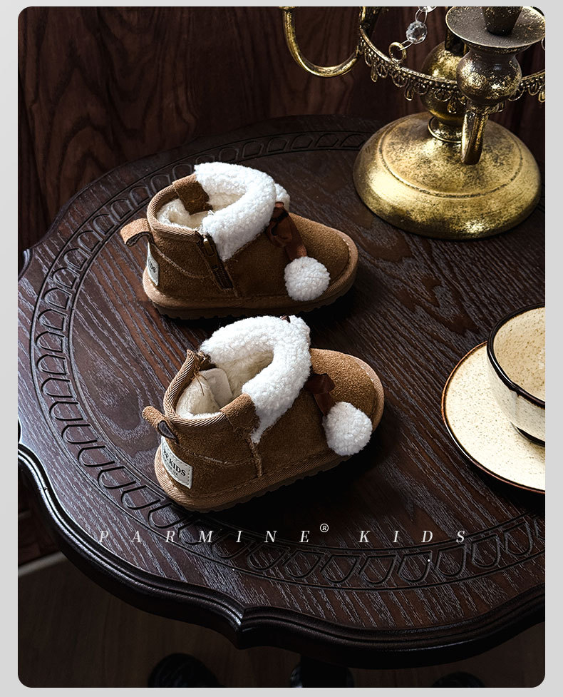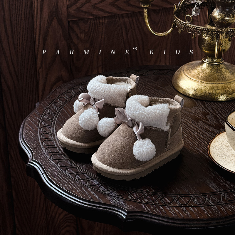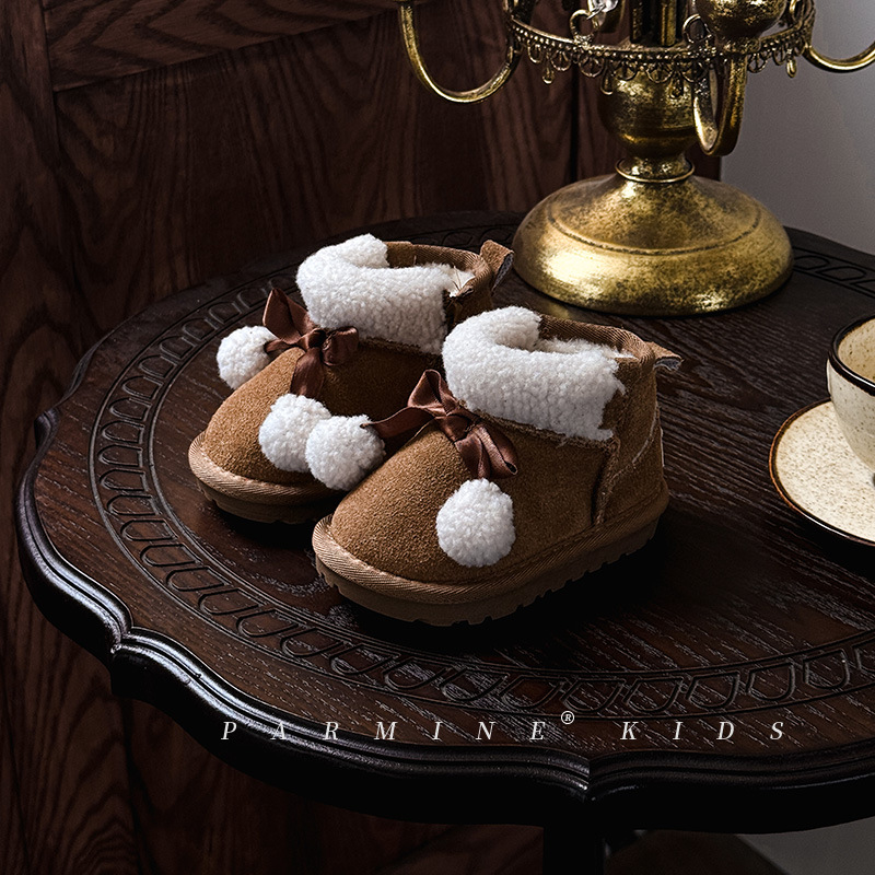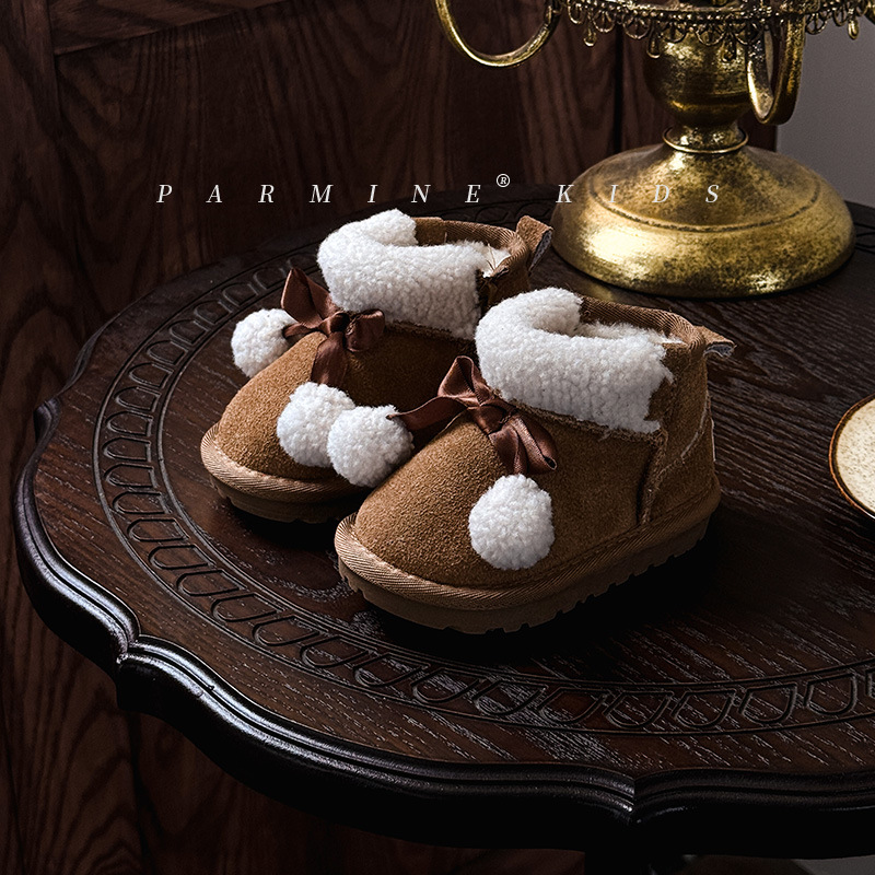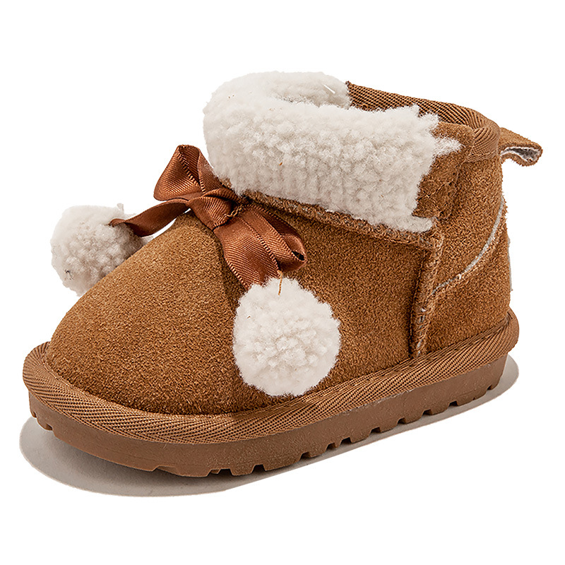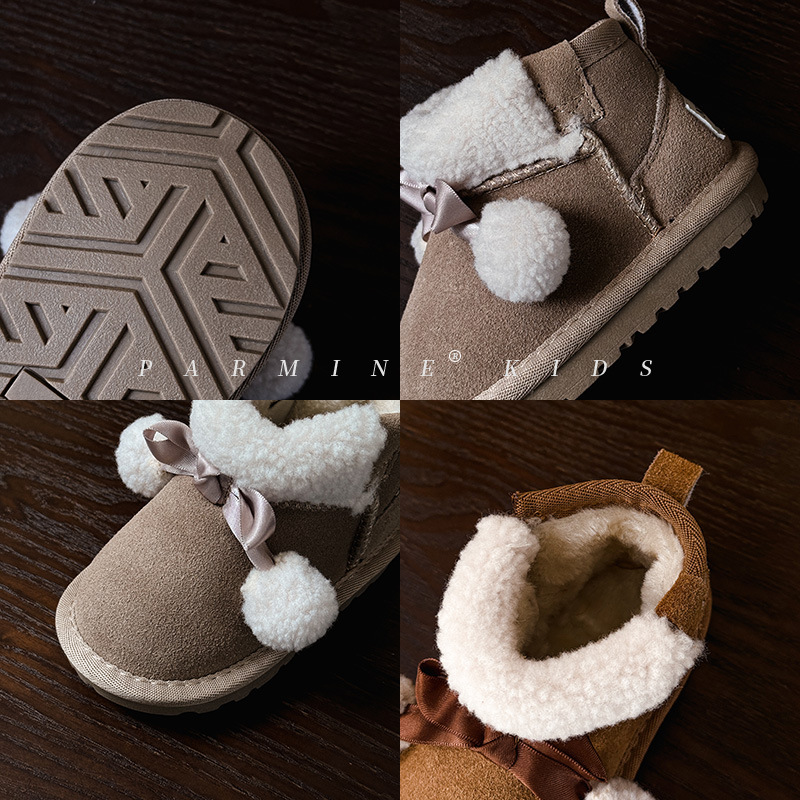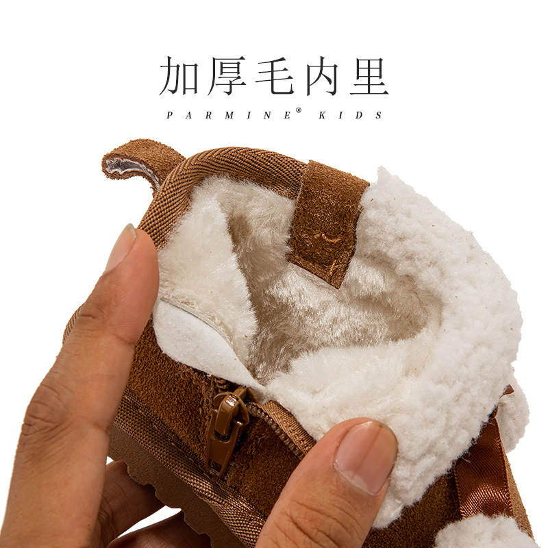 Кожаные детские хлопковые сапоги утолщенные теплые снежные сапоги