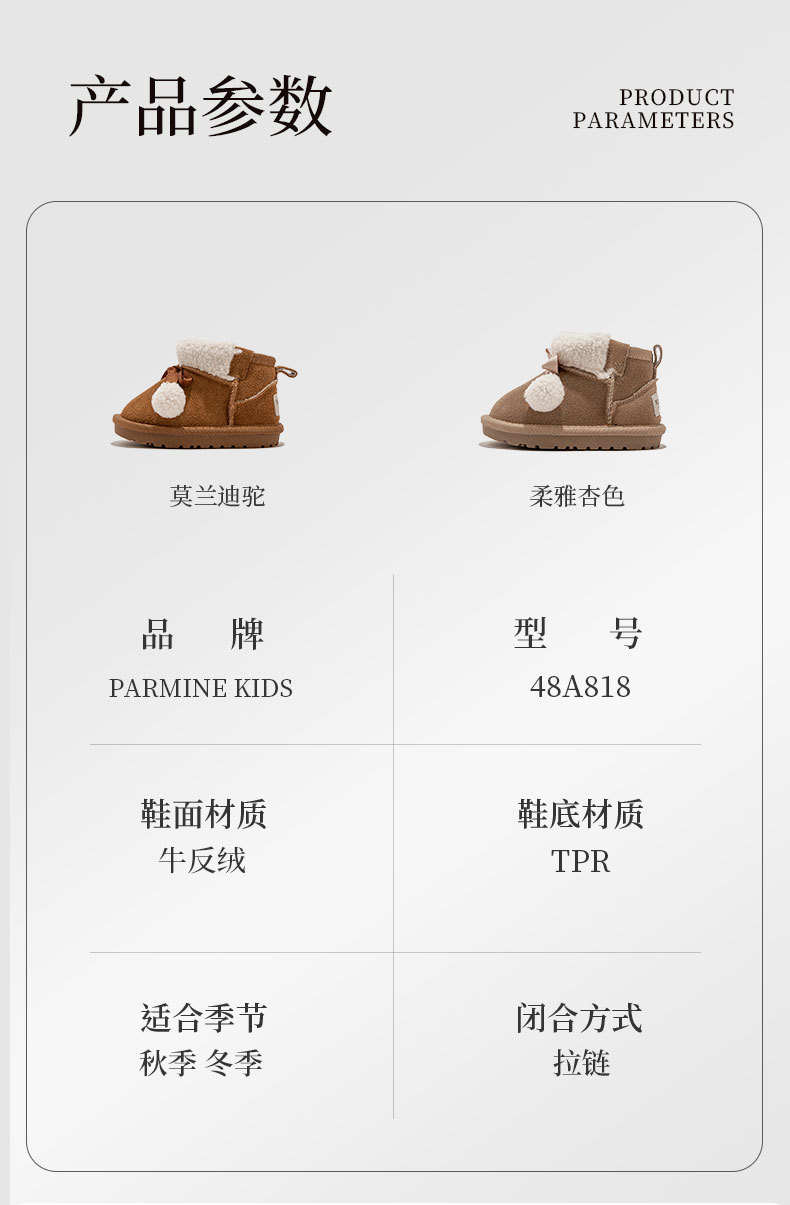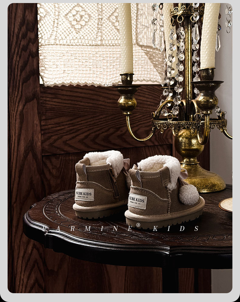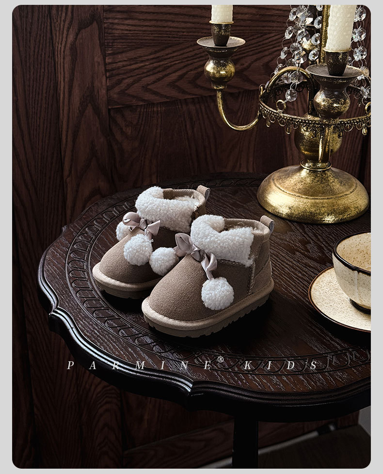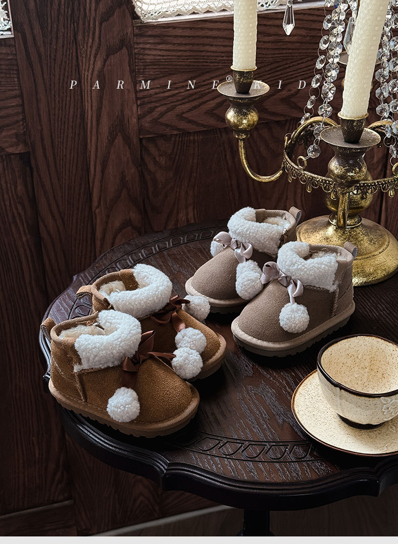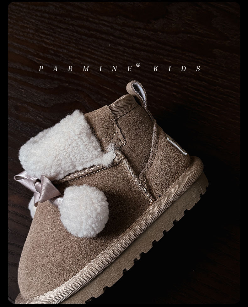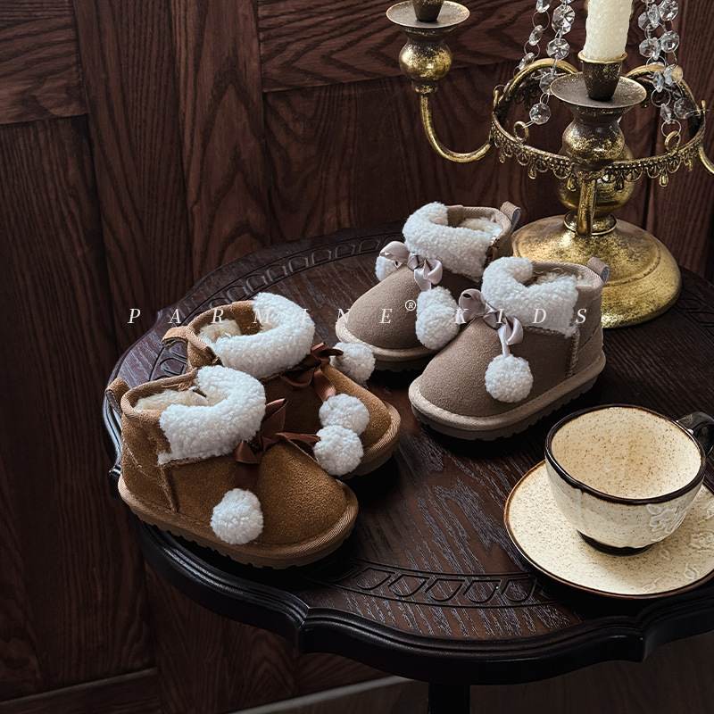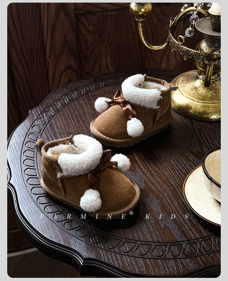 Кожаные детские хлопковые сапоги утолщенные теплые снежные сапоги