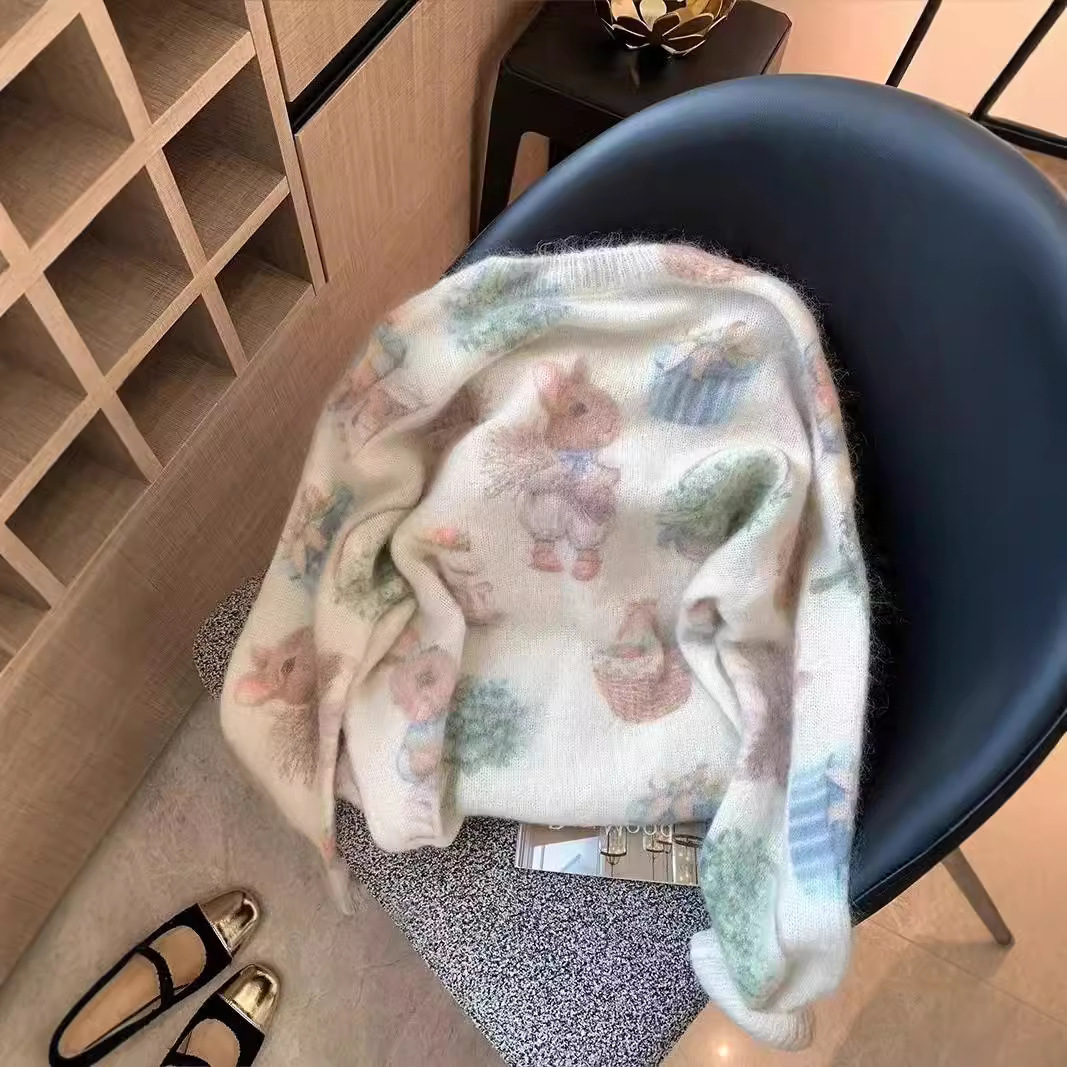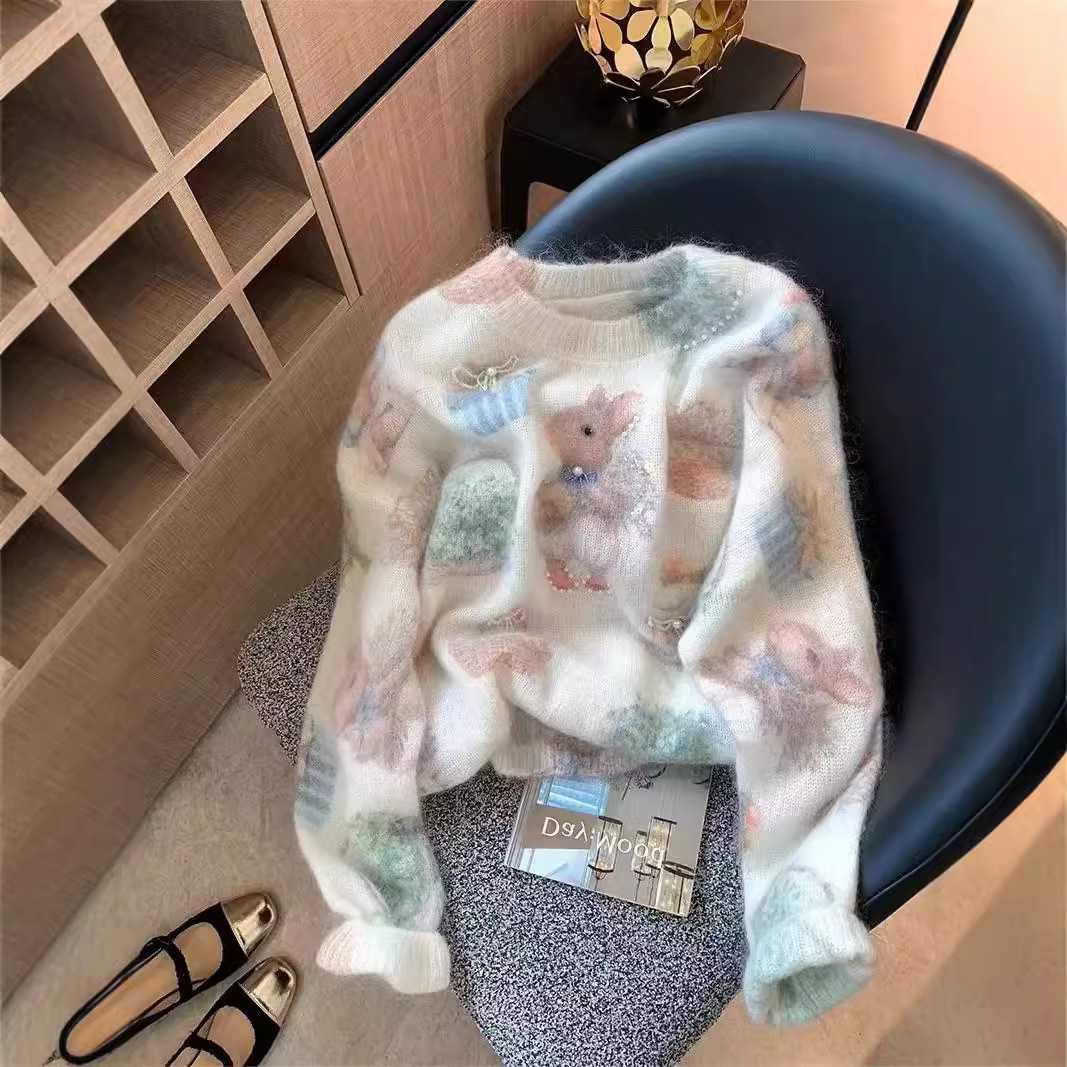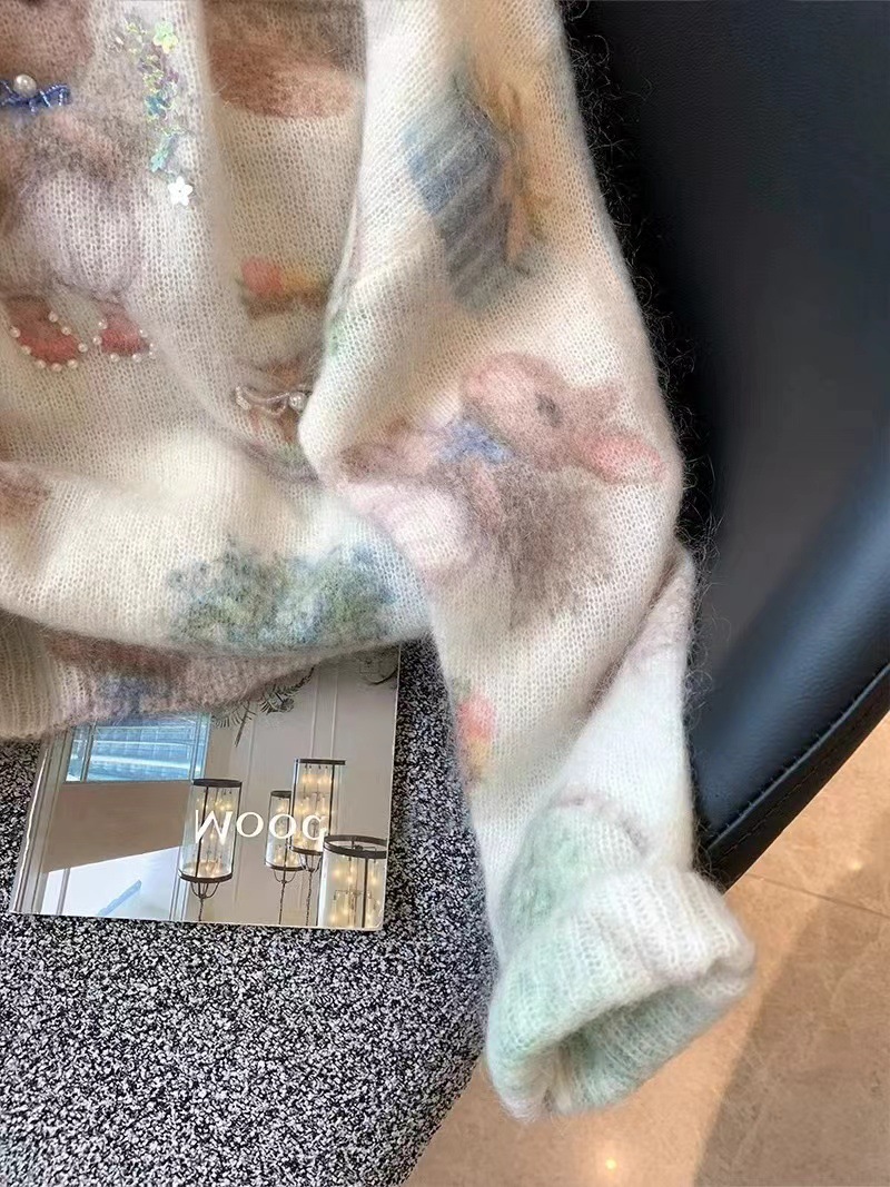 Маленький кролик с принтом бисером мохер свитер женский 2024 осень и зима