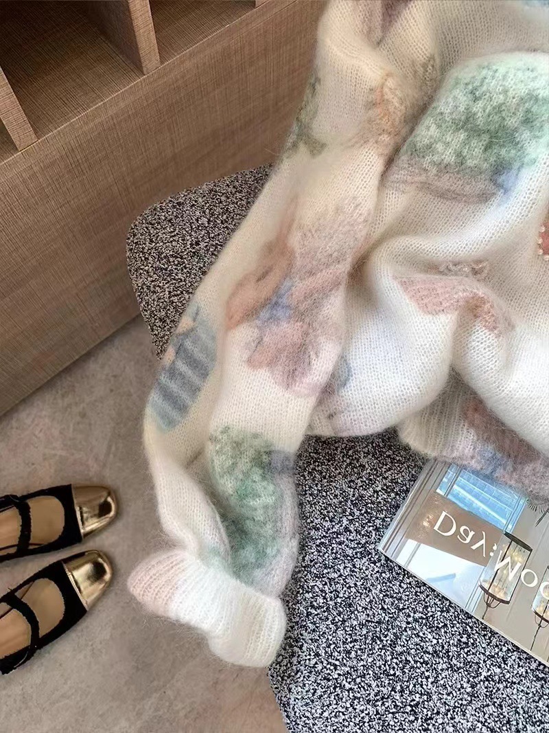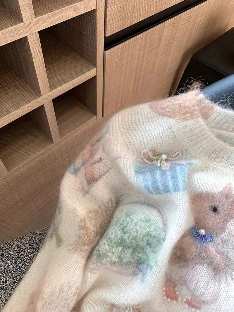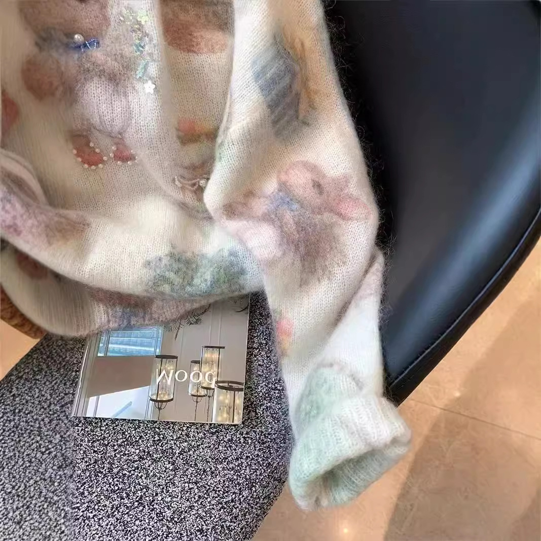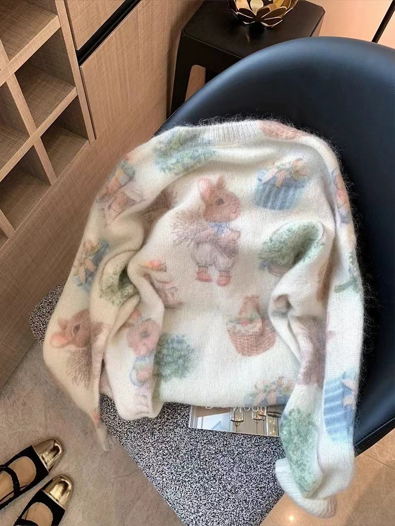 Маленький кролик с принтом бисером мохер свитер женский 2024 осень и зима