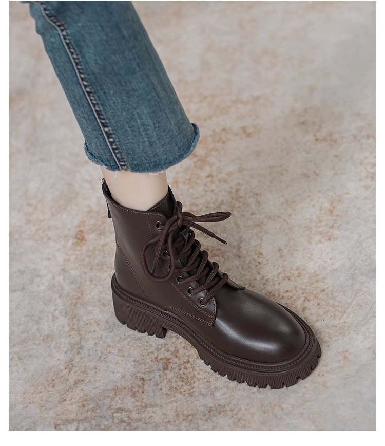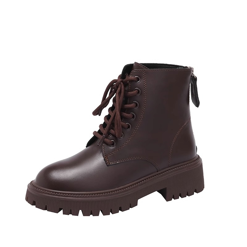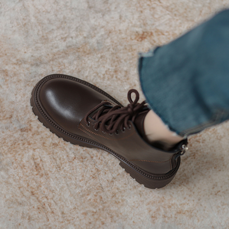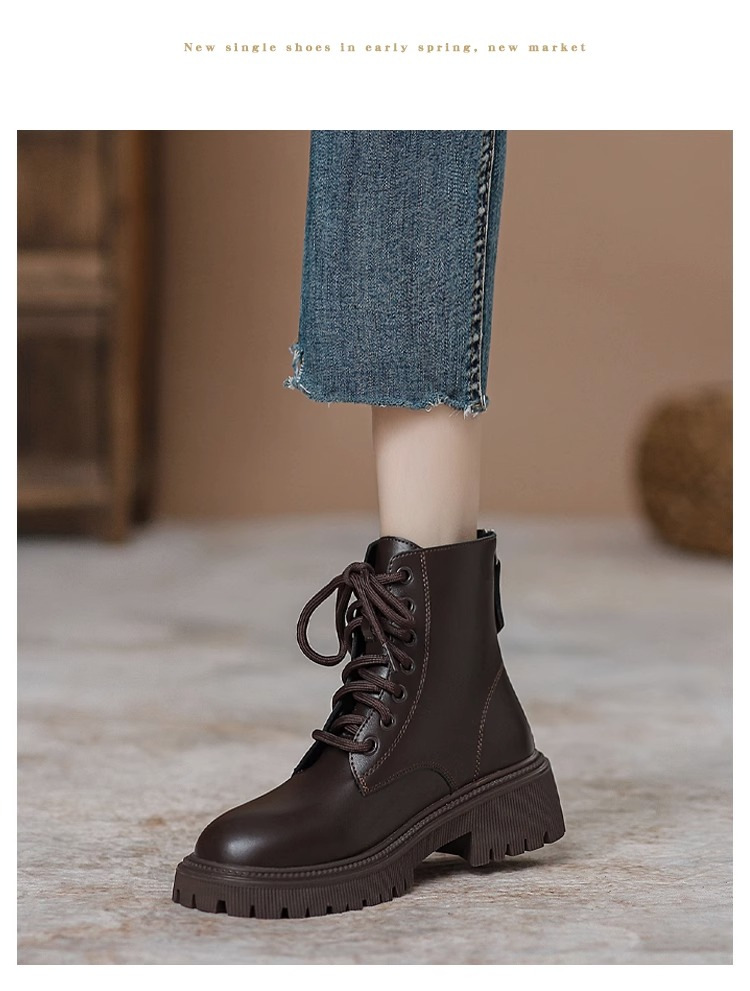 Женские ботинки 2025 года, новый британский стиль, маленькие, на толстой мягкой подошве, на флисовой подкладке, короткие, модные, осенне-зимние, одинарные ботинки