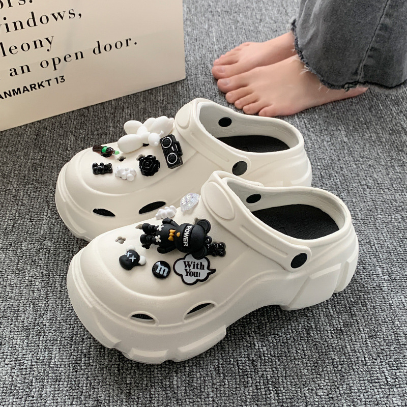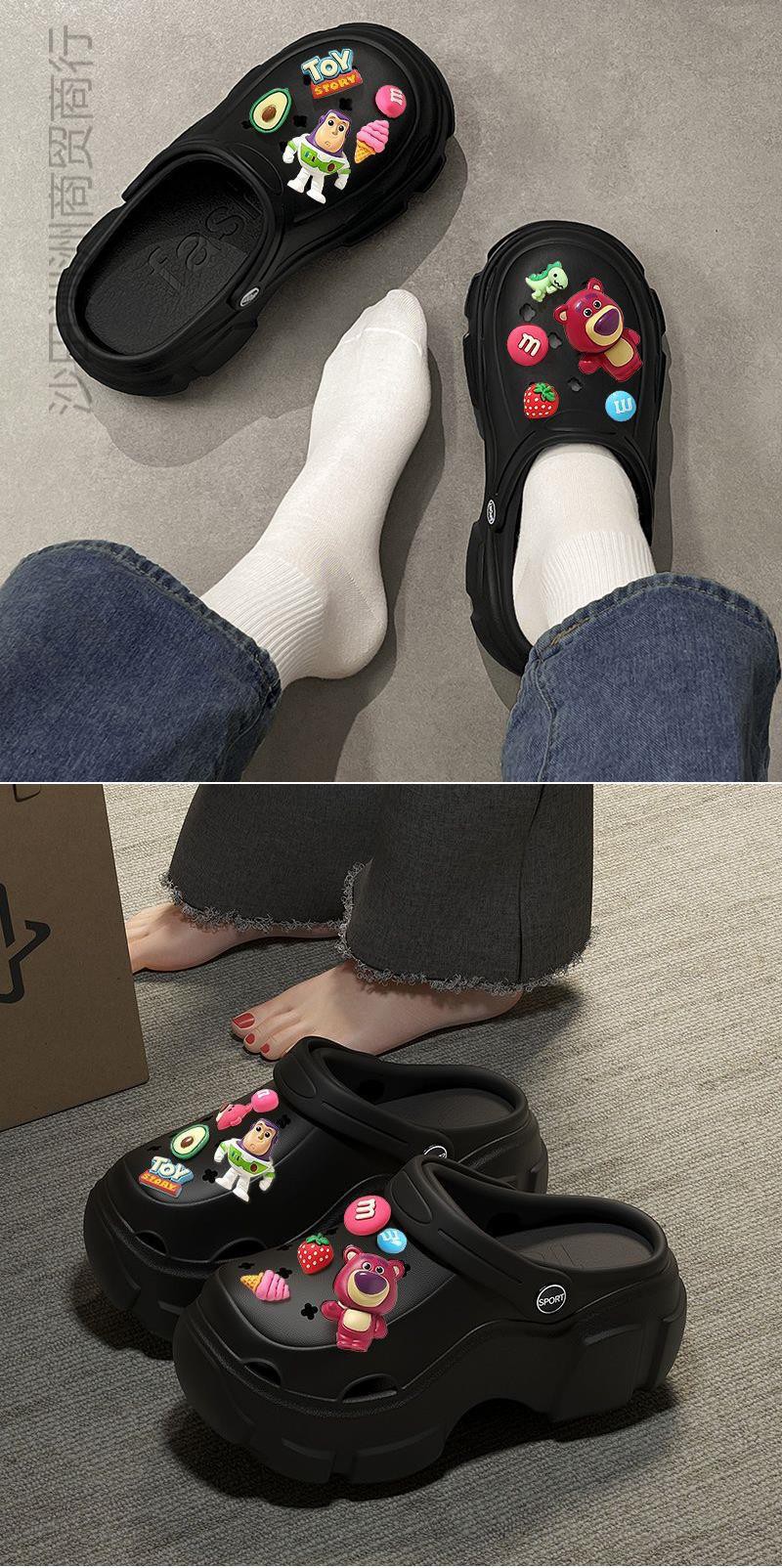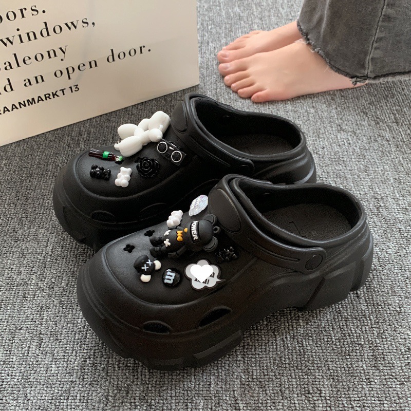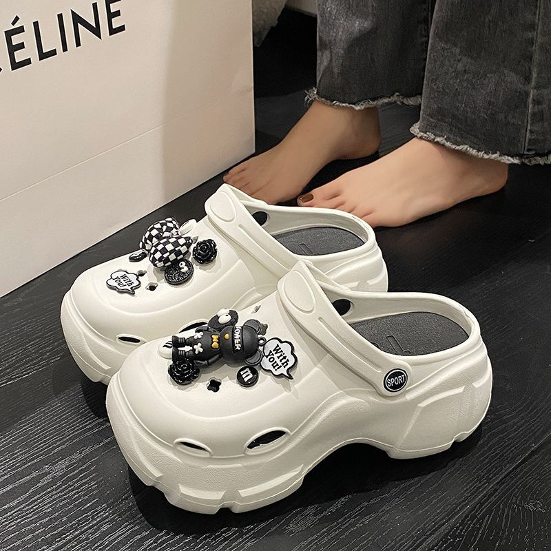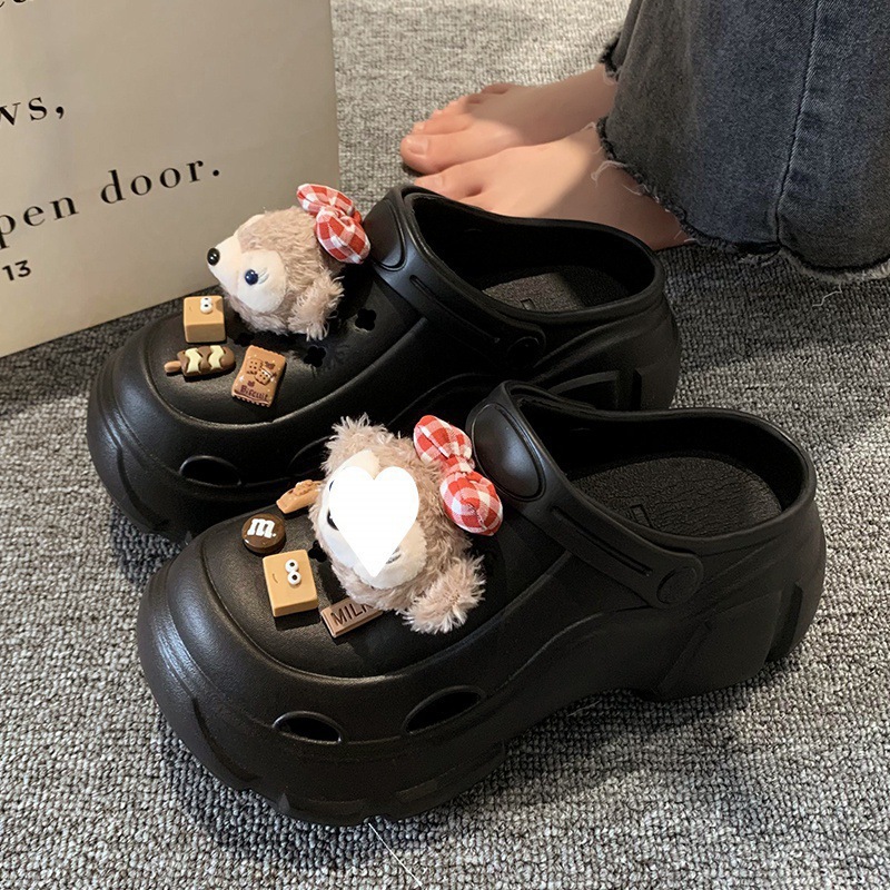 Универсальные женские сабо на толстой подошве для увеличения роста, летняя мода, уличная обувь Berry Bear, нескользящие, стильные, из ПВХ.