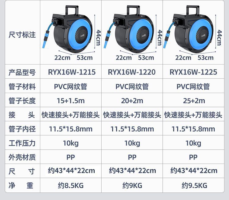 Общая длина барабана для воды для виллы составляет 16.5m (садовая толстая трубка); Общая длина барабана для воды для виллы составляет 22m (садовая толстая трубка); Общая длина барабана для воды для виллы составляет 27m (садовая толстая трубка)