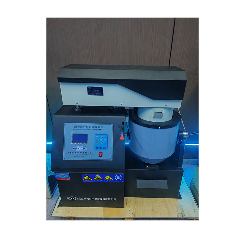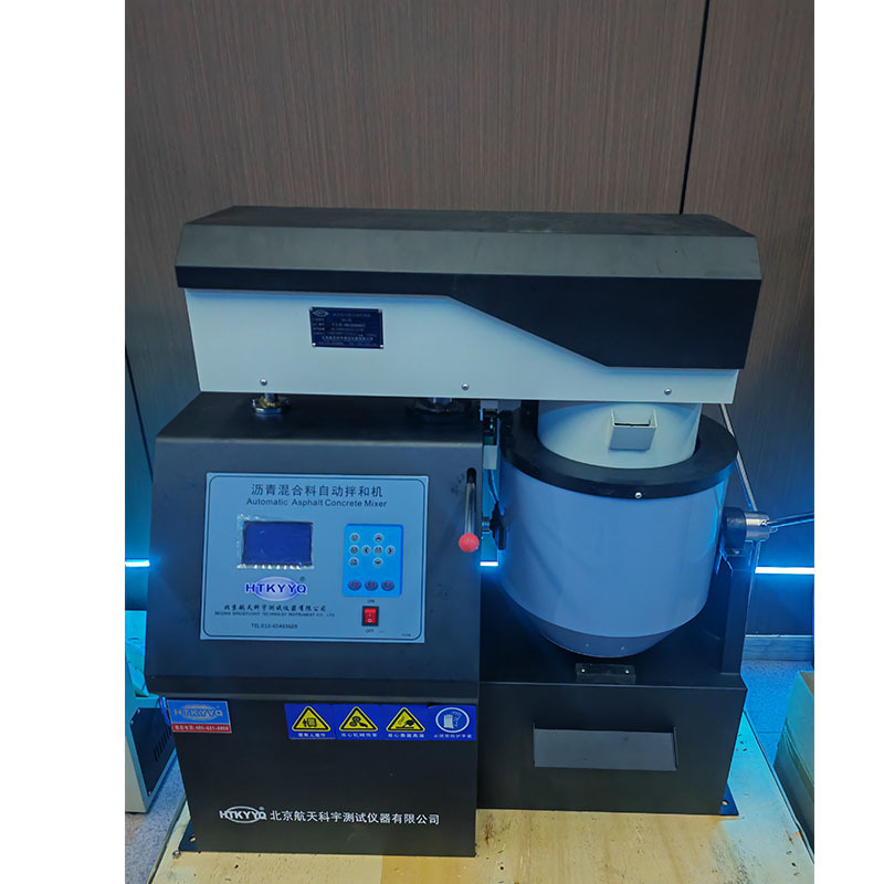 沥青混合料自动拌和机是制备沥青——砂石混合料或水泥——砂石混合料试样时必不可少的拌和机械。完全满足交通部标准JTGE20-2011“公路工程沥青及沥青混合料试验规程”的各项规定。目前它已被广泛地应用于公路系统的科研、施工和监理部门的实验室中。混合料自动拌和机由三大部分组成:加热锅、搅拌器和升降机构。加热锅温度从室温至250℃范围内任意设定,并自动控温。搅拌器由搅拌头、电机和搅拌桨组成。工作时,搅拌桨在锅内进行公转和自转,对混合料进行拌和,其搅拌时间由定时器控制。升降机构由电机、减速器、丝杠等部件组成。