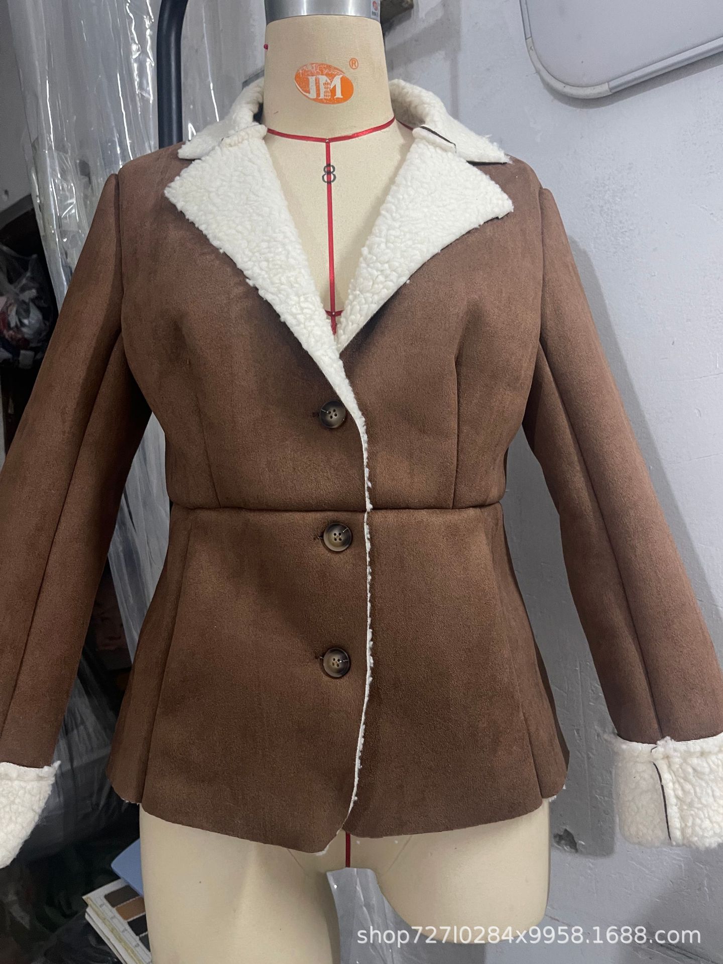 Новая демисезонная куртка-пальто из замши с меховой подкладкой и отложным воротником в винтажном стиле для защиты от холода, осень-зима 2024, для трансграничной торговли на Amazon