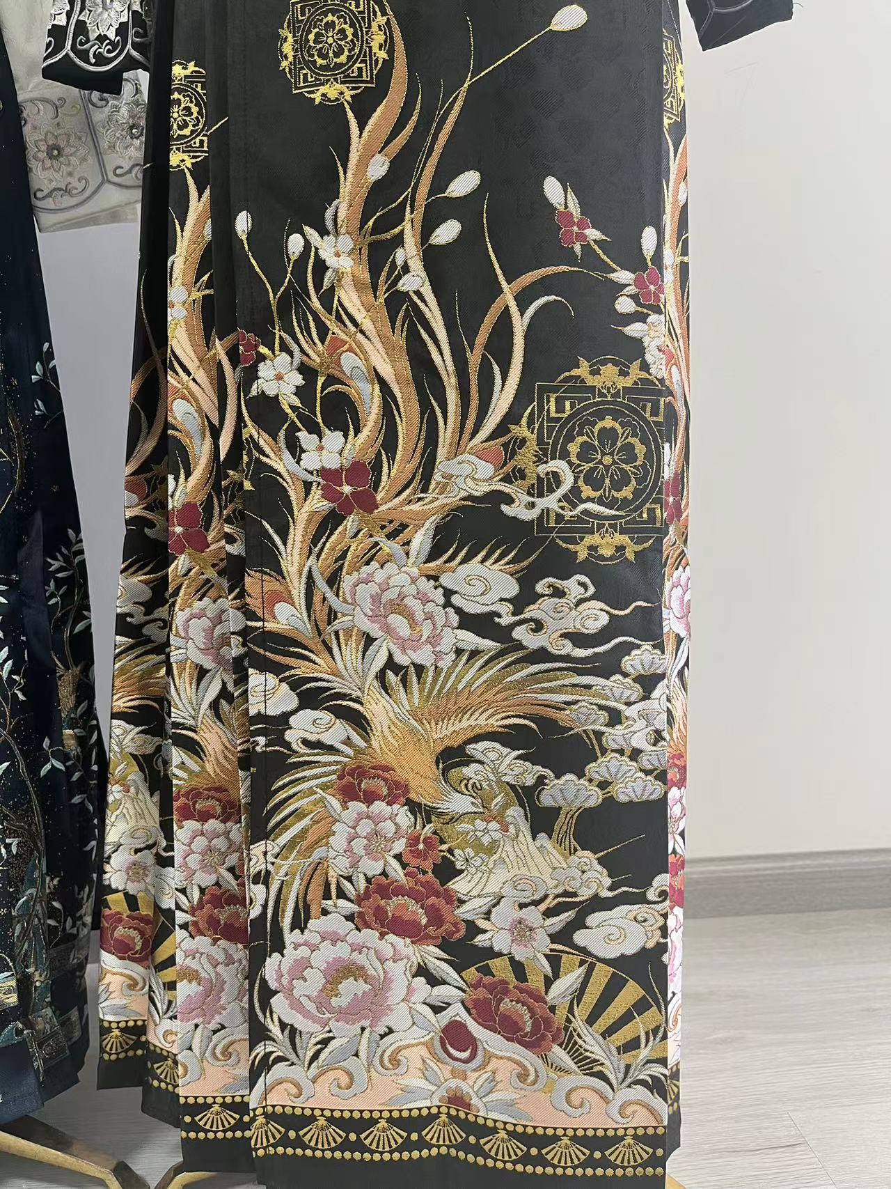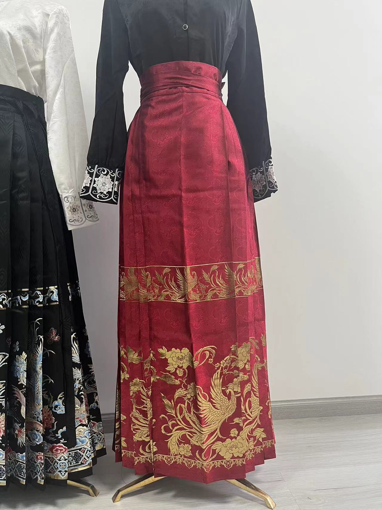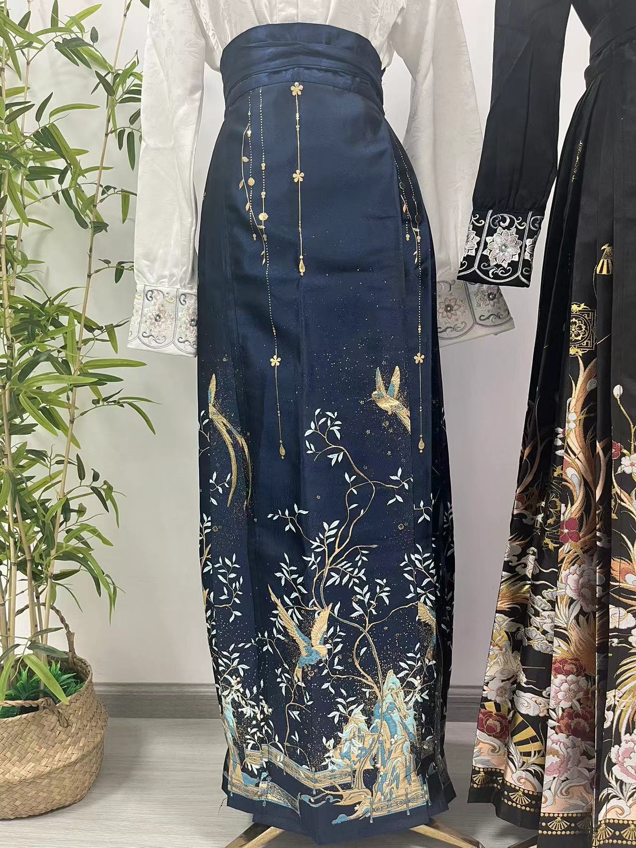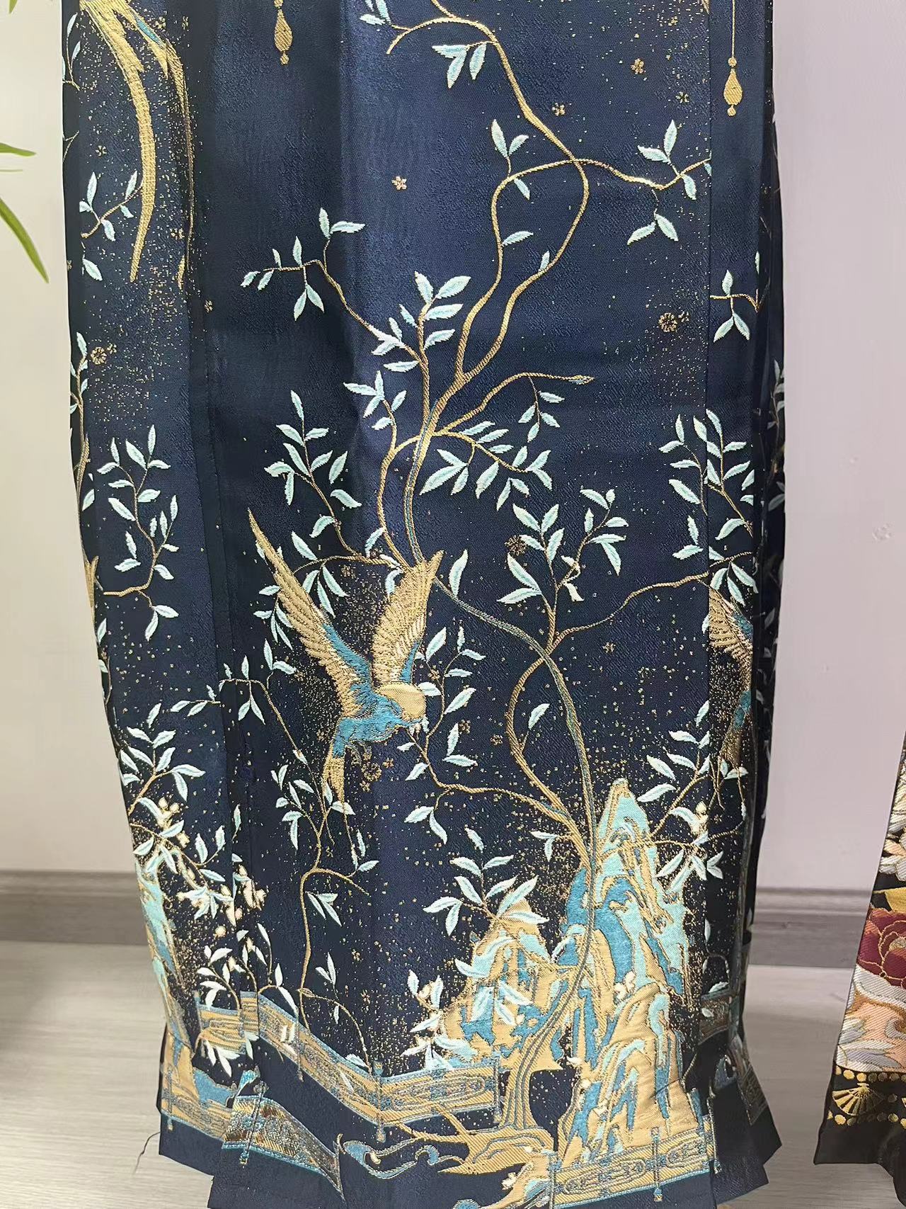 Ming конская юбка 2024 осень-зима новая атласная золотая жаккардовая женская юбка конская юбка без принта