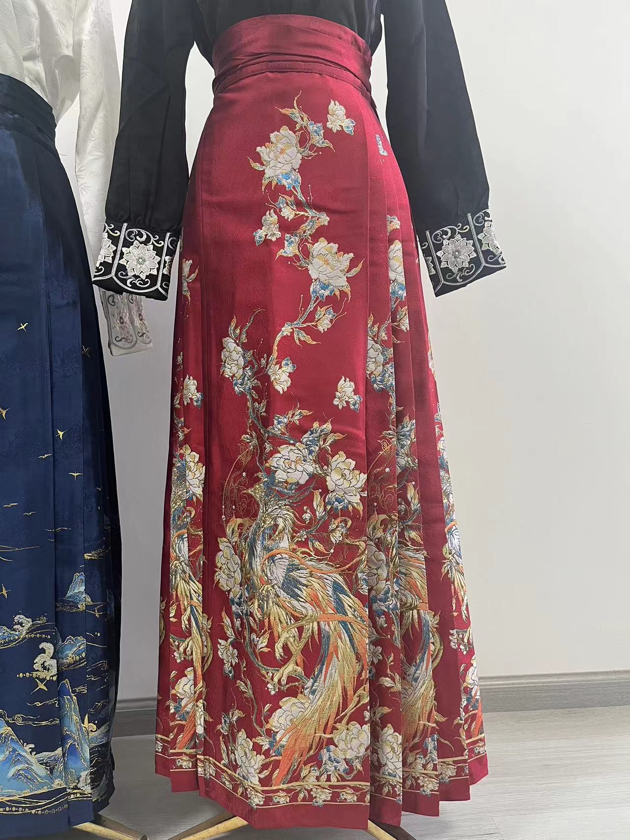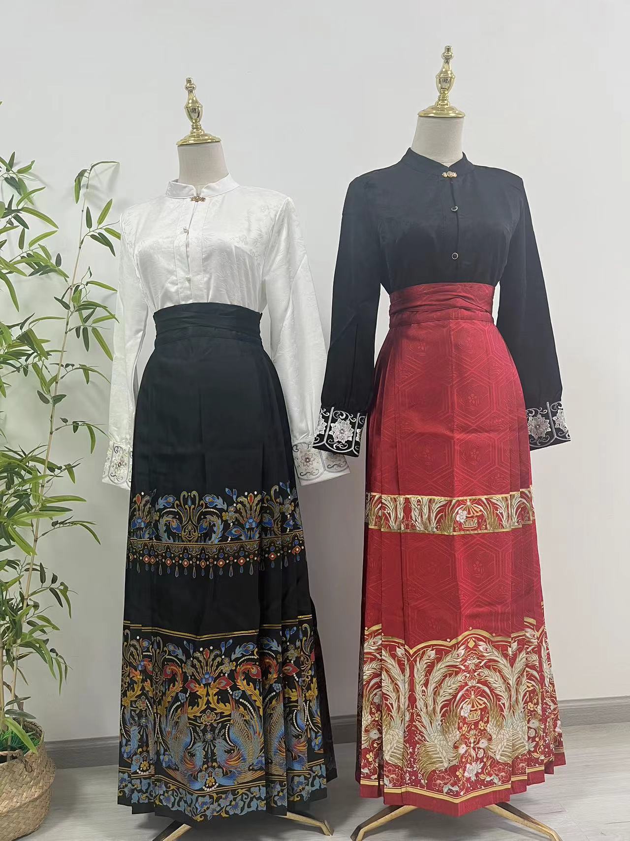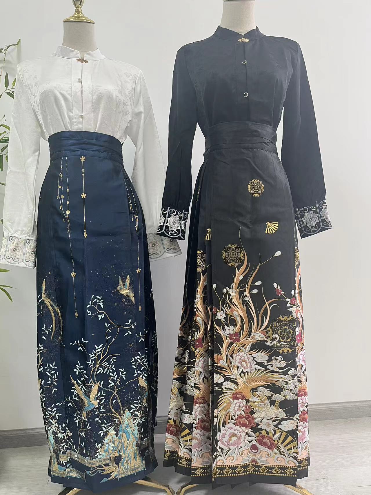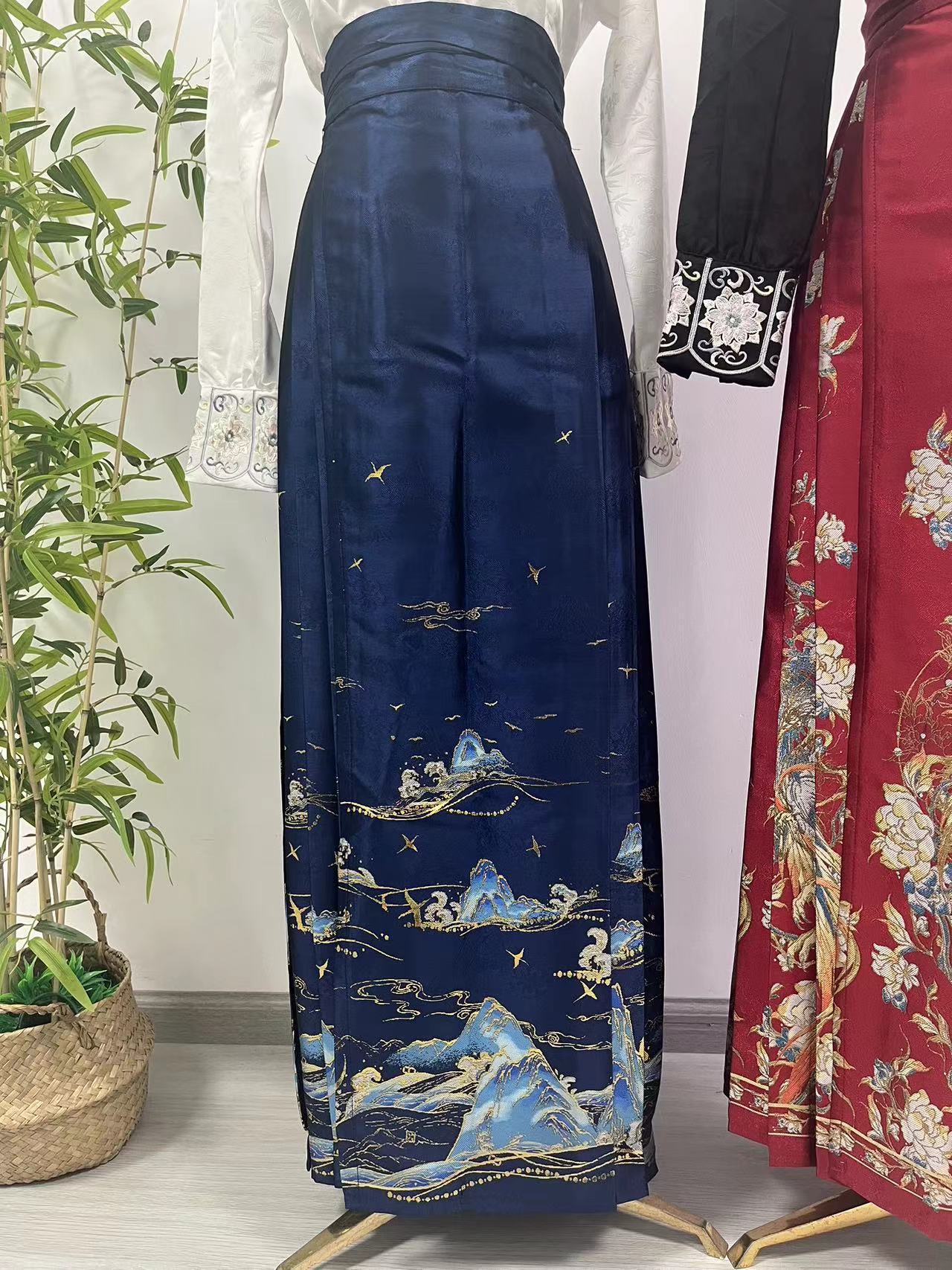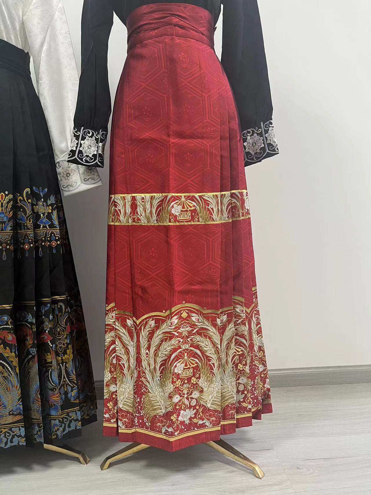 Ming конская юбка 2024 осень-зима новая атласная золотая жаккардовая женская юбка конская юбка без принта